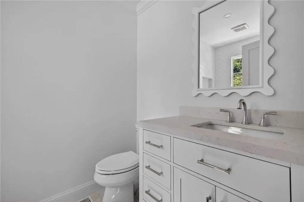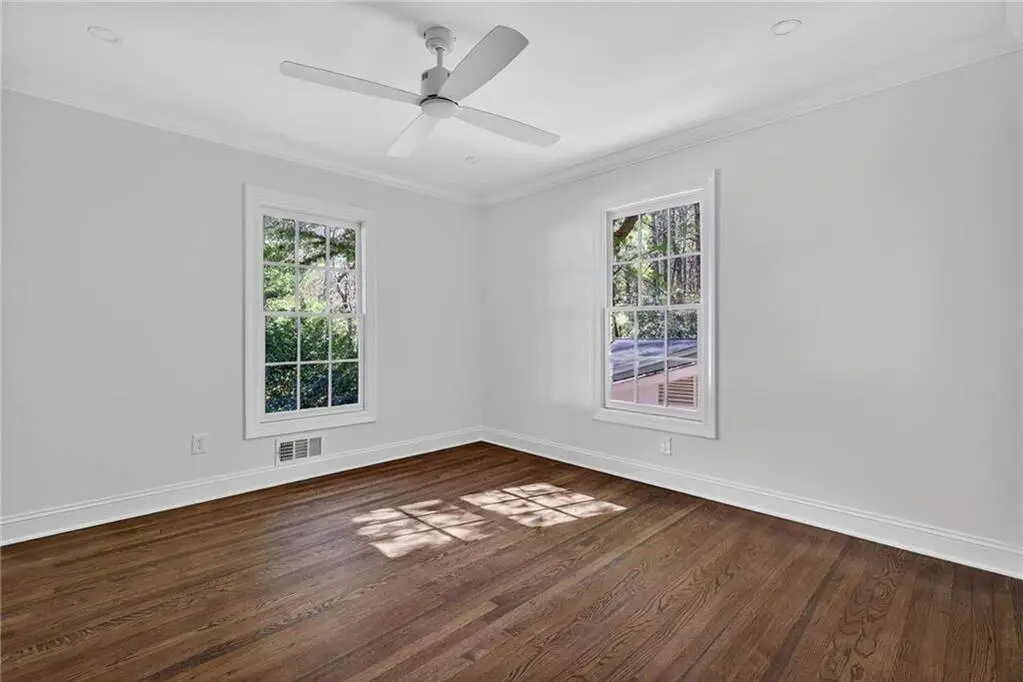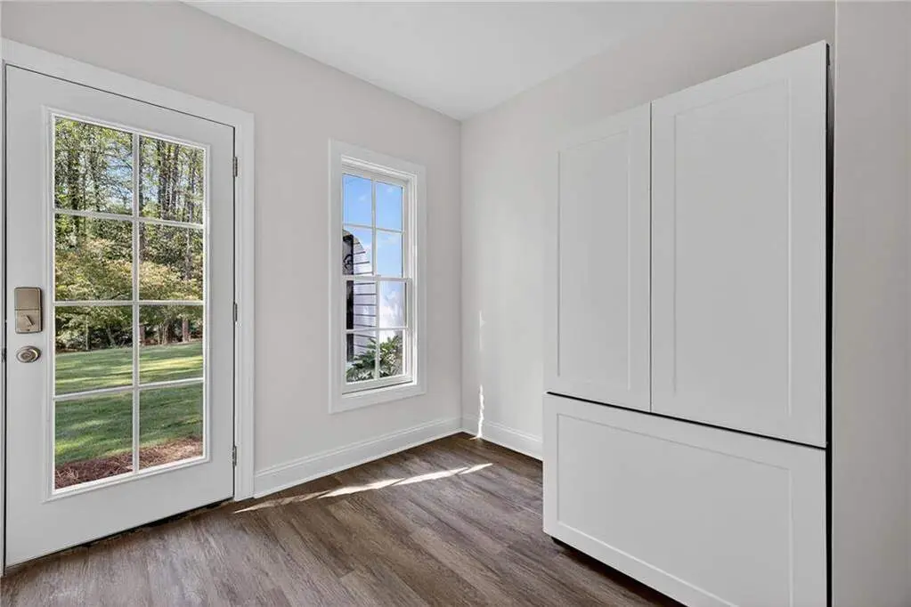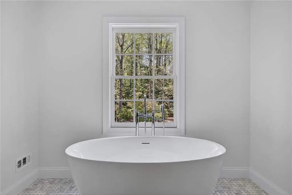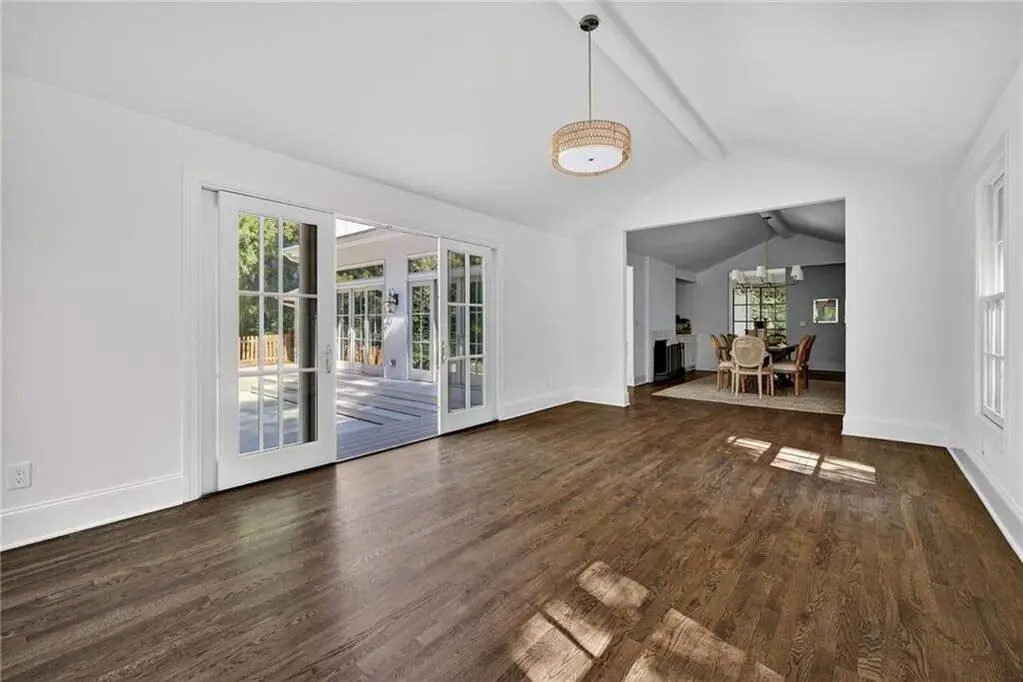 Tucked in the coveted Castlewood neighborhood, this stunning Buckhead home has been completely renewed from the ground up under the direction of award-winning architect Claire Smith and designer Nona Pappas. Set on a rare one-acre, pool-ready lot, the home balances classic architecture with a clean, modern feel. The main level flows effortlessly between the dining room with a wood-burning fireplace, sunroom, kitchen, and living areas, all opening up to the gorgeous, flat backyard that is perfect for family activities, entertaining, or a future pool. Hardwood floors throughout and tall French doors fill the home with natural light and enhance the sense of indoor-outdoor living. The kitchen features custom cabinetry, Calacatta Venezia quartz counters and backsplash, a walk-in pantry, an Italian-made 48" range, and premium unlacquered brass plumbing fixtures. The main-level primary suite offers peaceful garden views and a luxurious bath with marble finishes, polished nickel plumbing fixtures, and custom cabinetry. High-end details run throughout the home, including Circa lighting and a marble sink in the powder bath. Two additional bedrooms with en-suite baths complete the main level. The terrace level provides two guest suites, generous living space, and is stubbed for a future kitchenette. Located just a short golf cart ride from Morris Brandon, the home offers easy access to Atlanta's top private schools and the best of Buckhead living. Every detail, from ceiling heights to window placement, reflects thoughtful architecture that feels both classic and current.