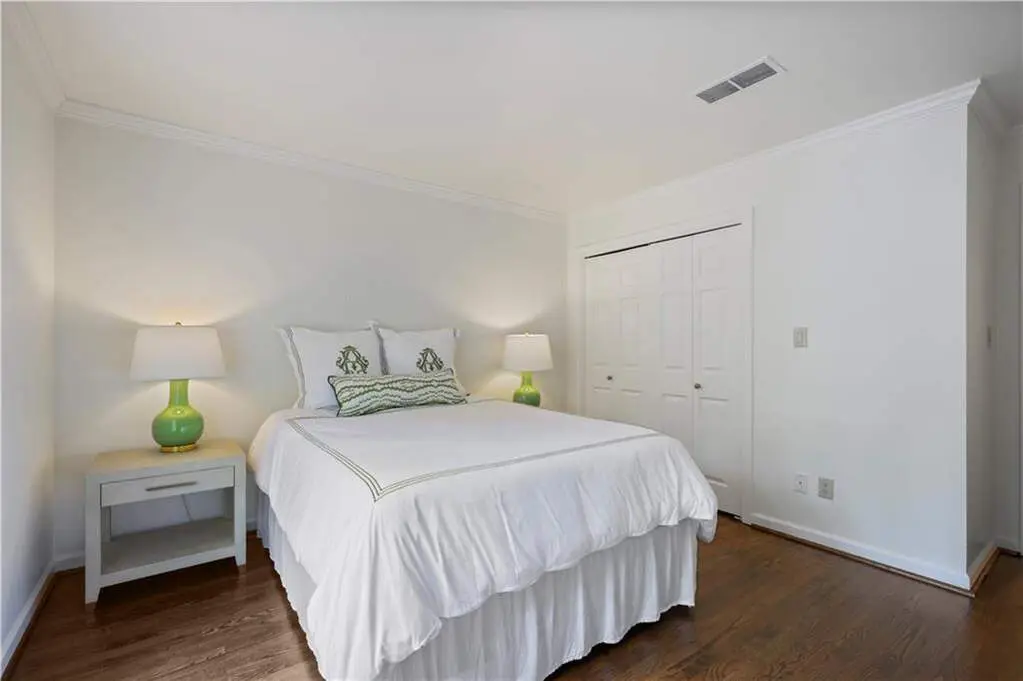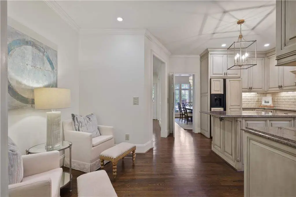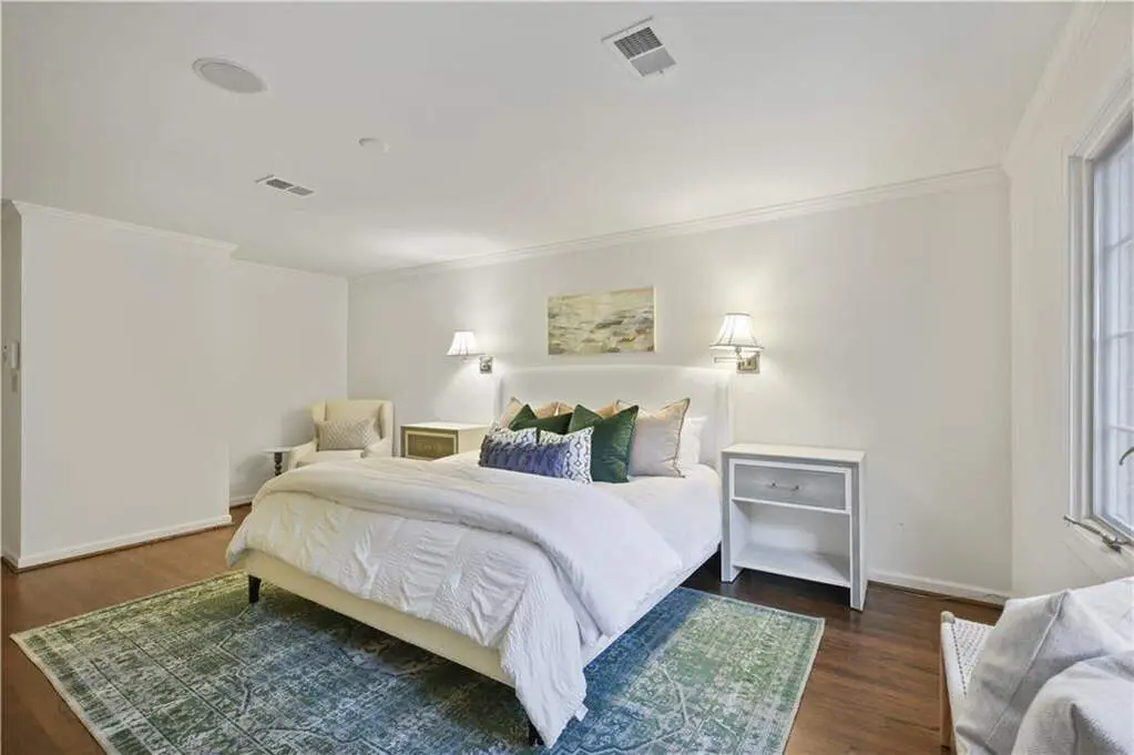 Located on a cul-de-sac in the most desirable section of the Paces West Neighborhood, this stunning, renovated end unit townhome offers the perfect blend of charm, quality, and convenience. Featuring hardwoods throughout with three bedrooms and two and a half baths, the home boasts a large and light-filled family room with a cozy gas fireplace, opening to a relaxing patio with its own outdoor fireplace-ideal for entertaining. The chef's kitchen offers custom cabinetry, island and stainless appliances with views of the family room. The spacious fireside dining room and separate inviting living room create a warm and welcoming atmosphere. Upstairs, the primary suite offers a spa-like bathroom and his-and-hers closets, while two additional bedrooms share a well-appointed bath. Additional walk-in attic space allows for easy storage. Thoughtful details including wainscoting, coffered ceilings and quality craftsmanship can be found throughout the home. A covered walkway leads from the home to the large two car garage with additional attic storage. Adjacent to the two car garage is a private green space. Paces West is a sought-after gated community with just 82 homes, offering fantastic amenities, including a pool and a dog park, along with an active and friendly neighborhood atmosphere. Enjoy a short stroll to the West Paces Ferry Shopping Center, Blue Ridge Grill, Whole Foods, Starbucks and more!