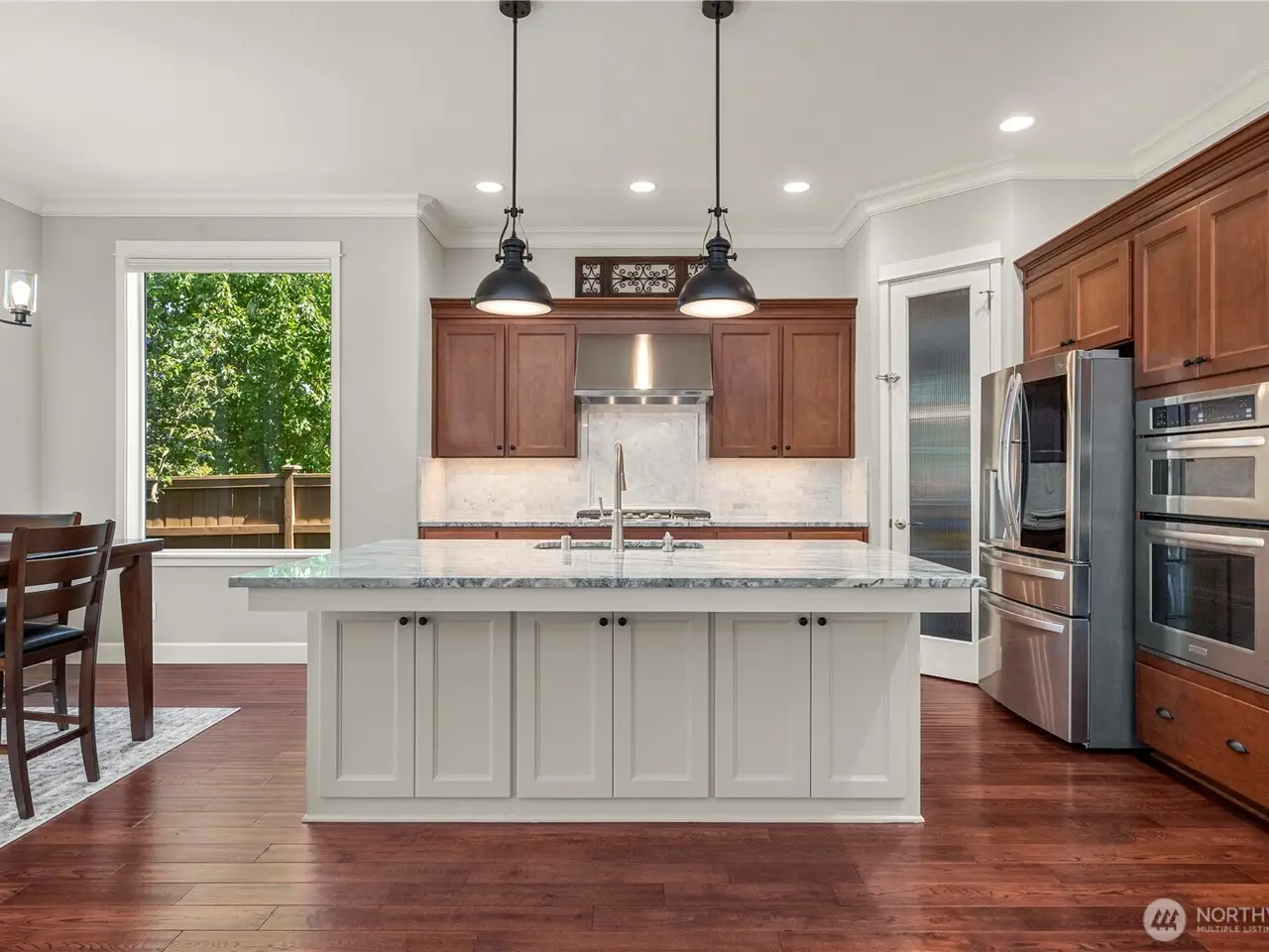 Welcome to Pinnacle Estates, where timeless craftsmanship meets modern living in this stunning Steve Jensen home w/ $100k update in past year. A dramatic 2-story rotunda foyer, hand-scraped hardwoods & custom millwork offer elegance & warmth. The gourmet kitchen featuring new quartzite counters, custom marble backsplash & premium appliances flows seamlessly into the inviting family room. Upstairs find 4 spacious bedrooms & bonus room w/ wet bar. Main floor bed/den & 3/4 bath add flexibility. Retreat to the master suite w/ soaking tub & dual walk-in closets. Enjoy A/C, 3 fireplaces, covered patio & private backyard. Expansive windows frame mountain & territorial views. Rare 6-car garage, walkable to parks, trails, schools, shopping & transit.
