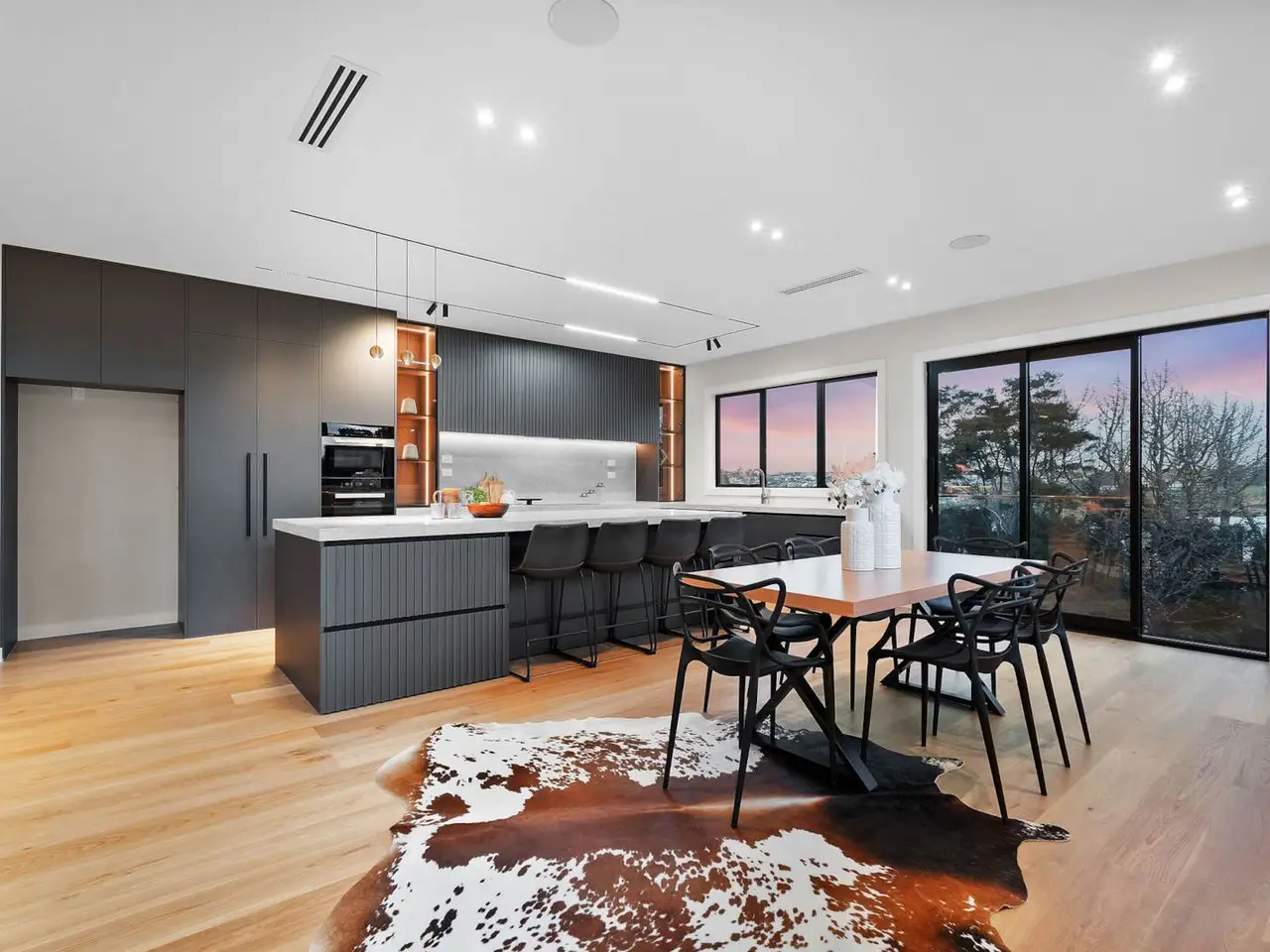 Expansive living and dining area with wide windows