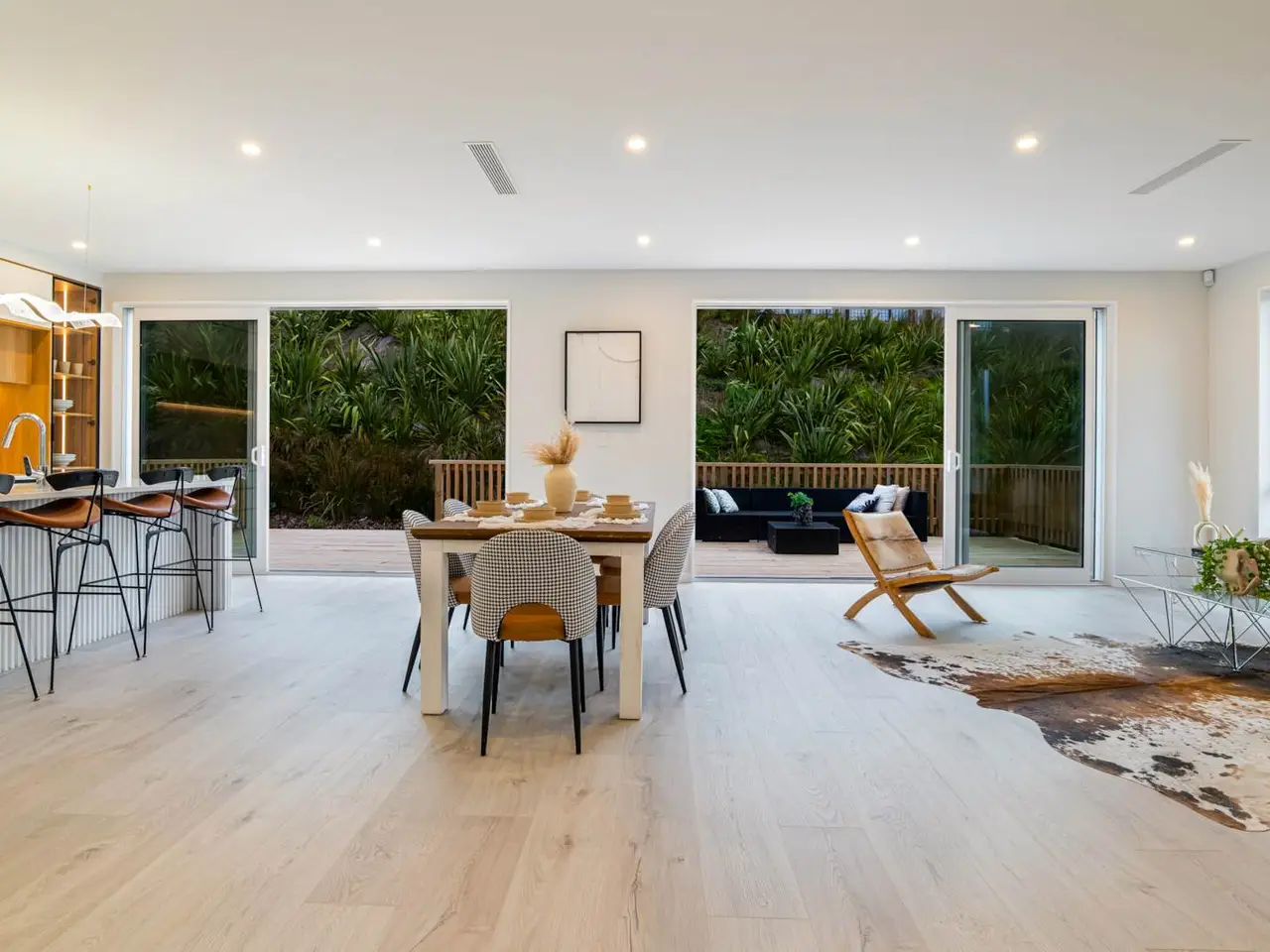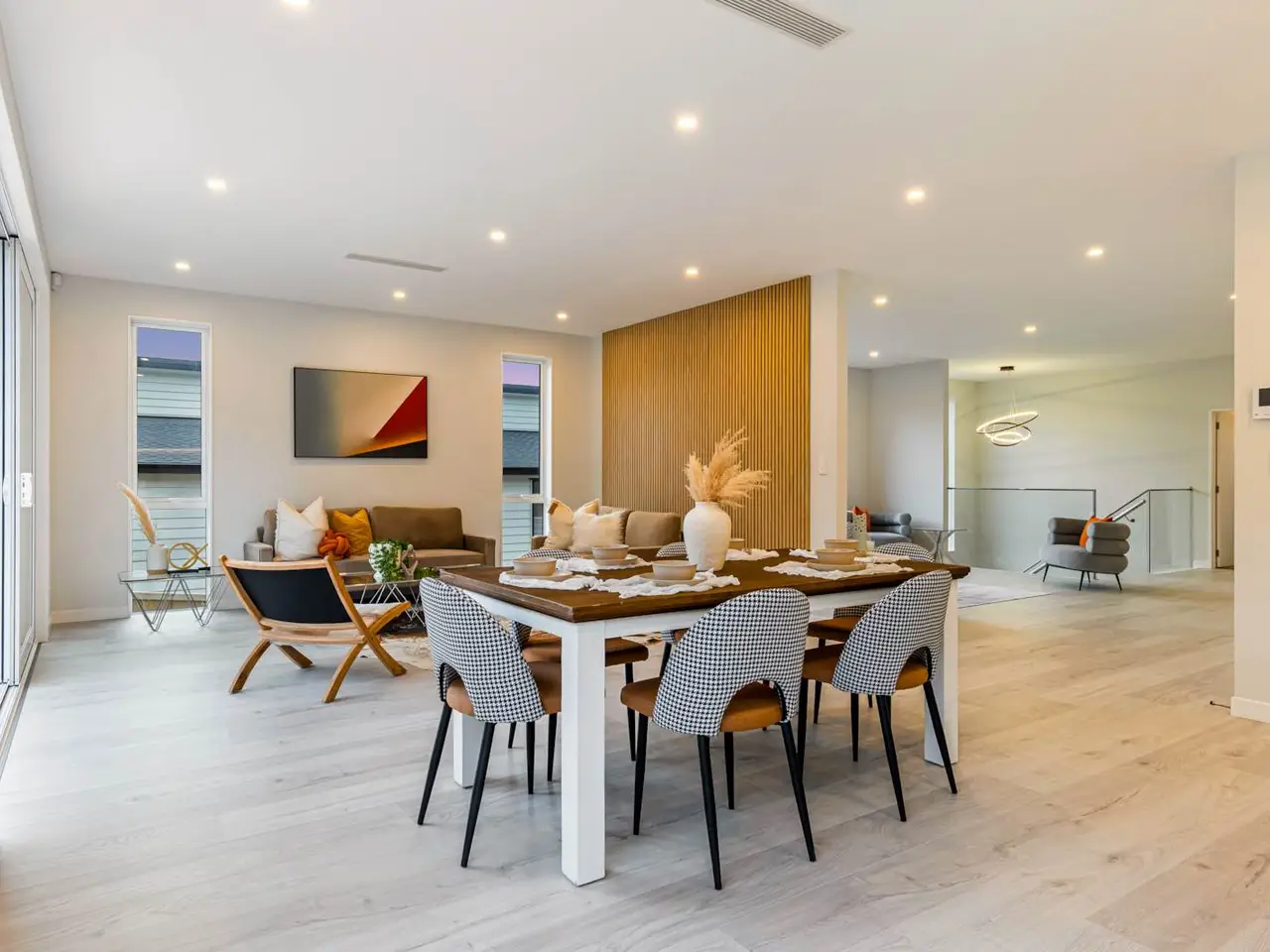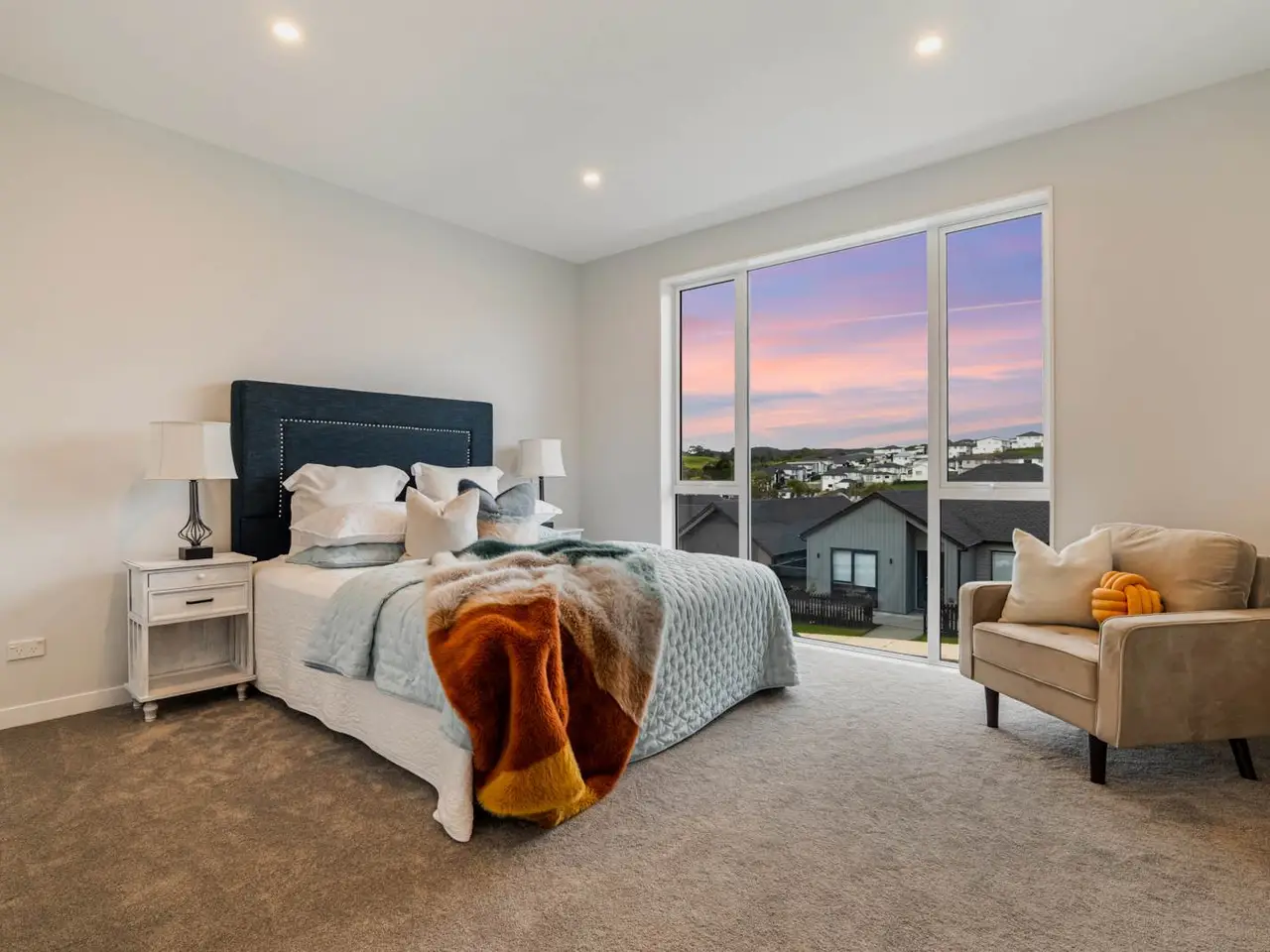 Step into this amazing brand-new home where modern design meets everyday comfort. Set on a 525sqm (approx.) section and offering a generous 324sqm (approx.) of floor area, this thoughtfully designed residence is ideal for families seeking space, style, and versatility, complete with a 10-Year Master Build Guarantee for peace of mind. Downstairs, a spacious two-bedroom granny potential with its own entrance provides the perfect solution for extended family or guests. It features a living area and a sleek, modern bathroom. A separate master suite with ensuite on this level adds extra flexibility, ideal as a guest suite or a quiet work-from-home retreat. A guest toilet completes this floor for added convenience. Upstairs is designed for relaxed family living and effortless entertaining. The sunlit open-plan kitchen, dining, and lounge area forms the hub of the home. You’ll love the main kitchen’s premium appliances, quality finishes, and abundant storage, complemented by a handy second kitchen for extra catering space when hosting friends and family. Open the sliding doors to the spacious, sun-soaked deck — the perfect spot for morning coffees, summer BBQs, or simply unwinding in the fresh air. A separate light-filled lounge offers a cosy retreat for movie nights or a quiet escape. The main master suite on this level features a generous walk-in wardrobe and a stylish ensuite. Two more bedrooms provide plenty of room for the rest of the family to spread out in comfort and privacy. Perfectly positioned in sought-after Millwater, this location places you close to excellent schools, local parks, easy motorway access, Silverdale Shopping Centre, and the beautiful beaches of Orewa — everything you need is right at your fingertips. Don’t miss your chance to secure this quality home. Call today to arrange your private viewing or visit us at our open home!
