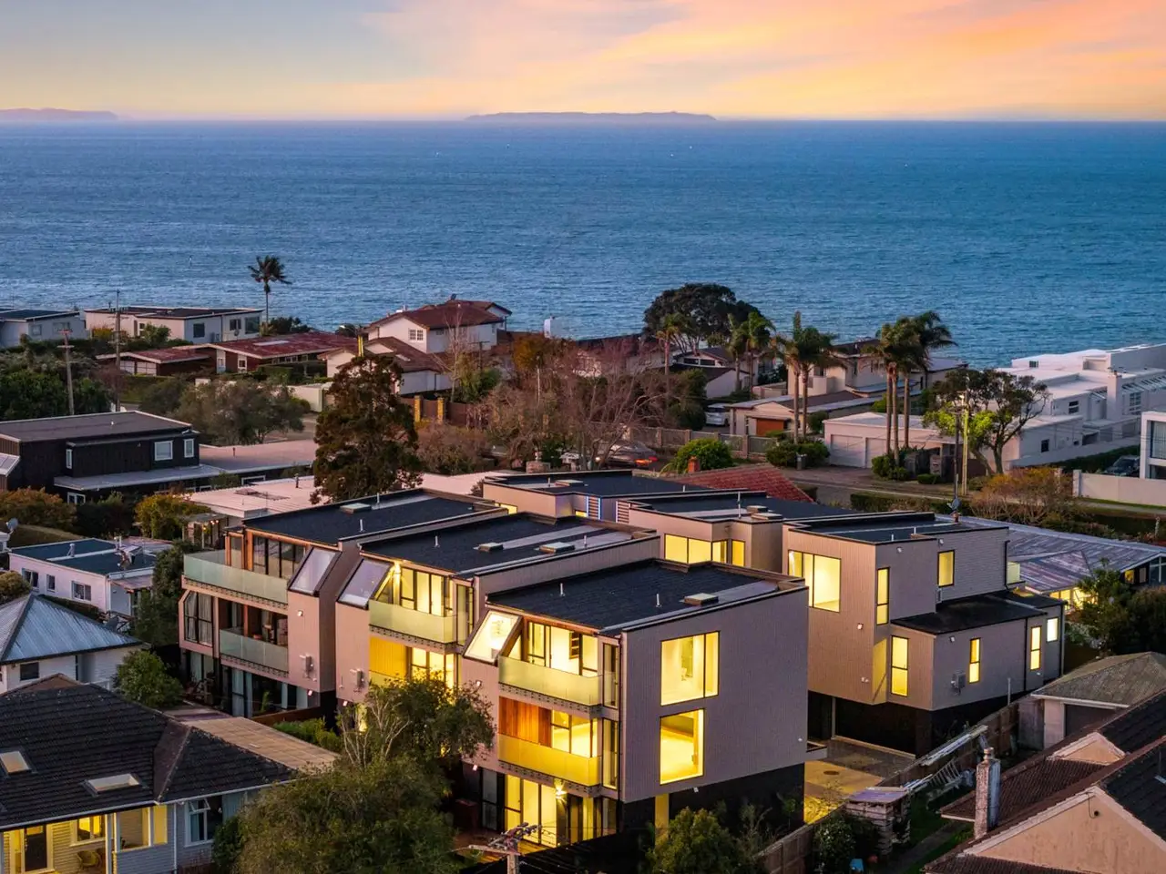 Welcome to Beachside living, a place where nature and architecture coexist. Discover a boutique development of five meticulously crafted premium homes, harmoniously blending nature and architecture to create a truly exclusive sanctuary. Enjoy breathtaking views of Rangitoto Island and the city skyline from this prestigious location. Each of these architecturally designed homes exudes sophistication with a focus on quality design, abundant natural light, and timeless modern finishes. The gourmet kitchen showcases a premium Italy Natural Stone benchtop and Island breakfast bar, perfect for culinary enthusiasts and entertainers alike. Property Features:- Three or Four bedrooms, three bathrooms, separate laundry, and powder room- Standalone three-level design with a lift for convenience- Seamless indoor-outdoor flow to a semi-enclosed deck with mesmerizing sea views/city views- Designer kitchen with a walk-in butler’s Kitchen- Spacious master retreat featuring a walk-in wardrobe and luxurious ensuite- Elegant cobblestone flooring in the entrance area- Full insulation for superior comfort- Premium double-glazing throughout- Samsung digital lock for added security and convenience- Exquisite finishes including natural stone benchtops, Kitchen Island, and fully tiled bathrooms- Just a 2-minute drive to Narrow Neck Beach and Waitemata Golf Club- Walking distance to top schools such as Belmont Primary, Belmont Intermediate, and Takapuna Grammar Situated in a highly sought-after location with proximity to pristine beaches, top-rated schools, local amenities, and convenient transport links, this home offers the perfect blend of luxury and lifestyle. Whether you seek a peaceful retreat or a vibrant hub for entertainment, this property caters to all your needs. Don't miss the chance to experience the epitome of North Shore living. Visit us today and witness the unparalleled charm and elegance this residence has to offer. Your dream home awaits.