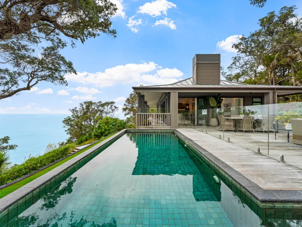 Commanding one of Ti Point’s most dramatic coastal headlands, this contemporary lodge-style home combines natural beauty with refined comfort - a rare sanctuary where everyday life feels like a holiday. Crafted from stone, cedar and glass, the residence sits perfectly within its landscape, surrounded by native bush and framed by panoramic ocean views stretching across Whangateau Harbour to Little Barrier, Great Barrier and the Coromandel beyond. It’s a place where whales and dolphins can often be seen from the terrace - a constant reminder of the extraordinary setting. Set on a large but low-maintenance parcel of land, the home is enveloped by covenanted native bush that ensures total privacy while remaining self-managing. The design brings the outdoors in, with wide terraces, generous glazing and open-plan living that invites light, sea air and the rhythm of the coastline into every room. Inside, the aesthetic is relaxed yet elegant - a sophisticated blend of lodge warmth and coastal calm. The main living area connects seamlessly with the outdoors, while a second lounge provides a quiet retreat for television or reading. There are four bedrooms in the main house, each designed for comfort and positioned to capture the view. A separate bunk room and detached studio provide ideal accommodation for guests, teenagers or staff. Practicality matches beauty, with ample garaging and on-site parking, all discreetly integrated into the landscape. A private cable car glides through the native bush to the water’s edge below, offering effortless access for swimming, kayaking or launching a small boat. Just minutes from Matakana Village and Omaha Beach, and around an hour from Auckland, this is coastal living at its most elevated - contemporary, calm and connected to nature. A home that feels luxurious yet entirely effortless. A true Coastal Icon. This is a Sole Agency listing by James Doole and Kellie Bissett. Contact us to view today.