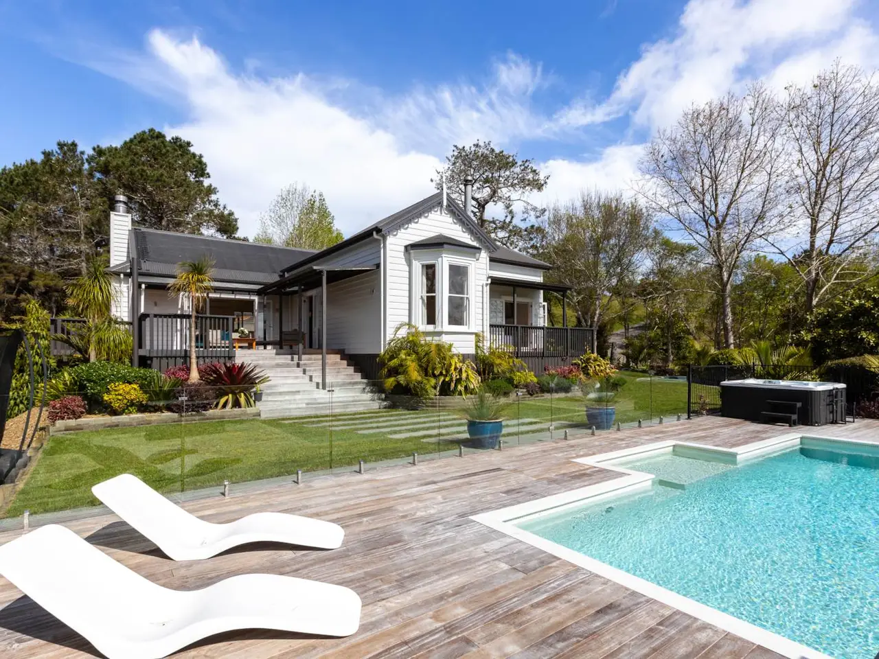 Vendors are downsizing — their stunning lifestyle property must be sold! This luxurious villa sits proudly on approximately 2 hectares of manicured gardens, an established orchard and a spacious paddock. The Home Step inside and be captivated by high-stud ceilings, rich oak flooring and elegant Kartell lighting. The main level features three generous double bedrooms, including a master suite with an ensuite and large wardrobe, plus a beautifully appointed family bathroom. The open-plan designer kitchen boasts a large engineered stone island, a butler’s pantry and flows seamlessly into the living area with a cozy fireplace — perfect for entertaining or family time. The adjoining dining room opens to a second elegant living space, complete with a bay window and a feature fireplace. A separate laundry provides excellent storage and practicality. All lower-level rooms open through French doors to the lush outdoor setting. Upstairs, discover a spacious fourth bedroom — or transform it into the ideal home office, studio or retreat. The Outdoors Enjoy year-round entertaining on the expansive northwest-facing covered deck, overlooking your heated saltwater swimming pool and spa — the perfect spot to soak in the serenity of your own private paradise. Enjoy an abundance of established fruit trees and beautifully manicured gardens, with space to grow your own vegetables. The large rear paddock offers potential for grazing animals. A separate double garage and ample off-street parking complete the picture. An additional bonus: the property offers subdivision potential via transferable title (subject to council approval). Just a short drive to Albany’s amenities, excellent schools, motorway access and public transport. Or head to nearby Coatesville for a relaxed coffee at Black Cottage, a local favourite. This is a rare opportunity to secure a meticulously maintained villa that offers both timeless character and modern comfort. Contact me today for a private viewing to suit your schedule— and experience a lifestyle where elegance, space and tranquility come together beautifully.
