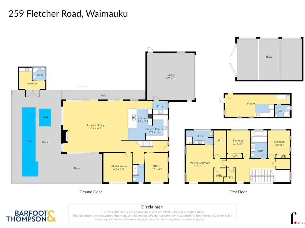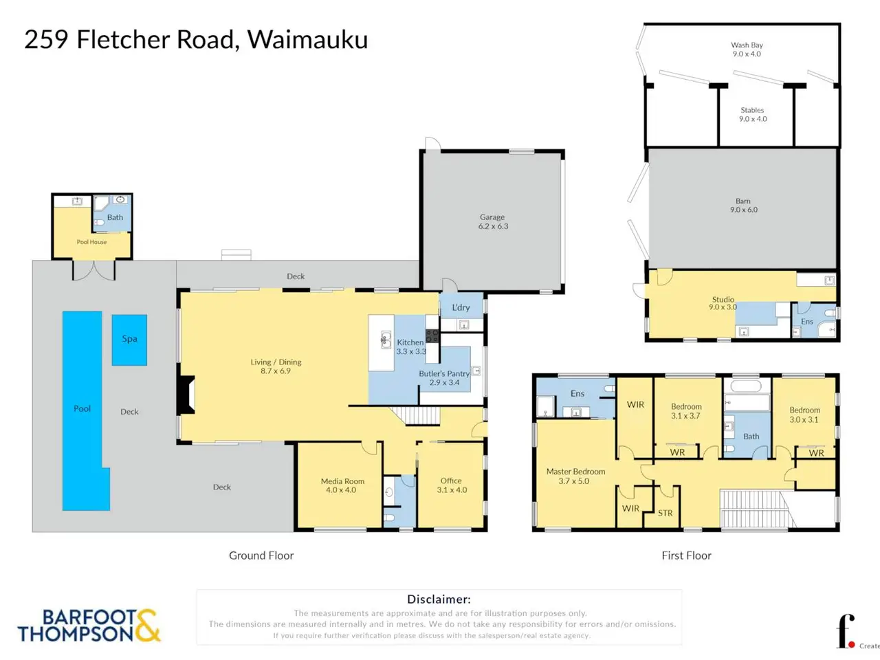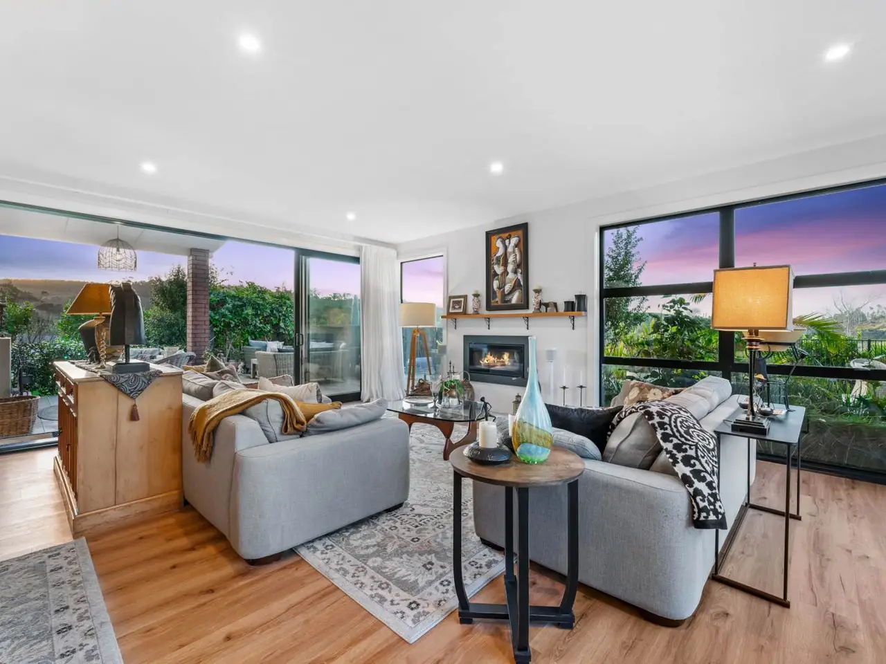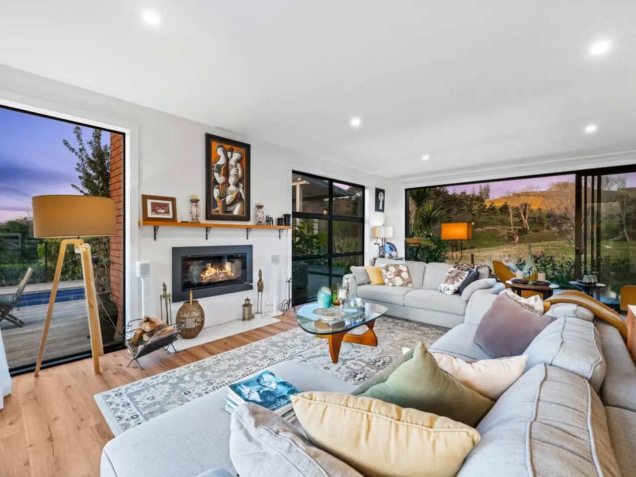 Set on just over one hectare of manicured grounds, this architecturally designed residence offers the ultimate in luxury living, privacy, and rural elegance in one of Waimauku’s most exclusive addresses.Every detail of this bespoke home has been thoughtfully crafted, from the stunning oak cabinetry and in-floor wine well in the designer kitchen and full butler’s pantry, to the ambient feature lighting and hotel-style bathrooms that exude sophistication.The home offers three expansive bedrooms, including a master retreat with separate his and hers walk-in robes and a luxurious ensuite. Two living spaces provide comfort and functionality — a media room with built-in electric fireplace, and a lounge featuring a sumptuous statement fireplace, perfect for cosy evenings.Climate control is effortless with zoned air conditioning across both levels, including the dedicated home office with separate controls — ideal for remote work or study.Step outside into an entertainer’s dream: a beautifully appointed outdoor area complete with a custom Trendz fireplace, sparkling swimming pool, spa, and a fully-equipped pool house with kitchenette and bathroom — perfect for hosting or relaxing in private luxury.The expansive barn adds further versatility, offering a self-contained studio ideal for extended family or guests, along with three stables and a wash bay — a rare find for equestrian or lifestyle enthusiasts.Framed by long rural views and nestled in an elite enclave, this is a rare opportunity to secure a lifestyle of unparalleled quality and comfort.Enquire now to experience Waimauku’s finest. #Lovewhereyoulive Deadline sale: Closes on Wednesday 8 October 2025 at 2:00PM (unless sold prior)