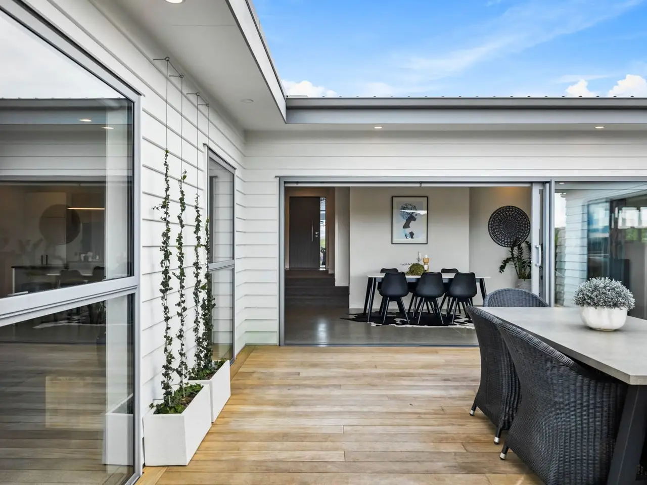 Positioned in one of Waimauku’s most desirable and tightly held neighbourhoods, this beautifully crafted residence offers the perfect fusion of luxury, lifestyle, and functionality ideal for families seeking both comfort and community with a stunning outlook. Meticulously constructed using premium materials, this elegant 269m2 family home captures panoramic views that will inspire you each and every day. Designed with modern family living in mind, the thoughtful layout is both stylish and highly practical.At the heart of the home is a contemporary designer kitchen, complete with a generous island bench, abundant storage, a full scullery, and seamless access to the garage and laundry. This well appointed space is the ultimate hub for family gatherings and entertaining, with an effortless flow to two expansive living areas and out to the north facing deck creating a harmonious indoor outdoor connection that is perfect for year round enjoyment.Four generously sized bedrooms provide ample space for every member of the family, each with built in wardrobes. The master suite offers a private sanctuary, featuring its own ensuite and tranquil views.Car accommodation has been carefully considered with an oversized double garage, a separate carport, and plentiful off street parking ideal for families with multiple vehicles, a boat, or visiting guests.Set on a spacious 1659m2 fenced section, the beautifully landscaped grounds include a lush lawn for children to play, a selection of fruit trees, and for the green fingers, an area for the perfect vege garden, ideal for those who value space, sustainability, and a connection to nature.Located just a short walk from highly regarded Waimauku Primary School, local cafes, parks and community amenities, this home offers not only a safe and social environment, but a lifestyle of true convenience and connection.A rare offering in a premium location, this exceptional property invites you to step into a new chapter of elevated family living.Private viewings available, enquire today. Deadline sale: Closes on Wednesday 3 September 2025 at 2:00PM (unless sold prior)