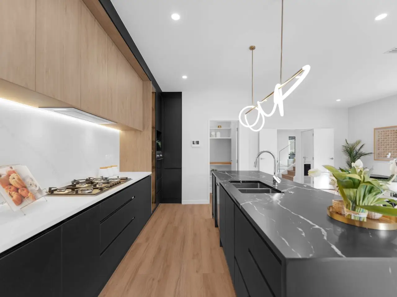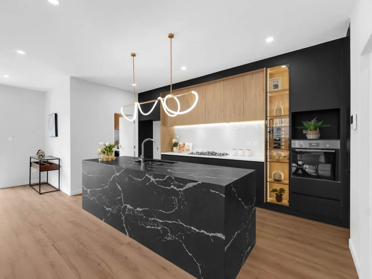 Stylish open-plan kitchen with quality appliances