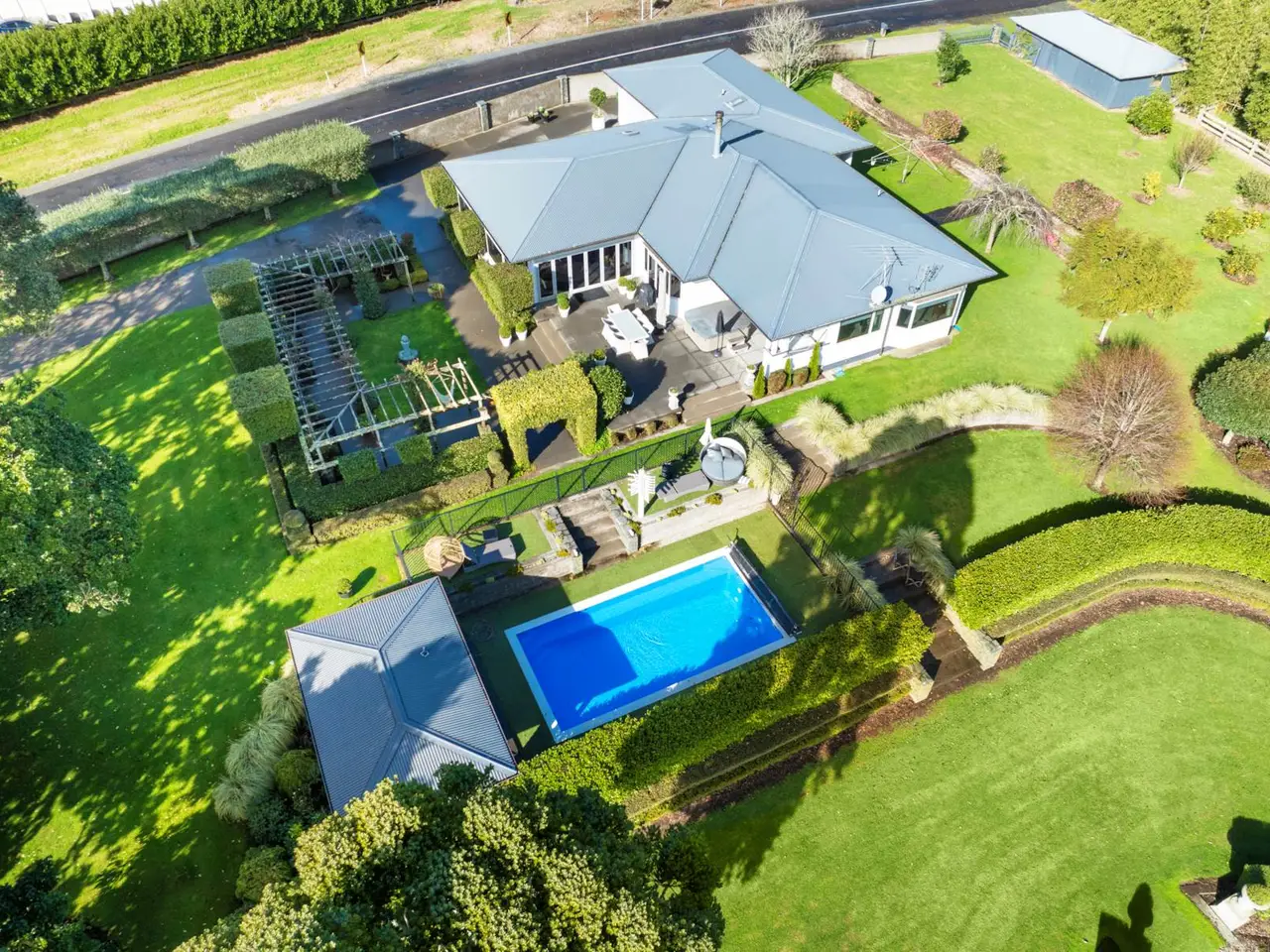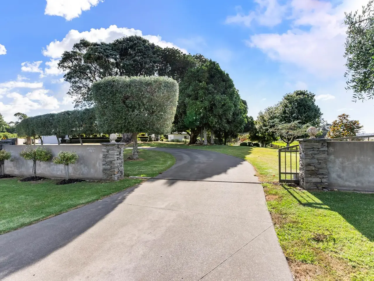 MODERNIZED GRANDEUR FOR THE HISTORICAL CONNOISSEUR SPECTACULAR GARDENS – POOL & RESORT AMENITIES Quality weatherboard construction with colour steel roof, copper spouting, and double-glazed joinery, this charismatic 260 square metre (approx) home residing on 9.93 hectares (24.8 acres) of flat to gently contoured land is zoned Mixed Rural and could well be suited to equine pursuits, horticultural applications, or a luxurious lifestyle. Boasting a most impressive pedigree, this elegant residence was originally constructed in 1920s and has been lovingly extended and renovated over the years, retaining all the charm and classic features of yesteryear, including high ceilings, exposed beams, timber accents, and numerous romantic bay windows, this home has been tastefully modernized to provide all the luxuries of today’s lifestyle. These include ducted air conditioning throughout most areas, easy-care timber and cork flooring, built-in speakers, LED lighting, solid Rimu doors, security systems, and excellent indoor-outdoor interaction to al fresco entertaining and leisure by the fenced and hedged 9 x 4m (approx) heated saltwater pool with a roller cover, raised relaxation areas, and pool pavilion with a toilet and outdoor shower. Electric gates invite entry to the picturesque driveway through beautiful, landscaped gardens with mature trees, paved pathways, water features and towering Kauri tree. The front door opens to a light spacious foyer spilling into super-sized sophisticated open plan family living with an excellently endowed kitchen with timber floors, stone benchtops, 900mm AEG oven, Miele induction cooktop and walk-in pantry. Richly furnished dining and lounge sections with bay windows, Jotul fireplace, built-in cabinetry and light-display shelving flow seamlessly into each other, then outdoors to a covered patio with heater and open garden-side entertaining. A large adjoining formal lounge with exposed timber beams and chandelier also opens to outdoor leisure and those spectacular gardens. Off the foyer there’s a study with built-in furniture - the perfect work-from-home venue. The family bathroom features a skylight and indulgent double shower with massage jets and alongside there’s a large laundry with abundant storage. There’s also generous storage in the hallway leading to the opulent master bedroom with bay window, blinds and plush drapes, large fitted walk-in robe and designer ensuite featuring rain head shower double vanity and large bath. The second bedroom with tranquil views includes a fan and built-in wardrobe. There’s also a scenic third bedroom if required. Accessed off the laundry a double lock up garage features marine carpet and extra storage. There’s also a free-standing shed, an orchard with a variety of fruit trees and citrus, including feijoa, pear, avocado, plum, lemon, lime, orange, mandarin. This much loved home with multitudinous features has hosted many family weddings and special functions over the years however it is now time for our owner to downsize and we welcome inspection of this very special property by the discerning purchaser. • Constructed in the 1920s and has been extended and renovated• 9.93ha/24.8 acres zoned Mixed Rural• Weatherboard construction, colour steel roof, copper spouting, double glazing• Electric gates. Concrete driveway through magnificent gardens• Paved pathways, shade & water features & towering Kauri tree• Superbly modernized incl: ducted air conditioning in most areas• Fans & heat pumps. Easy-care timber & cork flooring• Built-in speakers. LED lighting. Solid Rimu doors. Security• Foyer into sophisticated super-sized open plan family living• Bay windows. Bi-fold doors opening to covered & open patios• Quality appointed kitchen. Stone benchtops. Walk-in pantry• Formal lounge also spilling outdoors. Exposed beams & chandelier• Office + built-ins. Family bathroom with massage jet shower• Large laundry + generous storage. Abundant hallway storage• Luxurious master bedroom + walk-in robe & designer ensuite• 2nd picturesque bedroom with fan & built-in wardrobe• 3rd bedroom. Garden views• Marine carpeted double lock up garage with extra storage • Freestanding shed. garage. 3 water tanks & bore supply• Citrus trees & Substantial orchard• Just 3 kms from the town centre & all community facilities• Close to Waiuku Primary Schools & Waiuku Co-ed CollegeFor the purpose of this transaction the vendor is GST Registered and the Purchase Price Plus GST (if any).