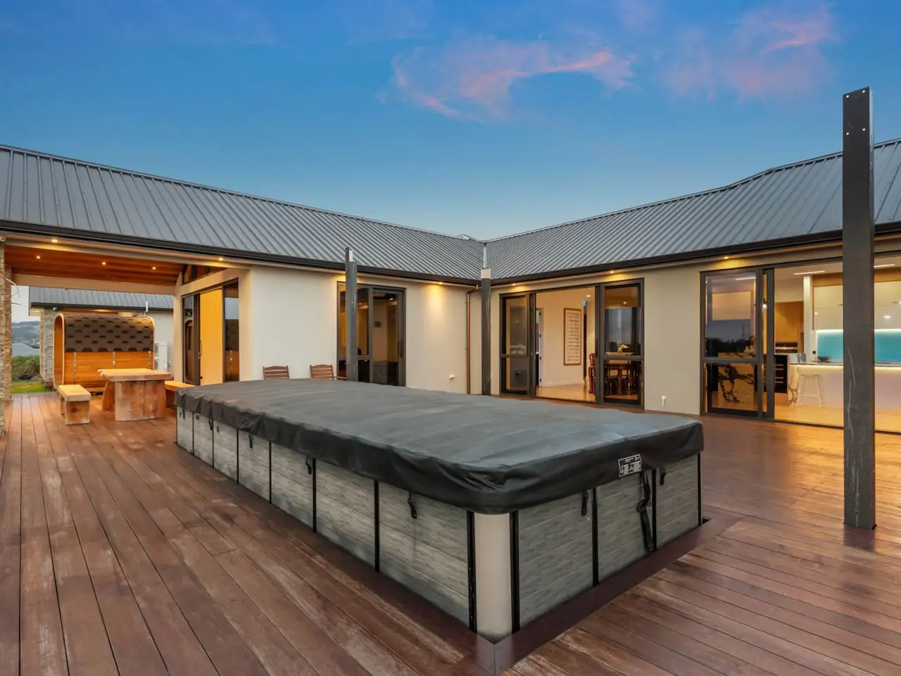 NORTHERLY DECKS - SCENIC CITY LIGHTS Completed in December 2024 (CCC issued April 2025), this elevated north facing home, built of EZ panel cladding (concrete panels) with colour steel roof and feature stone exterior accents, this superb 570 square metre home plus 64 square metre minor dwelling (635 m2 total approx) set on 3.13 hectares (7.83 acres) zoned Country Side Living boasts sweeping views over rolling countryside to the distant night lights of the city. Excellent design by LW Architecture Ltd is complemented by quality construction by Kea Building Ltd. Brand sparkling new, landscaping is yet to be done which will of course, reflect the new owners botanical preferences. Double door entry leads into a spacious foyer with a high pitched Cedar ceiling and stunning hand painted feature wall. Engineered Oak flooring, 3 metre ceilings and 2.4m high doors, cameras and alarms, wiring for wi-fi connectivity, fibre optic internet and ducted air conditioning throughout are just a few of the comfort inclusions in this ultra-spacious sophisticated residence. The foyer leads to expansive, light-filled open plan living anchored by a high-end kitchen featuring premium Miele appliances, including both steam and conventional ovens, as well as a warming drawer. It also boasts an AEG induction hob, Bosch dishwasher, granite waterfall edge island bench, and a Vintec wine fridge. The butler’s pantry is equally impressive with microwave oven, gas hob and blue glass splash-back. Abundant window walls open to covered and open Kwila decks which stretch across the full side of this home (totaling 55 square metres approx) providing scenic venues for stylish entertaining and lazy day leisure in the Alpine swim spa and the sauna. The kitchen spills into a sumptuous family room with feature stone-surround gas fireplace and adjoining formal dining. Off the casual dining double doors open into a luxurious media room with galaxy ceiling and feature lighting, built in speaker system, projector, built in bar and all media equipment – also the perfect karaoke venue. Adjoining this space is another living area with a high pitched Cedar ceiling that opens out to covered alfresco recreation. Also on this side of the home is a multi-use living room and two bedrooms with built-in wardrobes, one opens to the outdoors. You'll also find an office and a bathroom on this side. Additionally, there is a separate powder room and a well-equipped laundry. Hallway’s end gives access to a three car garage with marine carpet and extra-large insulated doors. Off the opposing side of the foyer, two bedrooms with walk-in robes and sliding doors flow out to the northern deck. These are separated by a bathroom with dual vanities. Off a small hall, the magnificent super-spacious master bedroom which opens out to a covered deck features two walk in robes, built in storage, make up station and an ensuite with double Englefield spa bath, electric mirror, double vanity and smart toilet. Yet another bedroom here, also with walk-in robe and ensuite, has an adjoining study area, making a total of six superbly appointed bedrooms in this expansive home of supreme comfort. Separate self-contained living, perfect for extended family or guests, is spacious and classy comprising open plan living, dining and kitchen, a powder room, bathroom with two vanities and two bedrooms with built-in wardrobes. Incredibly spacious, exceptionally designed, superbly appointed and scenic located, this admirable residence awaits inspection by the discerning buyer. • Elevated ultra-spacious 570 m2 (approx) main house + • 64 m2 minor dwelling (635 m2 total) north facing home on 3.13 ha. • Completed in December 2024 (CCC issued April 2025) • EZ panel cladding construction colour steel roof & stone accents • Sweeping rolling country views to the distant city night lights • Engineered Oak flooring, 3 metre ceilings & 2.4m high doors • Cameras & security alarms. Wiring for wi-fi connectivity • Fibre optic internet & ducted air conditioning throughout • Cedar pitched ceiling foyer. Luxe hand painted feature wall • Sundrenched open plan living. Window walls flowing outdoors • North facing Kwila covered & open decks (55 square metres approx) • Scenic, stylish al fresco entertaining. Alpine swim spa & sauna • Sleek dream kitchen + premium quality inclusions & appliances • Formal & casual dining. Deluxe media room & equipment • Separate lounge/dining room + window walls spilling outdoors • Lavish master suite & additions, 2 walk-in robes. Outdoor access • + 5 stylish bedrooms + walk-in or built in robes. Some + outdoor access • Sumptuous media room, feature ceiling, projector & equipment • Office or study room. Laundry plus storage & outdoor access • Multi-use living room. 2 bathrooms plus 2 ensuites. Powder room • 3 car garage with marine carpet & extra-large insulated doors • Free-standing 2 bedroom dwelling + open plan living & bathroom • 12kms to ACG Strathallan Early Learning School, Primary and College • 13kms to Pukekohe Township and just 3kms to Motorway • 32kms to Auckland Airport & 42kms to Auckland CBD