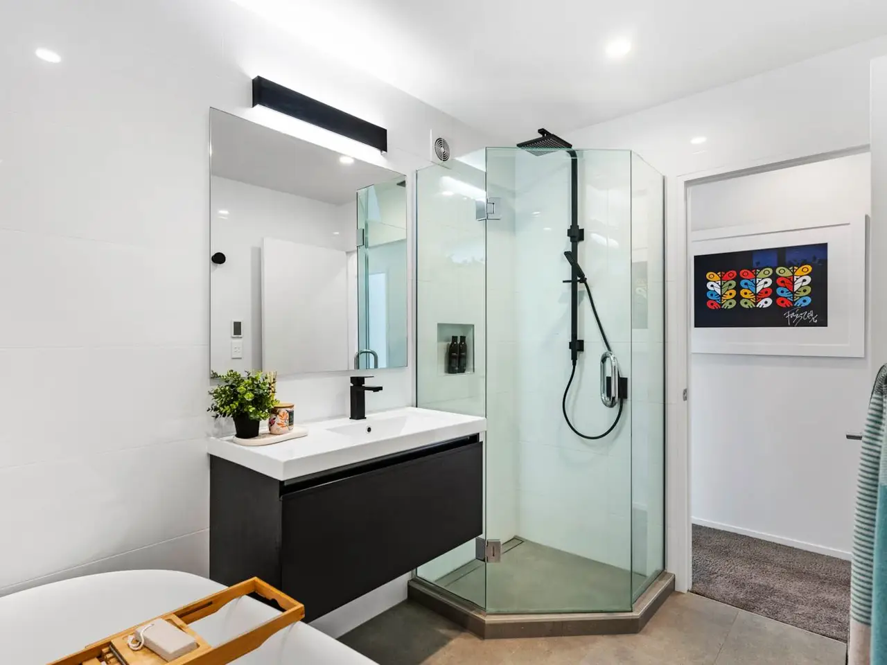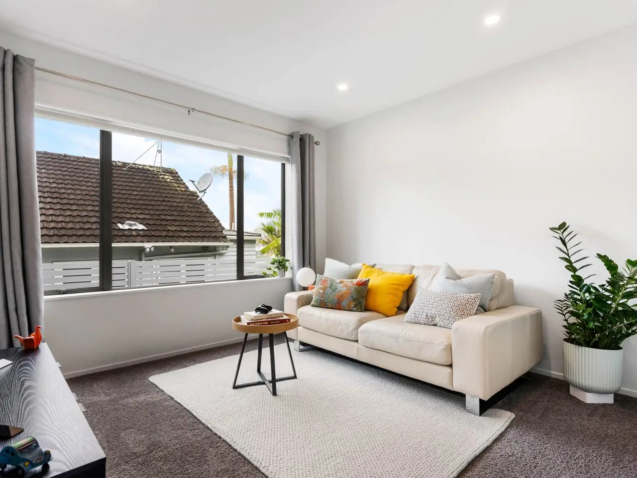 Tucked privately on a rear section, this lofty brick and weatherboard residence enjoys tantalising glimpses of the Waitemata Harbour, and the surrounding urban landscape. Towering Nikau palms and lush tropical foliage create a private, tranquil setting within an exclusive coastal enclave, just an easy walk to Mission Bay's iconic shoreline, cafés, and beaches.A thoughtful 211sqm (approx.) floor plan positions all north-facing living on the upper level, capturing abundant natural light, expansive urban vistas, and shafts of water views. Aluminium joinery enhances comfort throughout generous open plan living and dining areas that connect seamlessly through bifold doors to a substantial covered loggia with built-in seating. The contemporary kitchen features stainless steel appliances, stone-topped island, and ample storage, creating an ideal hub for everyday living and entertaining.Carpeted double bedrooms include a serene upper-level main suite with heat pump, monochrome ensuite, and extensive built-in wardrobes. A fifth bedroom downstairs offers versatility as a second lounge, complemented by a large family bathroom with sleek black fixtures, freestanding bath, and modern vanity. Two powder rooms, one on each level, enhance convenience. The carpeted internal-access double garage incorporates laundry and storage, with additional off-street parking and low-maintenance garden pockets ideal for alfresco dining. Close to city commuter routes, Orakei School, in-zone Selwyn College, and Eastridge's shops and eateries, this secluded coastal haven delivers relaxed, resort-style living just moments from the beach. Auction: 34 Shortland Street, City on Wednesday 19 November 2025 at 10:00AM (unless sold prior)
