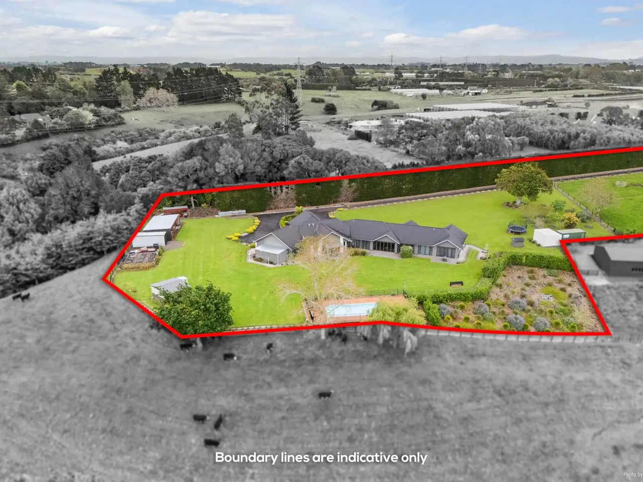 A true statement of elegance and scale, this magnificent 433m² estate delivers the ultimate in multigenerational luxury living. Privately positioned well off the road on a perfectly flat 2.11-hectare parcel, this exceptional offering balances refined sophistication with relaxed country tranquillity.Completed in 2017, the home showcases masterful design and premium craftsmanship throughout. Seven generous bedrooms, including three with walk-in wardrobes, are complemented by six beautifully appointed, fully tiled bathrooms finished to an impeccable standard. Multiple living zones — including two formal lounges and two family rooms — provide space and separation for all, while the seamless flow to the outdoors creates an entertainer’s paradise.A gas fireplace and full central heating system ensure comfort in every season, while expansive glazing captures light, warmth, and stunning rural vistas. Outside, manicured grounds lead to a sparkling heated swimming pool — the perfect backdrop for long summer days with family and friends.Beyond the residence, the estate offers impressive functionality with a four-bay shed, an additional two-bay shed, and a tool shed. Two well-fenced paddocks cater for animals, and a charming dolls’ house adds a touch of whimsical charm for the little ones. A mature shelter belt to the west provides privacy and protection, enhancingthe property’s peaceful, secluded ambiance.This is more than a home — it’s a lifestyle masterpiece, offering space, sophistication, and serenity in equal measure.Key Features:• 433m² residence (built 2017)• 7 bedrooms, 6 luxury tiled bathrooms, 3 walk-in wardrobes• 2 formal lounges and 2 family rooms for flexible living• Central heating system and gas fireplace• Heated pool area with stunning rural outlook• 2.11ha of level, private land with 2 fenced paddocks• 4-bay shed, 2-bay shed, tool shed & elaborate dolls’ house• Sheltered, secluded position with excellent privacy• In zone for Glenbrook Primary School Year 1-8• Approx. 45mins to Auckland CBDExperience the ultimate in space, sophistication, and family living — this is lifestyle excellence at its finest! Auction: 177 King Street, Pukekohe (Branch Office) on Thursday 20 November 2025 at 2:00PM (unless sold prior)