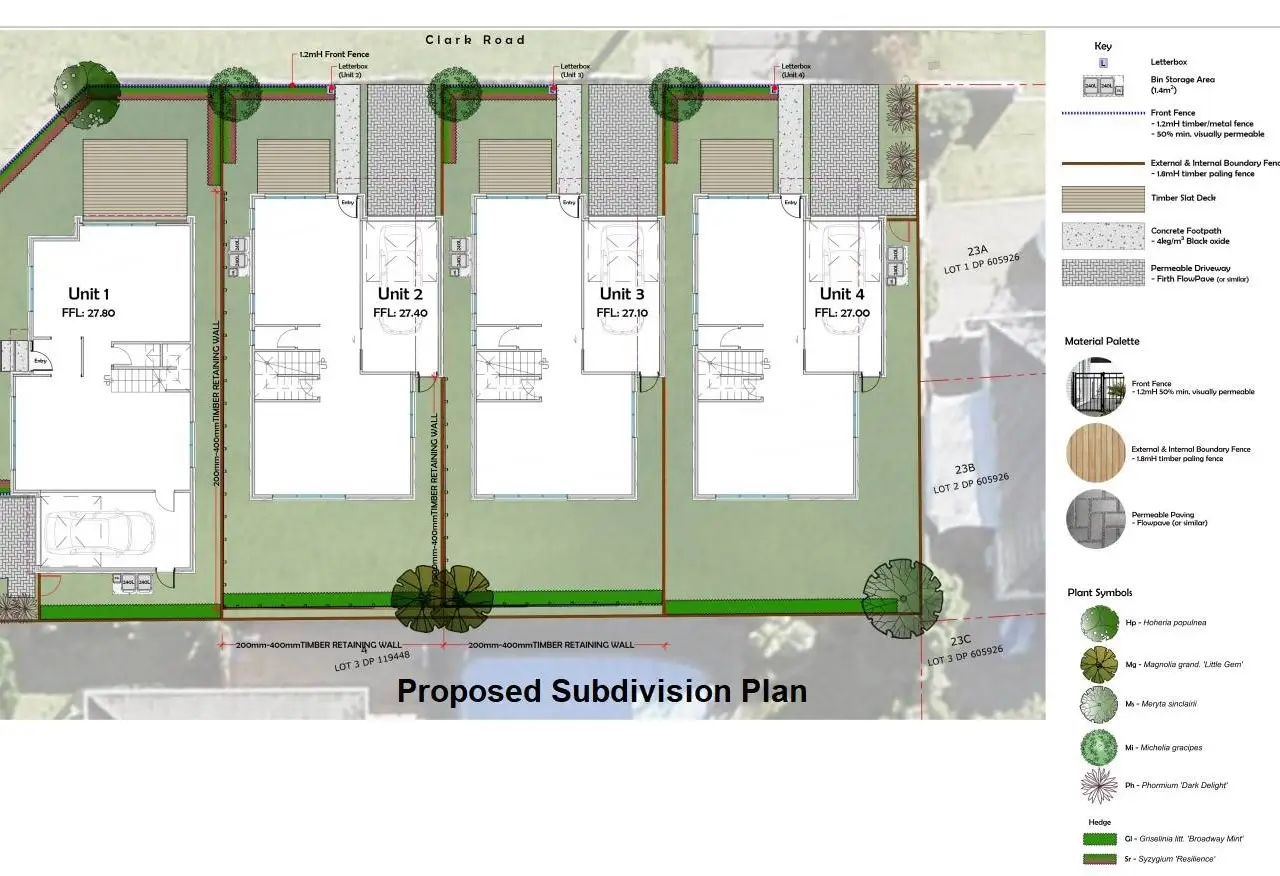 Welcome to a unique opportunity in the heart of Hobsonville – a spacious, single-level brick and tile home set on a generous 808m² (more or less) freehold corner site. Boasting dual road frontage and a Mixed Housing Urban zoning with no restrictive covenants, this property invites savvy developers, investors, and families alike to capitalize on its development potential. The home's versatile layout offers four generously sized double bedrooms and bright, open-plan living areas, perfect for growing families or those seeking space without compromise. A separate study or nursery, multiple living spaces, and seamless indoor-outdoor flow create an ideal setting for entertaining, working from home, or enjoying daily life. Enjoy the private, leafy garden with an inviting in-ground swimming pool, while the flat section offers potential for future landscaping projects. Ample garaging includes a large freestanding garage and a double internal-access garage, catering to vehicles, hobbies, or extra storage. A resource consent, expected to be approved soon, proposes subdividing the site into four freestanding homes, each with two open-plan living areas, a designer kitchen, four bedrooms, 2.5 to 3.5 bathrooms, and a single internal-access garage. This unique opportunity allows developers to unlock the site's full potential in the near future. Families will appreciate the convenient zoning for both Hobsonville School and Hobsonville Point Secondary School, while commuters benefit from quick access to SH16, SH18, and the Hobsonville Ferry terminal. Explore local cafes, shops, parks, markets, and waterfront walkways in this vibrant community.Whether you choose to live in, rent out, or develop this property, its versatility and potential are undeniable. With motivated vendors, don't miss your chance to secure a remarkable home in one of West Auckland's most desirable growth suburbs.
