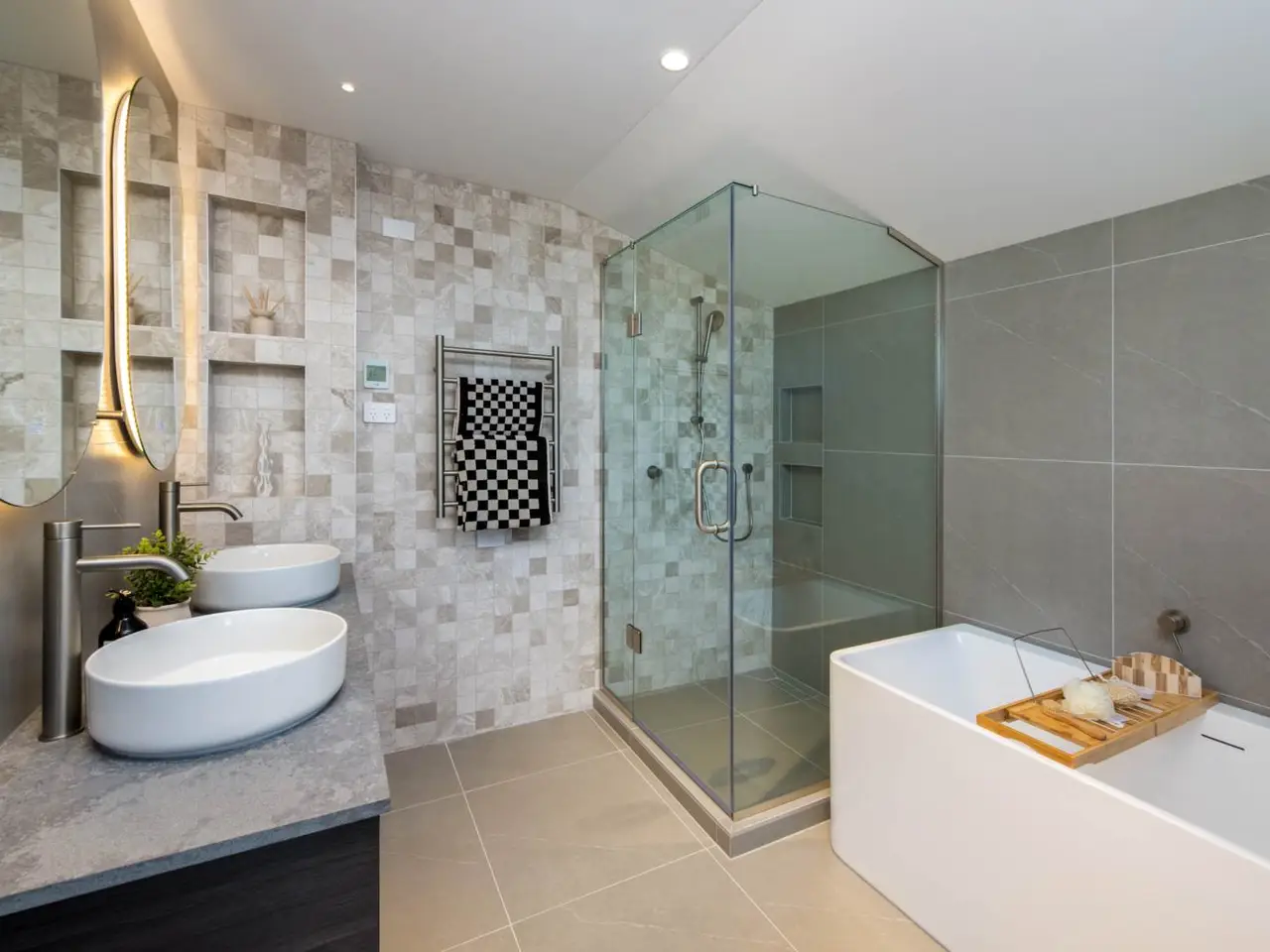 Spa-inspired bathrooms with cloud stone mosaic walls