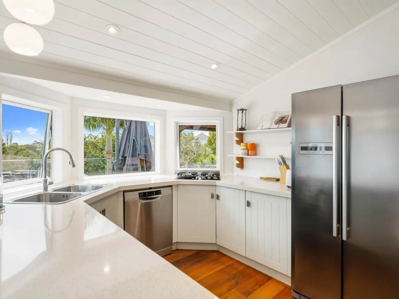 Enjoy the peace and tranquillity of this affordable architecturally designed split-level four bedroom family home nestled at the end of a lane-like driveway in the heart of St Heliers. This 1980s era 216m² (approx.) cedar family home has been substantially upgraded over the years with a tasteful neutral interior creating a light, restful and spacious vibe. The Velux skylights cleverly positioned in the angled whitewashed sarked ceilings blend seamlessly with timeless engineered timber wall panelling and flooring. The carpeted open plan living area offers a versatile living, reading, work from home space with a step-down family lounge for TV viewing and relaxing. Modern double glazing on the north facing side of the home provides ample light, sun and foliage views whilst glass balustrade decking provides the floating in the treetops feeling as you entertain alfresco in summer. The dining/family area offers a gorgeous window seat bathed in sunshine with a view and is adjacent to the practically configured kitchen where the chef can also enjoy the green tree canopies along with peeps of the sea. The ground level integrates three bedrooms each with their own bifold doors to the outdoors and one with a small transitional sunroom. The master bedroom has a walk-in dressing room, and a light filled ensuite with separate toilet and stunning freestanding bath while another more compact family bathroom comprises shower, vanity, and toilet. The home basks in optimal north facing sun whilst three heat pumps provide comfortable year-round warmth. Back upstairs, the double garage connects to the 4th bedroom, ideal for teenagers or extended family wanting some private space and separation with its own French doors providing spa pool and deck access. A separate laundry and versatile home office / study complement this family home. Ideal for entertaining with multiple decks, modern spa pool and privacy anchored by your own exclusive garden area complete with mature palm and deciduous trees to enjoy. Desirably zoned for Kohimarama and St Ignatius Schools, Glendowie College and a short walk to Madill’s Farm Reserve, Beaches, Cafes and bus routes handy for a swift city commute. Auction: 34 Shortland Street, City on Wednesday 15 October 2025 at 10:00AM (unless sold prior)
