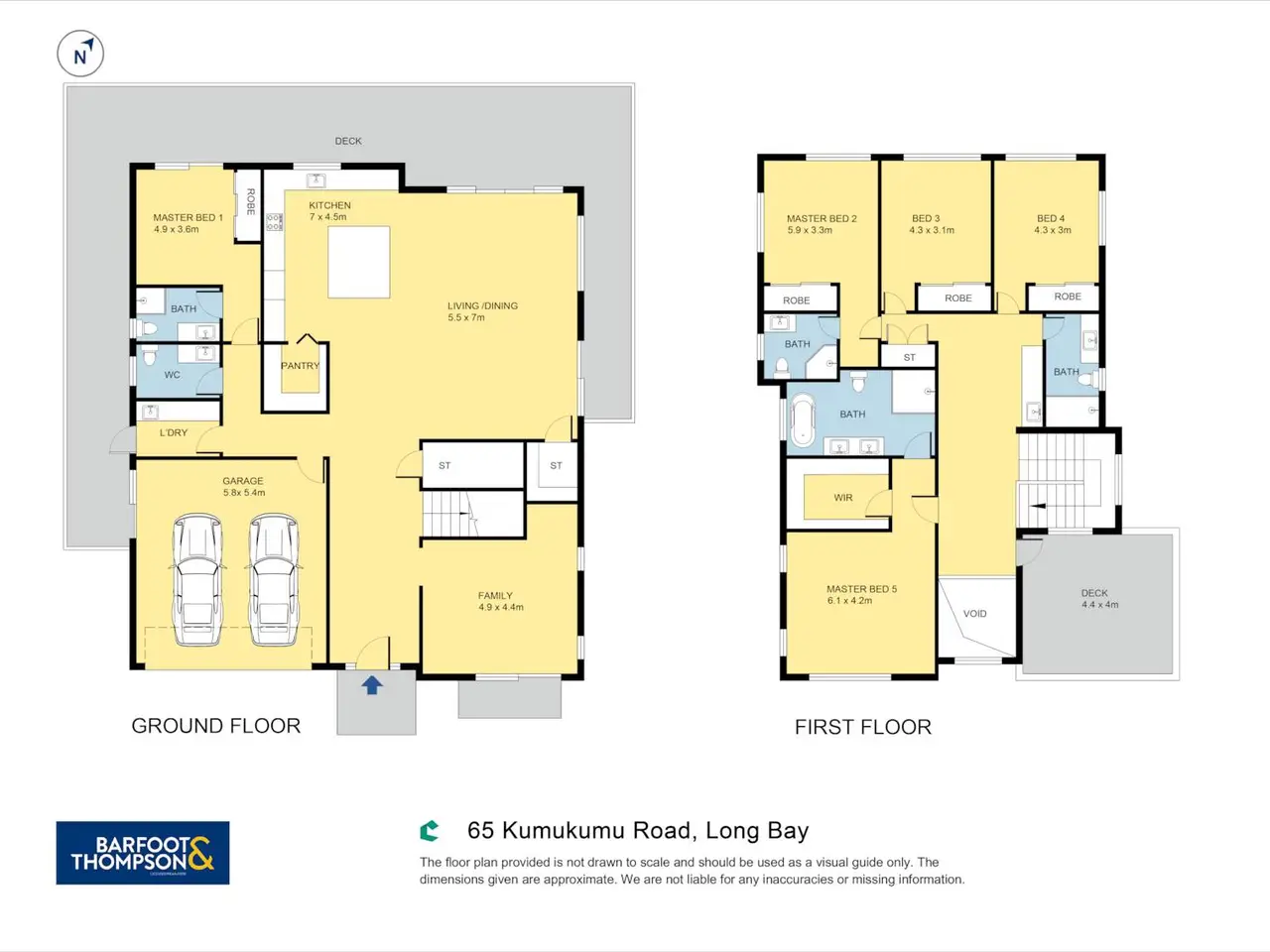 Located on one of Long Bay’s most sought-after streets, this stunning home enjoys elevated views that make the whole space feel open, bright and inviting. Just a short stroll takes you to Long Bay Beach and the vibrant Long Bay Village — home to cafés, restaurants, boutique shops and a New World supermarket. Step inside to discover an elegant and thoughtfully designed interior. The ground floor features a modern open-plan layout — the main kitchen with a generous walk-in pantry, dining and living areas, a separate lounge, and a convenient guest bathroom. There’s also a large bedroom with an en-suite and its own private entrance, perfect for guests or extended family. Upstairs offers plush carpets for cosy living, with four spacious double bedrooms — two with their own en-suites — plus a stylish family bathroom. The second lounge opens to a large deck showcasing elevated views of the sea and Long Bay. This home comes fully equipped with premium features including top-of-the-line German Miele kitchen appliances, central air conditioning, underfloor heating in all bathrooms, a video door security system, and warm LED lighting throughout. Every detail has been designed with comfort and style in mind — this is the modern coastal lifestyle at its best. Deadline sale: Closes on Wednesday 29 October 2025 at 4:00PM (unless sold prior)