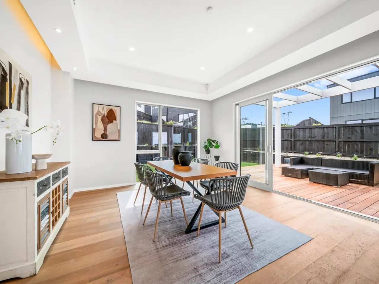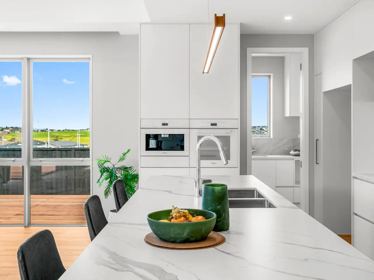 Among the many fine homes in Long Bay, this residence stands out as truly exceptional. Perfectly positioned on a peaceful cul-de-sac within this highly sought-after coastal community, it is set on a generous 603sqm flat section with its longest side facing north, capturing all-day sun. The expansive outdoor area features a wrap-around deck adjoining the rear lounge, while sweeping sea views—including the iconic Rangitoto Island—enhance the sense of space and tranquillity. Offering privacy, security, and refined elegance, this home has been designed with modern family living in mind.A gated entry and full fencing, along with security cameras, ensure peace of mind, while the landscaped, north-facing garden creates a sun-drenched retreat with ample room for children to play and for effortless outdoor entertaining. In addition, there is the convenience of at least four off-street parking spaces.Inside, quality and attention to detail are evident throughout. This substantial residence provides five bedrooms, four living areas, and four-and-a-half bathrooms, catering comfortably to families of all sizes. The ground floor features a bright family lounge opening directly to the garden, a separate lounge, a guest powder room, and a private master suite—ideal for extended family or hosting guests. At the heart of the home, a designer kitchen is fitted with premium Miele appliances, including a built-in coffee machine, oven, and warming drawer. A highly functional scullery and a large separate laundry add everyday convenience, while stylish finishes and a thoughtful layout make the kitchen the centerpiece for both family life and entertaining.Upstairs, a cathedral-ceiling lounge amplifies the sense of light and space. The expansive master suite on this level is a true retreat, basking in all-day sun and offering breathtaking sea views across to Rangitoto Island. Alongside it, a second suite serves as the perfect guest or teenager’s haven. Two additional bedrooms and a modern family bathroom complete the floor, all generously proportioned and bathed in natural light. Bathrooms throughout are finished with high-end fixtures, including German Villeroy & Boch basins and toilets, as well as Hansgrohe tapware—combining timeless elegance with lasting quality.Beyond the home, the location adds even more appeal. A private community playground is only a one-minute walk away, while Long Bay Village, the beach, and the regional park are all just moments from your doorstep—offering the perfect balance of coastal beauty, convenience, and lifestyle.This is more than a home—it is a way of life. Opportunities of this calibre in Long Bay are exceptionally rare. Contact us today to arrange your private viewing. Auction: 8-12 The Promenade, Takapuna on Wednesday 8 October 2025 at 9:30AM (unless sold prior)
