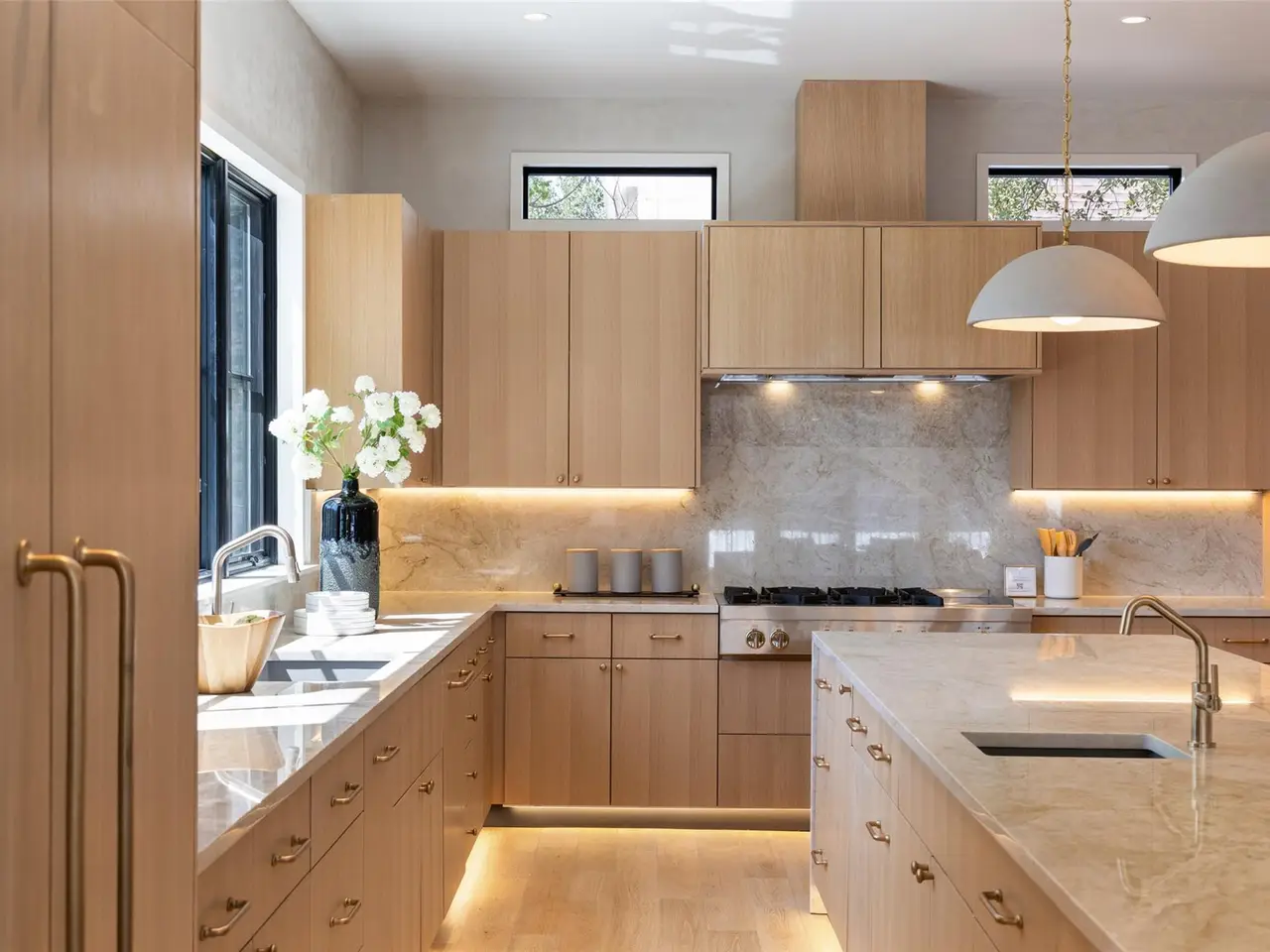- Custom rift-cut white oak cabinetry