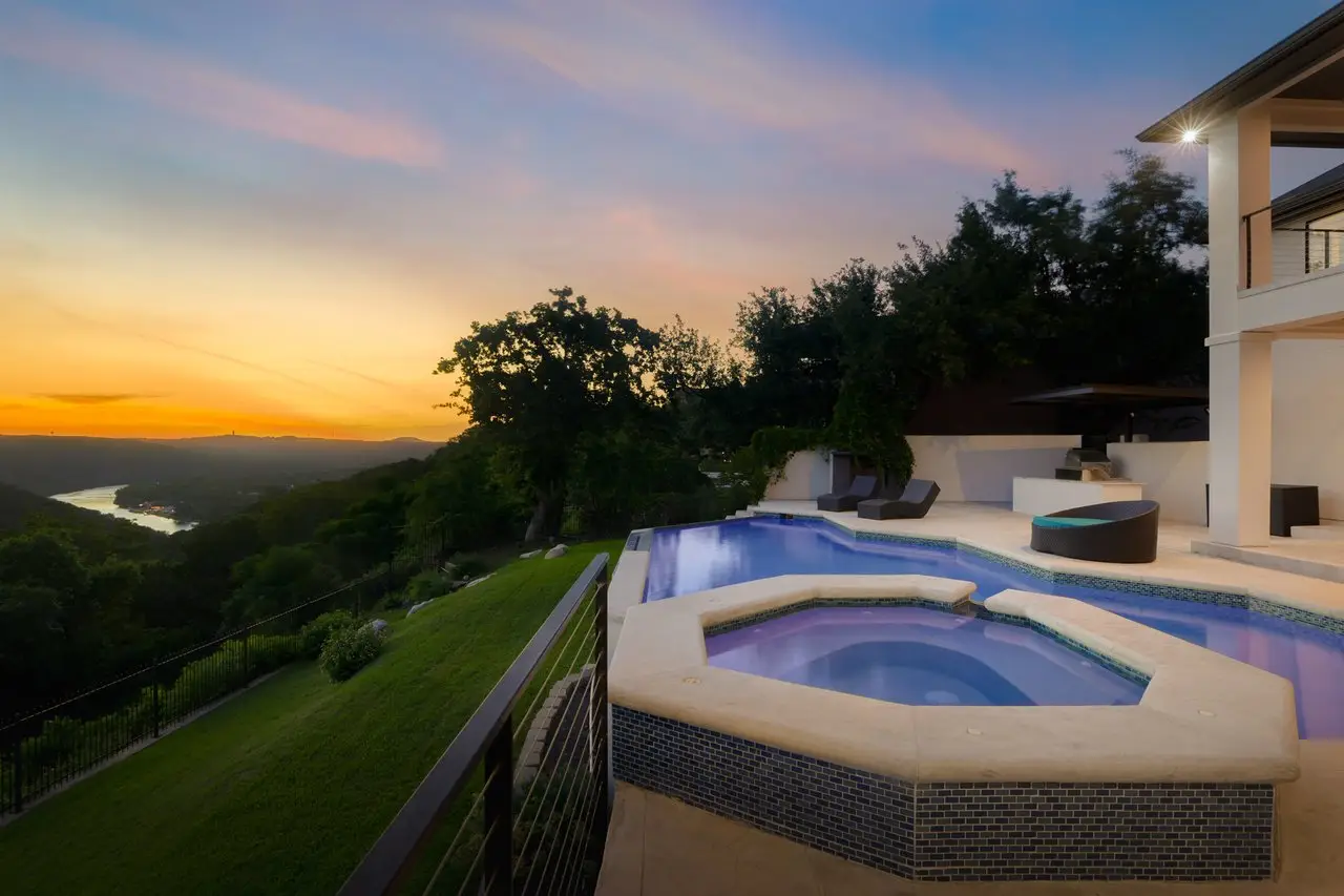 Welcome to 1704 Palisades Pointe, a breathtaking Hill Country retreat nestled in the gated Bee Cave enclave called The Pointe, a private street located in the ever-popular community called Lake Pointe. Perfectly perched above Lake Austin and backing to a protected nature preserve, this home boasts unobstructed, panoramic views of both the sparkling lake and the surrounding natural landscape, offering sweeping views, serene privacy, and a thoughtfully remodeled and redesigned layout that blends modern luxury with relaxed everyday living. Step inside to soaring ceilings and sleek finishes that immediately set the tone. To your left, a formal dining room with a statement chandelier flows seamlessly into a chef’s dream kitchen—complete with high-end appliances, abundant counter space, and a cozy built-in breakfast nook. The kitchen overlooks the expansive family room, where oversized windows and sliding glass doors frame the breathtaking backdrop of Lake Austin and the lush preserve, blurring the line between indoors and out. The main floor also features a spacious primary suite with private patio access and a spa-like ensuite bath featuring dual vanities, an oversized soaking tub framed by a picture window, and a massive walk-in shower with multiple shower heads. A guest suite with private bath, a stylish powder room, a dedicated pool bath, and a separate fitness studio round out the first level, offering ultimate convenience and flexibility. A striking modern staircase leads upstairs to three additional bedrooms—one ensuite and two connected by a Jack-and-Jill bath. Also on this level: a large home office with a built-in Murphy bed, an impressive game room with a secret playroom every child will love, and a private balcony overlooking the treetops, the protected preserve, and the shimmering expanse of Lake Austin beyond. Out back, the home transforms into an entertainer’s dream. A large covered patio with a built-in grill and authentic pizza oven is anchored by a romantic vine-covered fireplace, setting the stage for unforgettable evenings under the stars. The infinity-edge pool and spa appear to spill directly into the canopy below, while the lush green lawn provides space to play, unwind, or simply soak in the view. Just outside the community gates, enjoy access to sidewalks, scenic hike and bike trails, neighborhood parks, the private Lake Pointe dock on Lake Austin, and the highly rated Lake Pointe Elementary, part of the acclaimed Lake Travis ISD. You’re just minutes from the Hill Country Galleria, Lowe’s, popular dining spots, a movie theatre and two top grocery options - Whole Foods and HEB. And only 25 minutes to Downtown Austin. This is location at its finest. With its breathtaking setting and location, functional layout, and striking finishes, 1704 Palisades Pointe offers a rare chance to own a slice of Lake Austin luxury. Skip the stress of renovations. Unpack and enjoy!