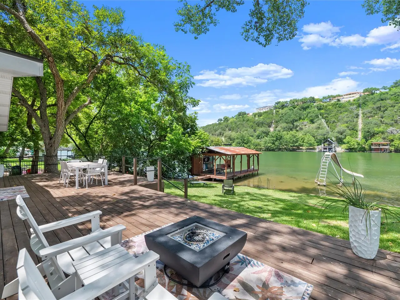 Rested along one of the most coveted stretches of Lake Austin, 3100 Edgewater Drive is a charming waterfront retreat offering 100'+/- of waterfront just minutes from the city. This privately gated property spans just over an acre, shaded by towering cypress and oak trees that provide a picturesque and tranquil setting. The two-bedroom, two-bathroom home is designed for effortless lakeside living, with inviting interiors that blend comfort and charm. Whether you're unwinding indoors or stepping outside to take in the natural beauty, this retreat is perfectly suited for those who appreciate a relaxed waterfront lifestyle. Steps from the door you will find fish, turtles and a bird watchers paradise. A highlight of the property is the covered tie-up boat dock, an ideal spot for gathering with friends while watching the boats drift by in the shade. The back patio extends the living space outdoors, offering a perfect place to enjoy morning coffee or sunset cocktails with the sparkling lake as your backdrop. Whether used as a full-time residence or a weekend getaway, 3100 Edgewater Drive embodies the essence of laid-back luxury, where every day on Lake Austin feels like a retreat. Within Eanes ISD. 24-Hour Advance Showing Notice Required. Tax and assessed values are estimates for illustration purposes only. All figures should be independently verified.