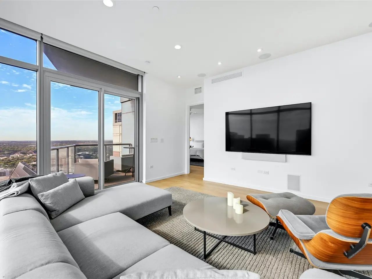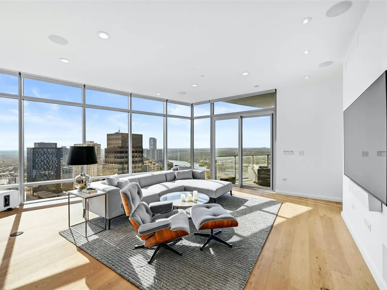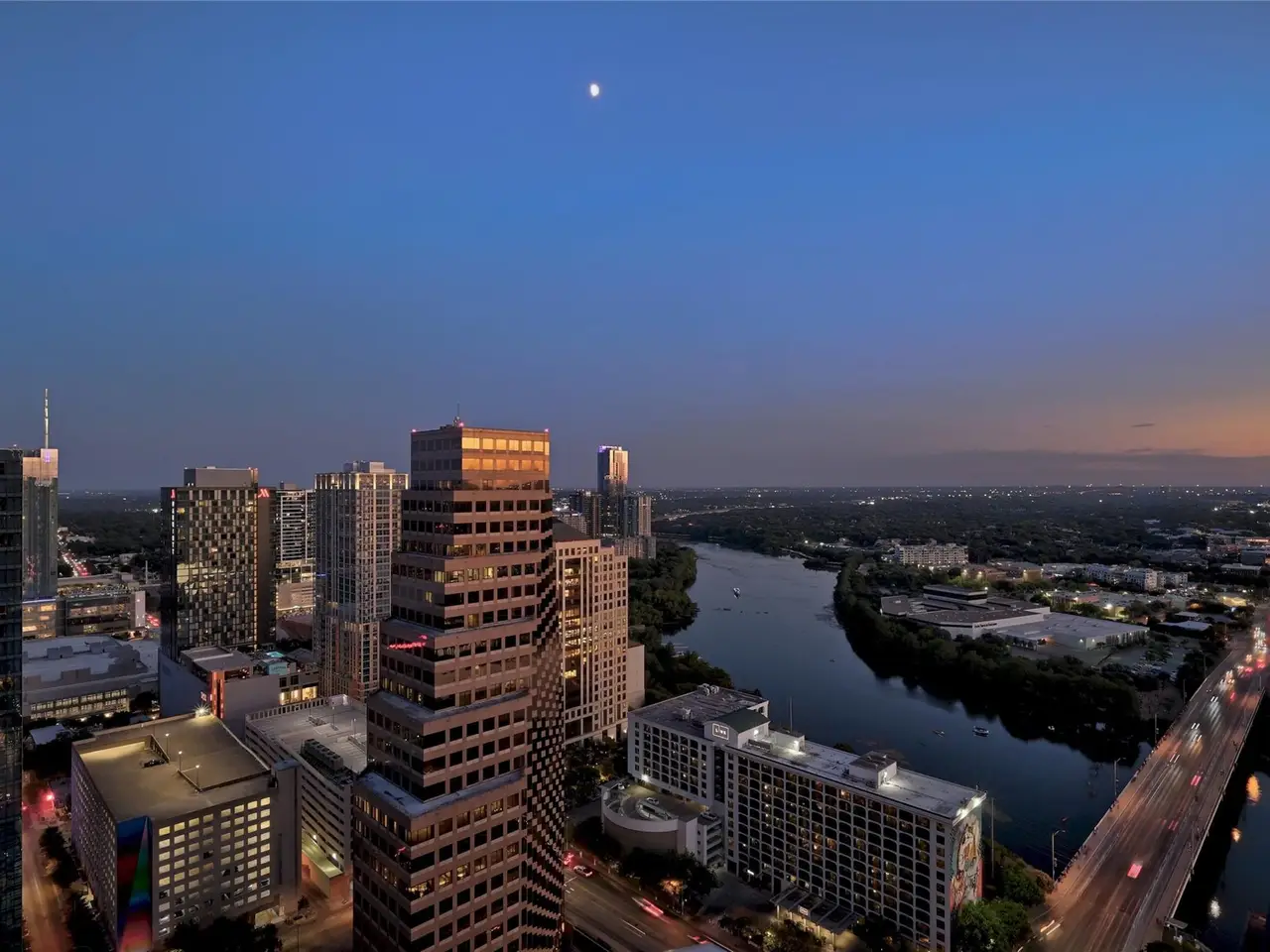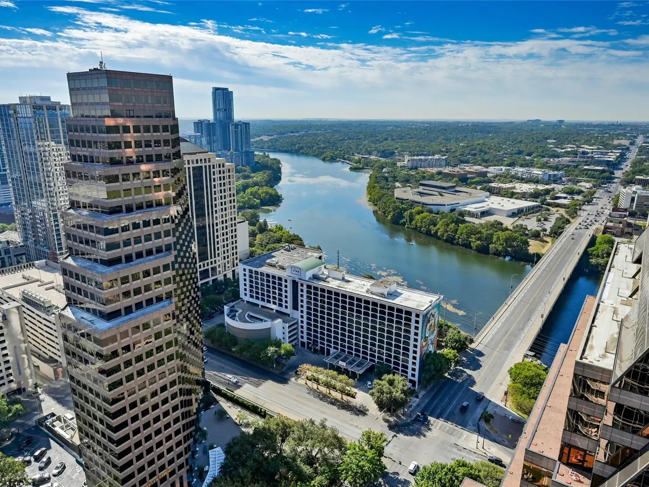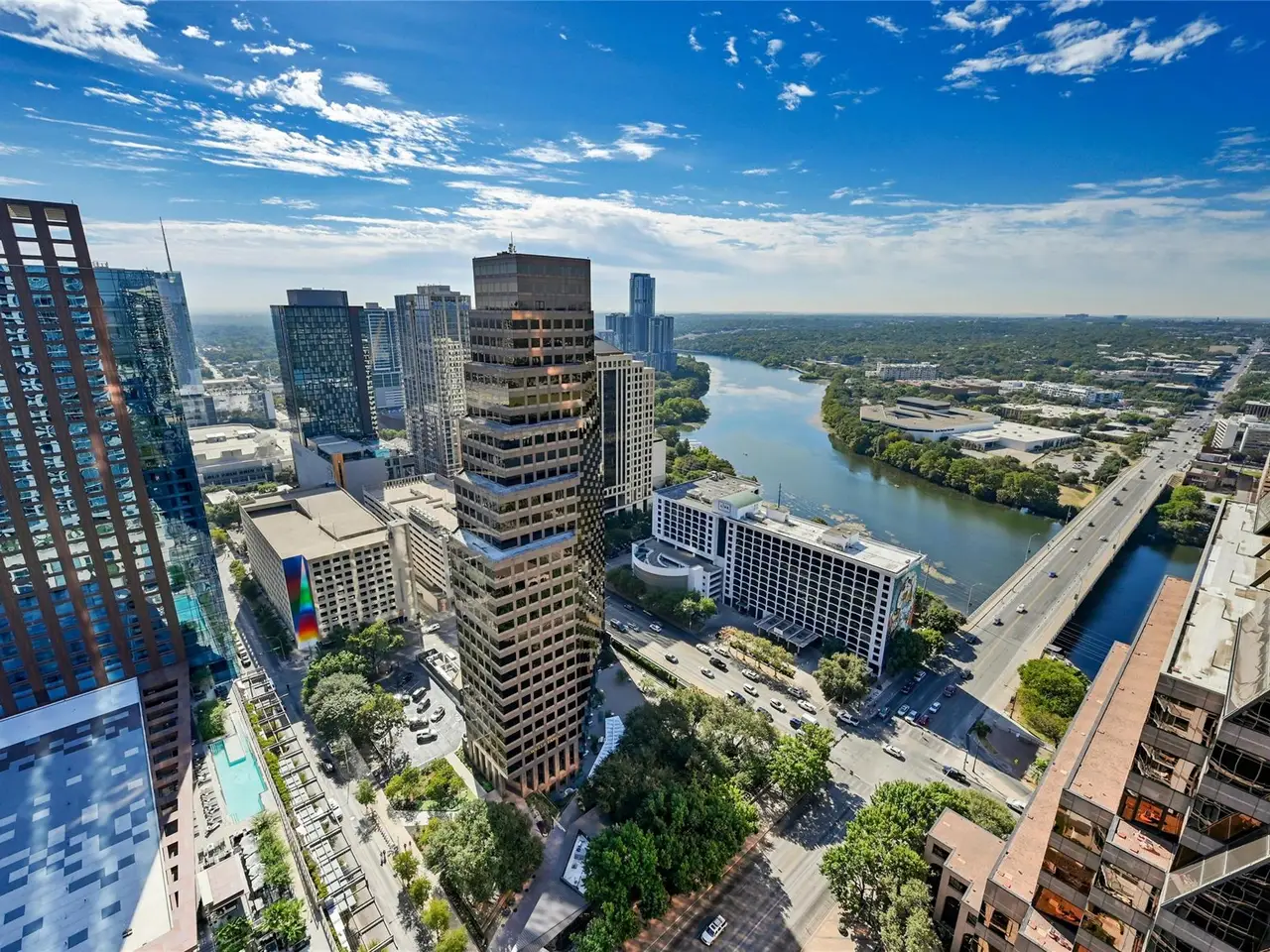 Rare chance to own the coveted "SE" floorplan in Austin's Austonian, offering unparalleled views of Lady Bird Lake. This immaculate residence, sparingly used by the out-of-state owner, boasts pristine condition and an ideal layout for luxury living and remote work. Designed by Lindsay Maki, the two en-suite bedrooms provide privacy, complemented by a 3rd bedroom/flex space that could serve as an at-home office, gym or nursery. The chef's kitchen features high-end Bosch, Sub-Zero and Bertazzoni appliances, Waterworks fixtures, and smart home connectivity through Google Fiber. With dual Google Nest HVAC controls, Lutron lighting, and a Sonos sound system, this smart home is equipped for seamless control. Additional features include iWave air cleaners, wide-plank oak floors, and sophisticated finishes throughout. Two reserved side-by-side parking spaces with an EV charger and a 9th-floor storage room enhance convenience. The Austonian, downtown's premier building, boasts 40,000 sq ft of amenities for 174 units, a rare ratio for Austin condos that ensures privacy and exclusivity. Luxuries include valet parking, a 56th-floor fitness center, pool deck, BBQ areas, a spa room, guest suites, dog park and grooming area, and 24-hour concierge service reserved for owners only. The building, reserved for owners, offers an oasis of serenity. Perfectly located in downtown Austin, The Austonian provides quick access to the Capital, restaurants, parks, and entertainment. With proximity to light rail stops and major roadways, commuting to Austin Bergstrom airport is effortless. This residence is ideal for those seeking a primary home, a base for exploration, or a part of a residential portfolio. Live in luxury at the heart of Austin in The Austonian. Tax and assessed values are estimates for illustration purposes only. All figures should be independently verified.
