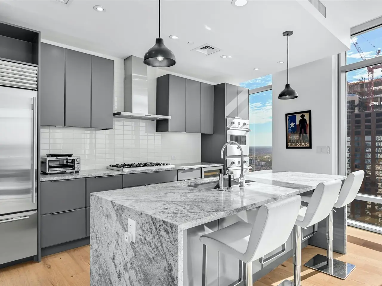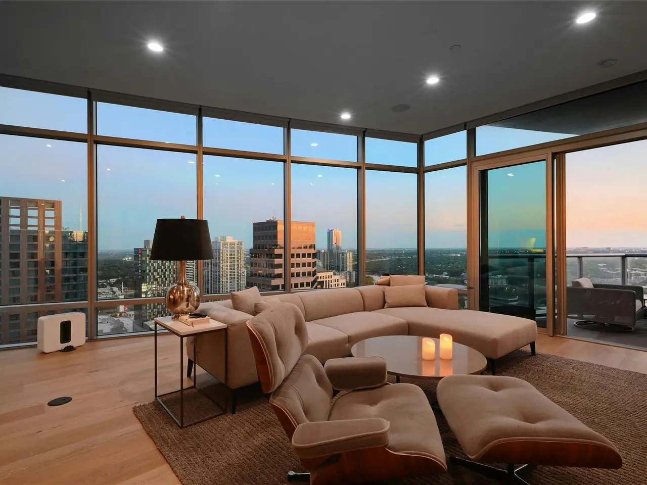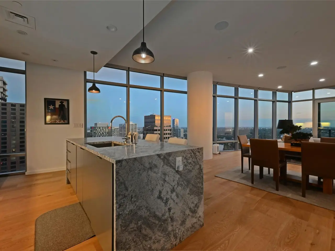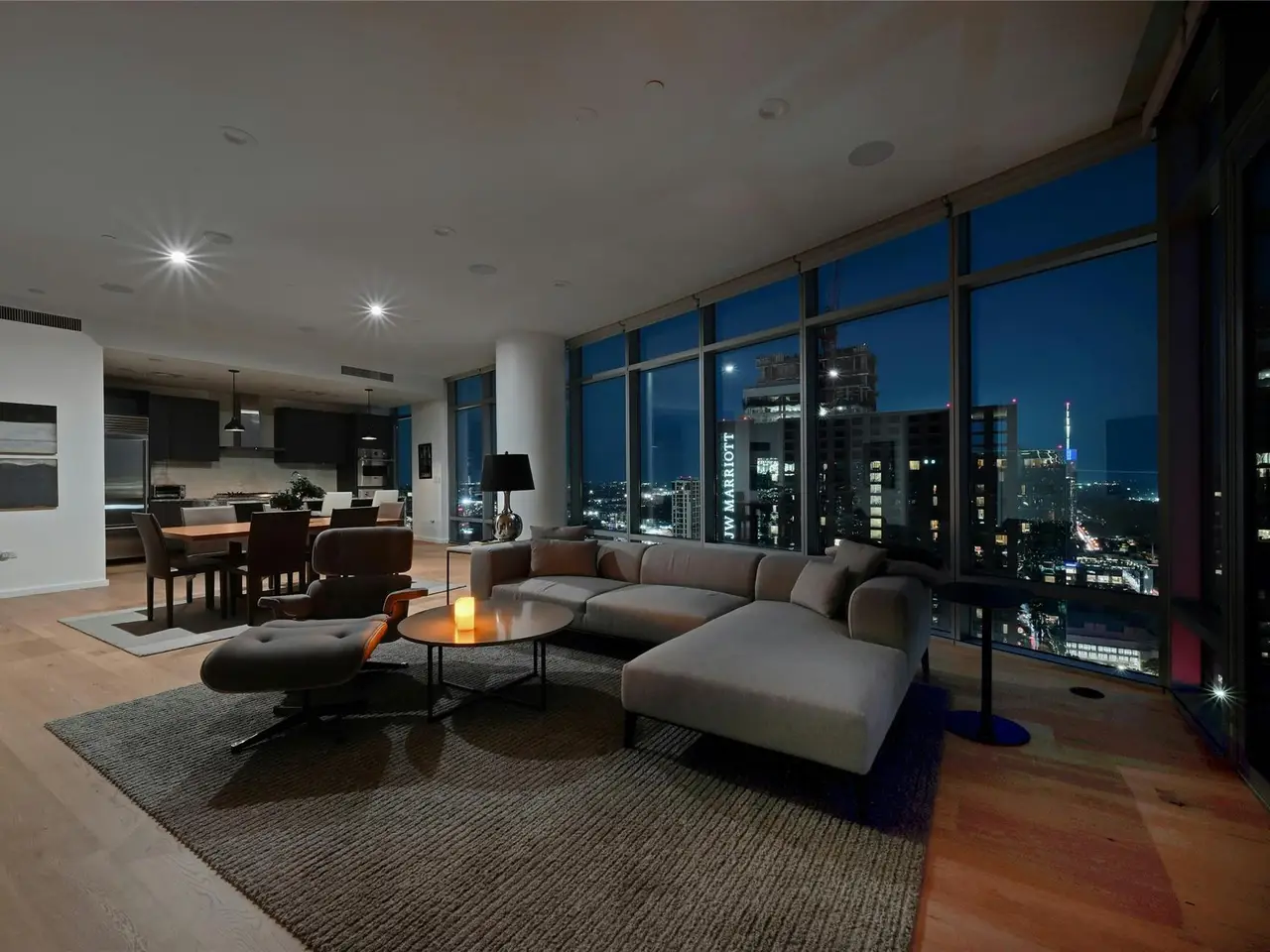 Rare chance to own the coveted "SE" floorplan in Austin's Austonian, offering unparalleled views of Lady Bird Lake. This immaculate residence, sparingly used by the out-of-state owner, boasts pristine condition and an ideal layout for luxury living and remote work. Designed by Lindsay Maki, the two en-suite bedrooms provide privacy, complemented by a 3rd bedroom/flex space that could serve as an at-home office, gym or nursery. The chef's kitchen features high-end Bosch, Sub-Zero and Bertazzoni appliances, Waterworks fixtures, and smart home connectivity through Google Fiber. With dual Google Nest HVAC controls, Lutron lighting, and a Sonos sound system, this smart home is equipped for seamless control. Additional features include iWave air cleaners, wide-plank oak floors, and sophisticated finishes throughout. Two reserved side-by-side parking spaces with an EV charger and a 9th-floor storage room enhance convenience. The Austonian, downtown's premier building, boasts 40,000 sq ft of amenities for 174 units, a rare ratio for Austin condos that ensures privacy and exclusivity. Luxuries include valet parking, a 56th-floor fitness center, pool deck, BBQ areas, a spa room, guest suites, dog park and grooming area, and 24-hour concierge service reserved for owners only. The building, reserved for owners, offers an oasis of serenity. Perfectly located in downtown Austin, The Austonian provides quick access to the Capital, restaurants, parks, and entertainment. With proximity to light rail stops and major roadways, commuting to Austin Bergstrom airport is effortless. This residence is ideal for those seeking a primary home, a base for exploration, or a part of a residential portfolio. Live in luxury at the heart of Austin in The Austonian. Tax and assessed values are estimates for illustration purposes only. All figures should be independently verified.