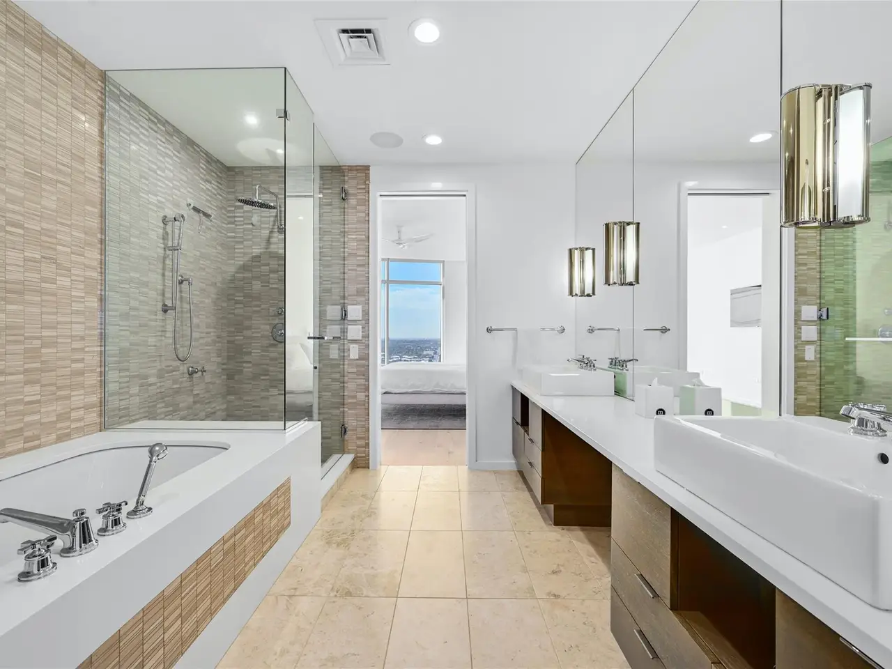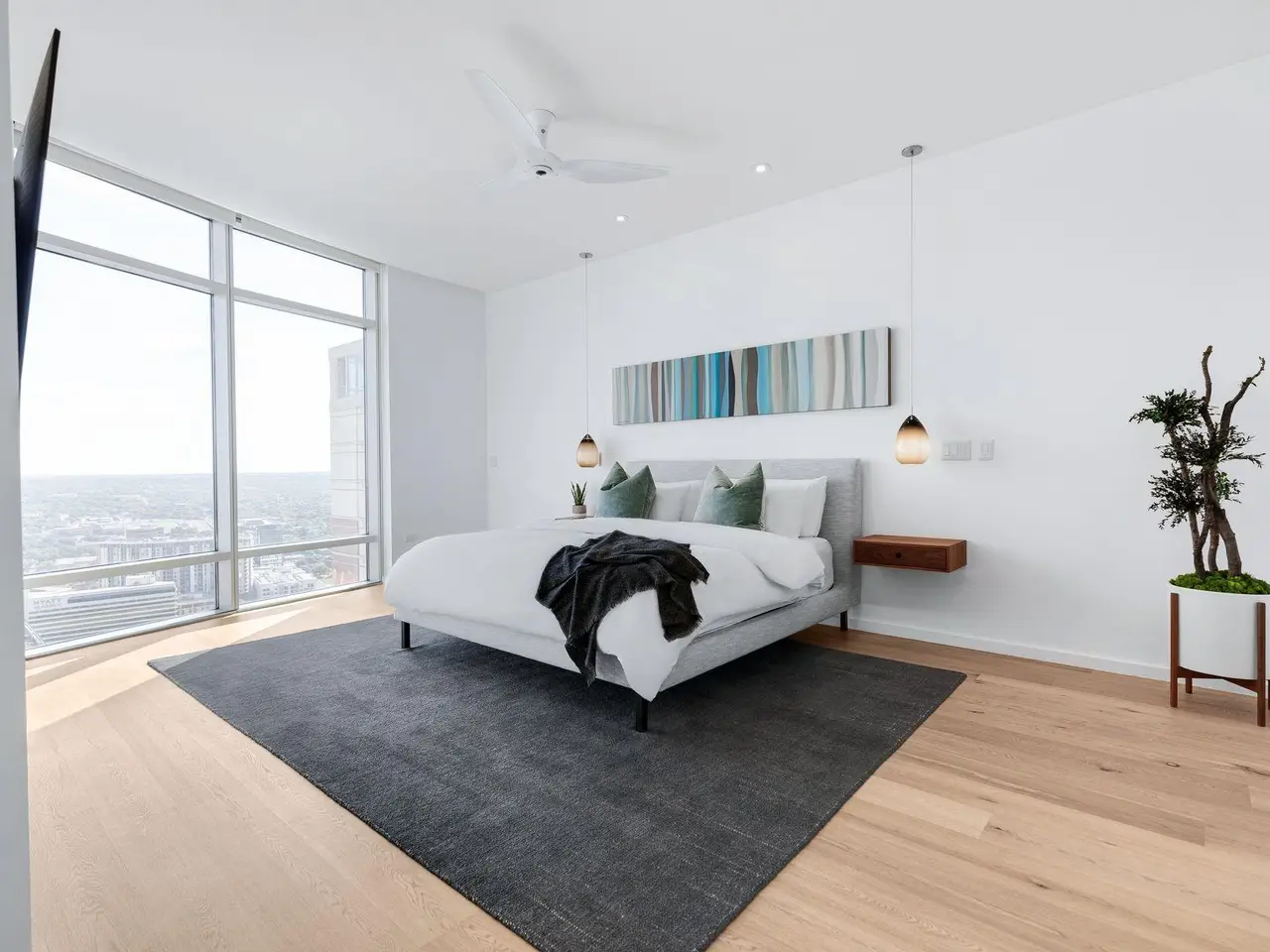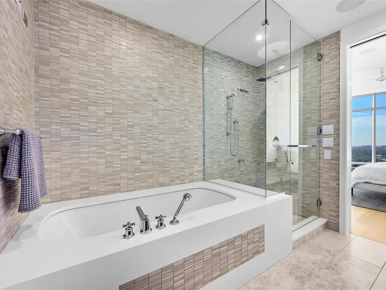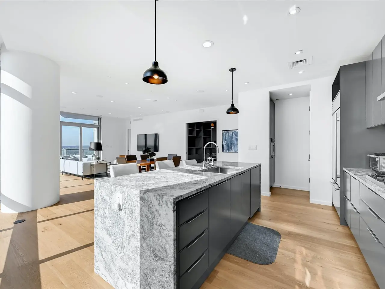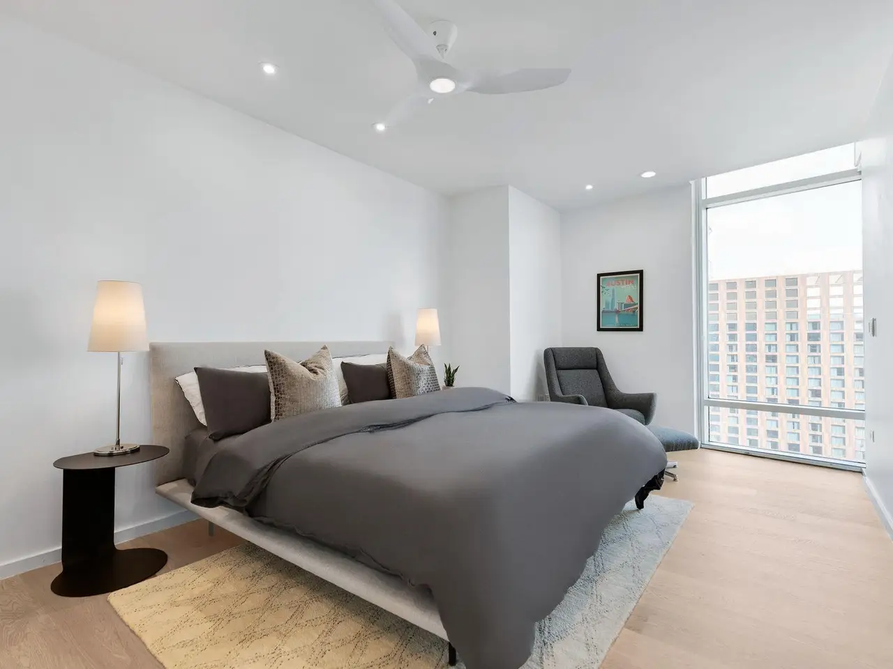 Rare chance to own the coveted "SE" floorplan in Austin's Austonian, offering unparalleled views of Lady Bird Lake. This immaculate residence, sparingly used by the out-of-state owner, boasts pristine condition and an ideal layout for luxury living and remote work. Designed by Lindsay Maki, the two en-suite bedrooms provide privacy, complemented by a 3rd bedroom/flex space that could serve as an at-home office, gym or nursery. The chef's kitchen features high-end Bosch, Sub-Zero and Bertazzoni appliances, Waterworks fixtures, and smart home connectivity through Google Fiber. With dual Google Nest HVAC controls, Lutron lighting, and a Sonos sound system, this smart home is equipped for seamless control. Additional features include iWave air cleaners, wide-plank oak floors, and sophisticated finishes throughout. Two reserved side-by-side parking spaces with an EV charger and a 9th-floor storage room enhance convenience. The Austonian, downtown's premier building, boasts 40,000 sq ft of amenities for 174 units, a rare ratio for Austin condos that ensures privacy and exclusivity. Luxuries include valet parking, a 56th-floor fitness center, pool deck, BBQ areas, a spa room, guest suites, dog park and grooming area, and 24-hour concierge service reserved for owners only. The building, reserved for owners, offers an oasis of serenity. Perfectly located in downtown Austin, The Austonian provides quick access to the Capital, restaurants, parks, and entertainment. With proximity to light rail stops and major roadways, commuting to Austin Bergstrom airport is effortless. This residence is ideal for those seeking a primary home, a base for exploration, or a part of a residential portfolio. Live in luxury at the heart of Austin in The Austonian. Tax and assessed values are estimates for illustration purposes only. All figures should be independently verified.