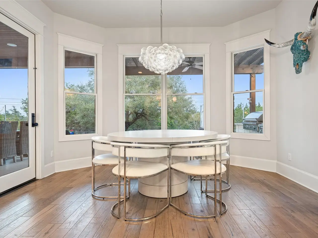 Welcome to this exceptional estate in the prestigious gated community of Verano in Barton Creek. Originally built in 2013, this home was elevated with a remarkable addition in 2023, blending timeless elegance with modern luxury. Situated on 1.087 acres of lushly landscaped grounds, this spacious 6-bedroom, 5 full bath, and 2 half bath residence offers an unparalleled living experience. Every detail of this home is designed for comfort and sophistication, featuring tall ceilings, expansive living areas, and state-of-the-art technology throughout. The main level boasts six generously sized bedrooms, an elegant media room, a dedicated office, and multiple dining and living spaces with 4 fireplaces, perfect for entertaining or family gatherings. Upstairs, an entertainment room with a private balcony provides breathtaking views of downtown. Step outside into a resort-style backyard, complete with a sparkling pool, relaxing spa, outdoor kitchen, and cozy fire pit, all designed for year-round enjoyment. The invisible fence and iron fencing provide both security and seamless aesthetics, while the Tesla charger adds modern convenience. Nestled in the heart of Barton Creek, this wired-to-the-max smart home offers both privacy and proximity to top-tier amenities. Experience the best of Austin living in this one-of-a-kind estate--schedule your private tour today!