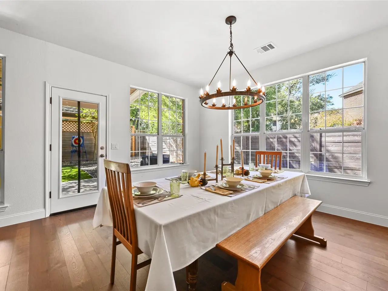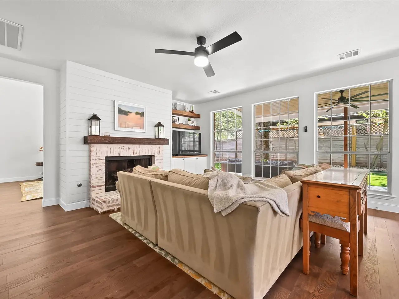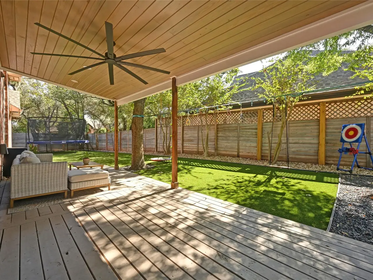 Charming traditional style home in Circle C located on a corner lot in a quiet cul-de-sac. Recently updated front door allows natural light to flood the entry hallway. The formal dining room is currently being used as a study. The formal living room has a cathedral ceiling with a wall of windows overlooking the backyard. The recently remodeled kitchen has stainless appliances, walk in pantry, center island with breakfast bar, gorgeous quartz counter tops, and is open to the den and dining area. The den has a wood burning fireplace with beautiful white washed brick surround and book shelves. The backyard is fully fenced with a covered sitting area and plenty of room for a trampoline or soccer goal. Turf grass makes yard maintenance easy! The primary bedroom, located on the main floor, overlooks the backyard. The primary bathroom was also recently updated with new flooring, cabinets, quartz counter tops, free standing tub, fully tiled shower and walk in closet. Upstairs there are three large bedrooms, 2 full bathrooms and a spacious game room. Windows galore showcase the surrounding trees and outdoors. Property is within walking distance of Kiker Elementary School and one of the Circle C swimming pools and playgrounds. The property's location within the Austrial Loop provides privacy and lots of room to walk and ride bikes.