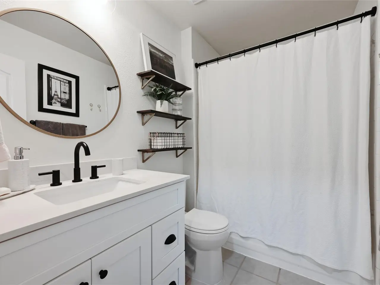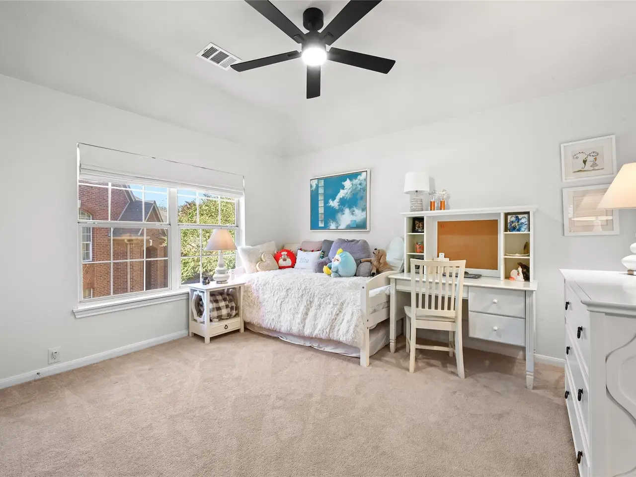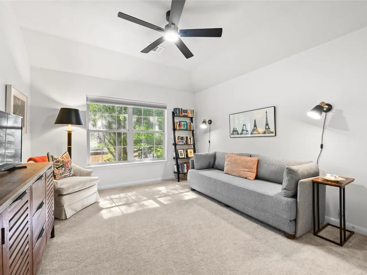 Charming traditional style home in Circle C located on a corner lot in a quiet cul-de-sac. Recently updated front door allows natural light to flood the entry hallway. The formal dining room is currently being used as a study. The formal living room has a cathedral ceiling with a wall of windows overlooking the backyard. The recently remodeled kitchen has stainless appliances, walk in pantry, center island with breakfast bar, gorgeous quartz counter tops, and is open to the den and dining area. The den has a wood burning fireplace with beautiful white washed brick surround and book shelves. The backyard is fully fenced with a covered sitting area and plenty of room for a trampoline or soccer goal. Turf grass makes yard maintenance easy! The primary bedroom, located on the main floor, overlooks the backyard. The primary bathroom was also recently updated with new flooring, cabinets, quartz counter tops, free standing tub, fully tiled shower and walk in closet. Upstairs there are three large bedrooms, 2 full bathrooms and a spacious game room. Windows galore showcase the surrounding trees and outdoors. Property is within walking distance of Kiker Elementary School and one of the Circle C swimming pools and playgrounds. The property's location within the Austrial Loop provides privacy and lots of room to walk and ride bikes.