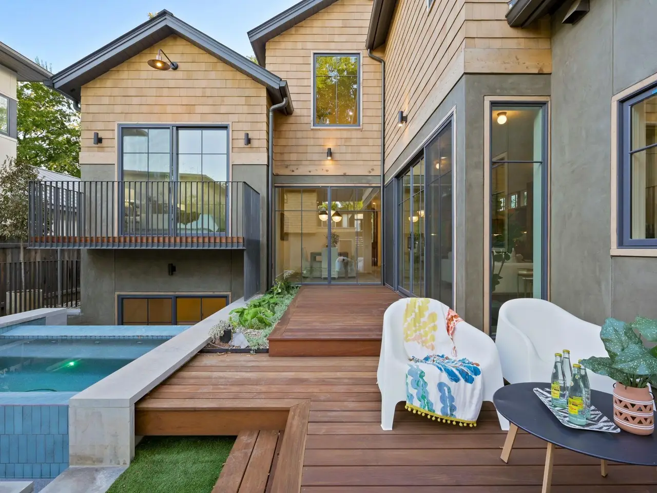 Designed through a true collaboration between studioHA and MADERA Custom Homes, this residence is more than a house. It is a carefully considered living experience. With every detail shaped by a team of diverse perspectives, the home strikes a balance between Austin's beloved character and modern luxury.Inspired by the classic bungalow style, the front facade respects the rhythm of the neighborhood, while inside, expansive living spaces open seamlessly to the outdoors. The main level is designed with ease and flow in mind, ideal for entertaining or simply enjoying daily rituals with family and friends.The home features 5 bedrooms and 5.5 bathrooms in total, including a 4-bedroom, 4.5-bathroom main home and a 1-bedroom, 1-bathroom detached casita complete with its own full kitchen. A two-car garage provides convenience, while the pool, spa, and lush landscaping transform the backyard into an everyday escape. The primary suite offers a private retreat, lifted just above the basement to overlook the pool and waterfall below, creating an elevated vantage point that feels both serene and connected. The three secondary bedrooms offer ensuite bathrooms and curated designer details.This is not just a custom home, but a vision realized with craftsmanship and finishes that will stand the test of time in one of Austin's most desirable neighborhoods.See more at: https://bouldinretreat.com/