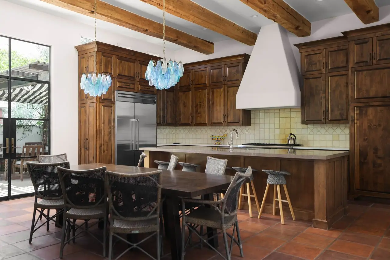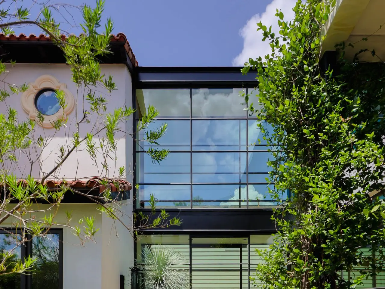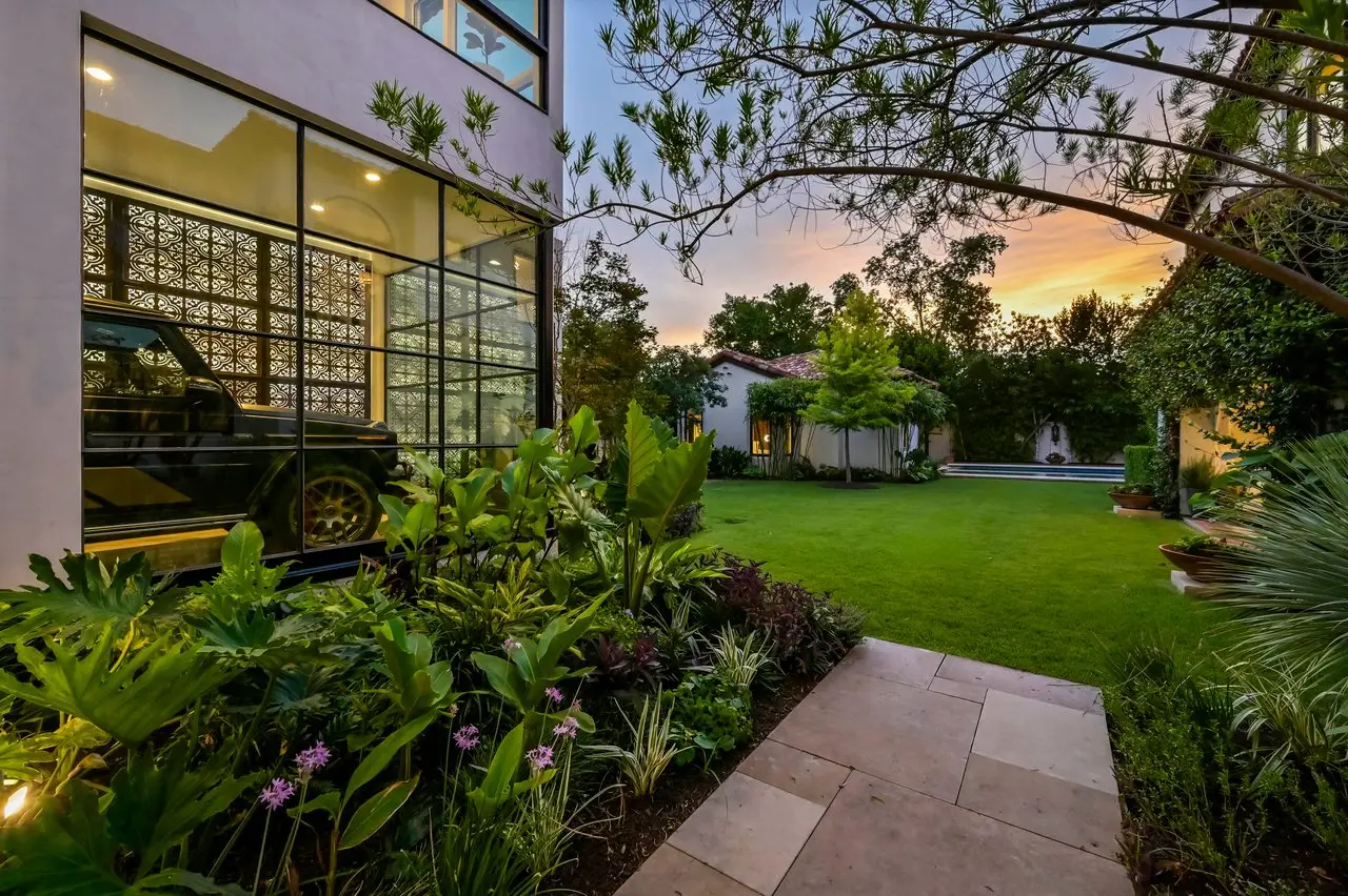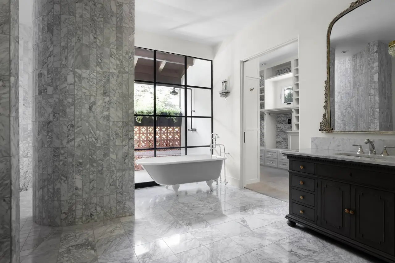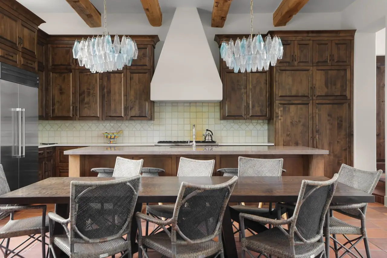 Magnificent Spanish Colonial Revival-Style Estate in West Enfield Tucked behind a private gate on a third of an acre in the historic West Enfield Neighborhood, 1308 Meriden Lane is a striking example of Spanish Colonial Revival architecture blended with contemporary elements in one of Austin’s most iconic neighborhoods. With its LaHabra stucco exterior, clay tile roof by Claymex, and multiple landscaped courtyards, this five-bedroom, five-and-a-half-bath estate offers timeless design and resort-style living just minutes from downtown. A winding entry leads to the heart of the home—an artful J-shaped two-story residence connected by a showstopping glass bridge made of Portella steel. Nearly every room is designed with views and access to the outdoors, offering a seamless transition between indoor elegance and al fresco ease. A dramatic front courtyard invites lounging and dining beneath the gas lanterns, surrounded by two hand-carved Texas Walnut limestone fountains and lush, colorful landscaping. Inside, the home reflects a thoughtful interplay of natural light, texture, and craftsmanship. Historic, reclaimed hand-hewn beams, antique and found lighting, and handcrafted details like the oversized carved stone fireplace and Wendel Brousard's custom primary bedroom door add depth and warmth to every space. The floors are layered with Old Growth Gunstock Walnut and Saltillo tile, with vibrant Mexican tile risers and caustic tile on the primary patio. Five dedicated living areas, including an upper-level lounge wrapped in hand-painted wallpaper, offer flexibility for both retreat and entertaining. In the primary suite, a spa-like bathroom opens to an indoor/outdoor shower, while the cabana pool house features a custom bar and vintage church window over 100 years old, blending history with modern luxury. Additional highlights include a rare glass-enclosed, backlit garage with room for 4–6 vehicles, an auto lift, and custom steel and wood detailing throughout—from the front door to the patio curtain rods (and a subterranean shelter). A whole-house vacuum system runs through both the home and garage, and Thermador appliances, motorized shades, Farrow & Ball paint, and custom decorative windows elevate the finish-out. With its sun-soaked Ipe wood pool deck, hidden storage areas, Rondel-stained glass windows, and sophisticated yet inviting style, 1308 Meriden Lane is a masterclass in curated living, offering the best of Old Austin charm and modern refinement.