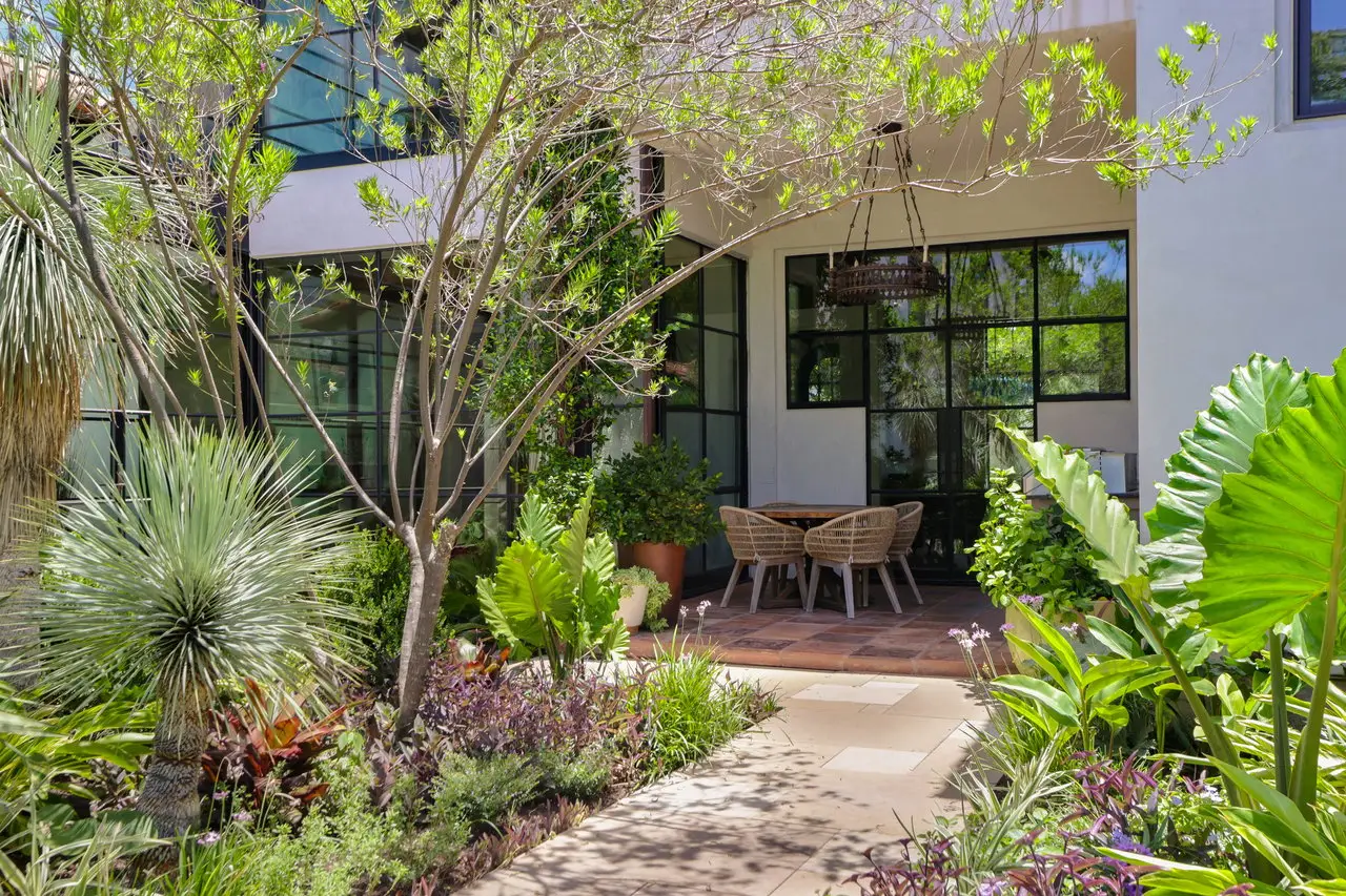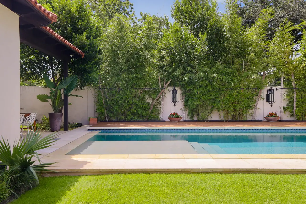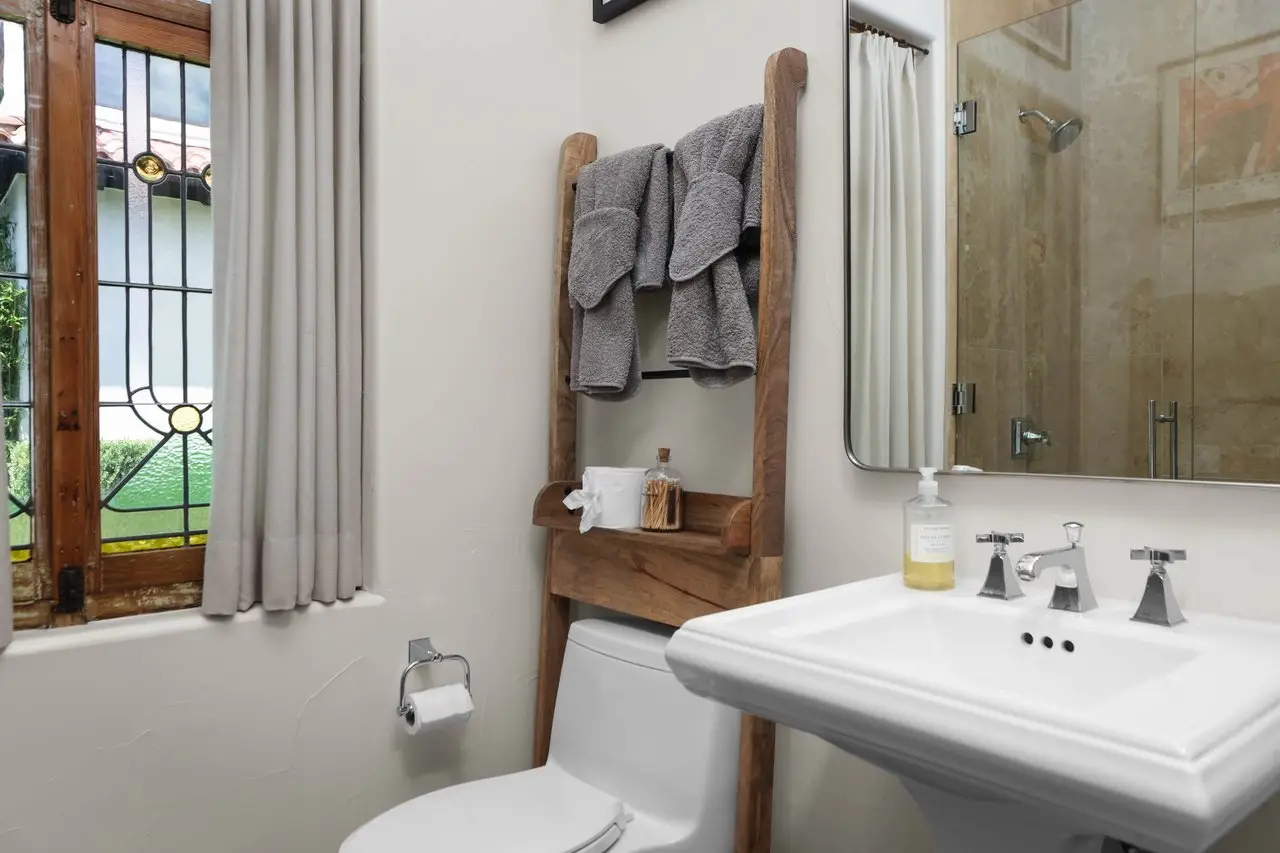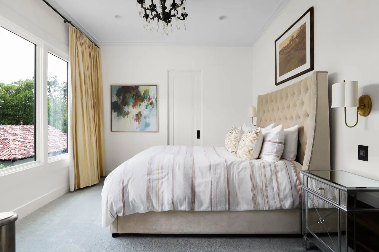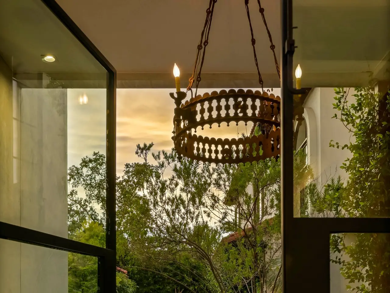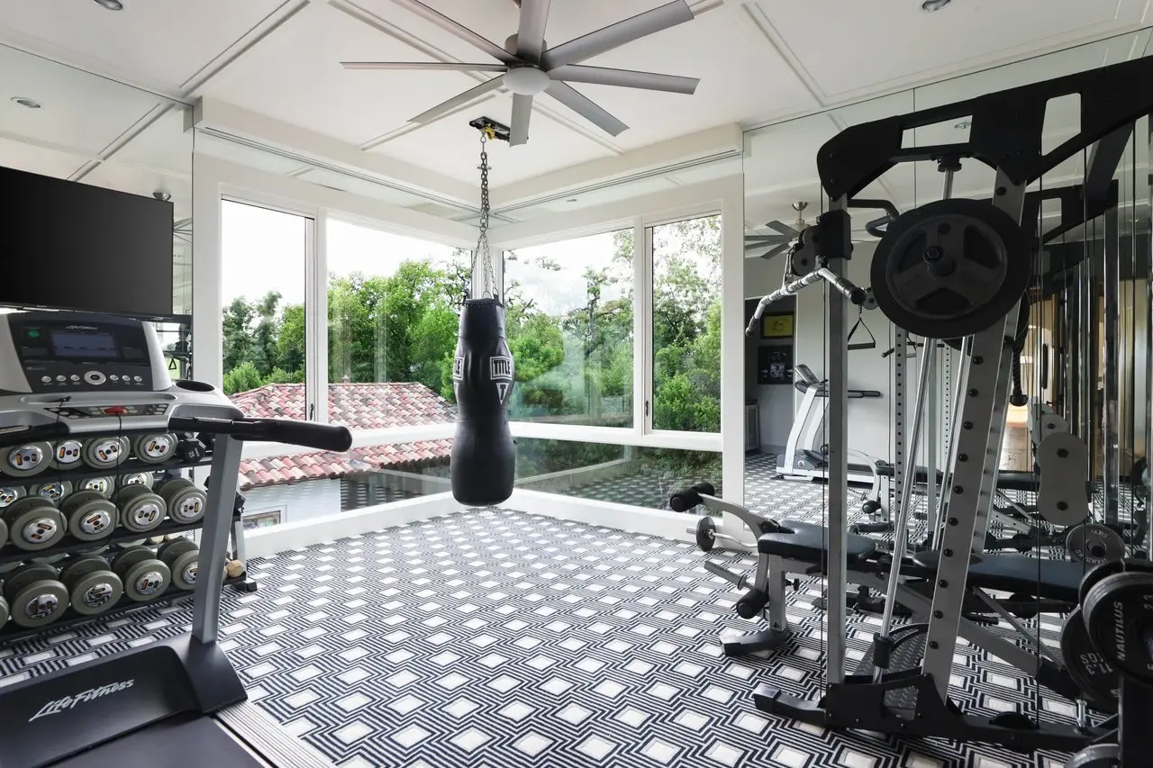 Magnificent Spanish Colonial Revival-Style Estate in West Enfield Tucked behind a private gate on a third of an acre in the historic West Enfield Neighborhood, 1308 Meriden Lane is a striking example of Spanish Colonial Revival architecture blended with contemporary elements in one of Austin’s most iconic neighborhoods. With its LaHabra stucco exterior, clay tile roof by Claymex, and multiple landscaped courtyards, this five-bedroom, five-and-a-half-bath estate offers timeless design and resort-style living just minutes from downtown. A winding entry leads to the heart of the home—an artful J-shaped two-story residence connected by a showstopping glass bridge made of Portella steel. Nearly every room is designed with views and access to the outdoors, offering a seamless transition between indoor elegance and al fresco ease. A dramatic front courtyard invites lounging and dining beneath the gas lanterns, surrounded by two hand-carved Texas Walnut limestone fountains and lush, colorful landscaping. Inside, the home reflects a thoughtful interplay of natural light, texture, and craftsmanship. Historic, reclaimed hand-hewn beams, antique and found lighting, and handcrafted details like the oversized carved stone fireplace and Wendel Brousard's custom primary bedroom door add depth and warmth to every space. The floors are layered with Old Growth Gunstock Walnut and Saltillo tile, with vibrant Mexican tile risers and caustic tile on the primary patio. Five dedicated living areas, including an upper-level lounge wrapped in hand-painted wallpaper, offer flexibility for both retreat and entertaining. In the primary suite, a spa-like bathroom opens to an indoor/outdoor shower, while the cabana pool house features a custom bar and vintage church window over 100 years old, blending history with modern luxury. Additional highlights include a rare glass-enclosed, backlit garage with room for 4–6 vehicles, an auto lift, and custom steel and wood detailing throughout—from the front door to the patio curtain rods (and a subterranean shelter). A whole-house vacuum system runs through both the home and garage, and Thermador appliances, motorized shades, Farrow & Ball paint, and custom decorative windows elevate the finish-out. With its sun-soaked Ipe wood pool deck, hidden storage areas, Rondel-stained glass windows, and sophisticated yet inviting style, 1308 Meriden Lane is a masterclass in curated living, offering the best of Old Austin charm and modern refinement.
