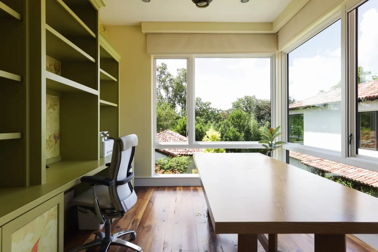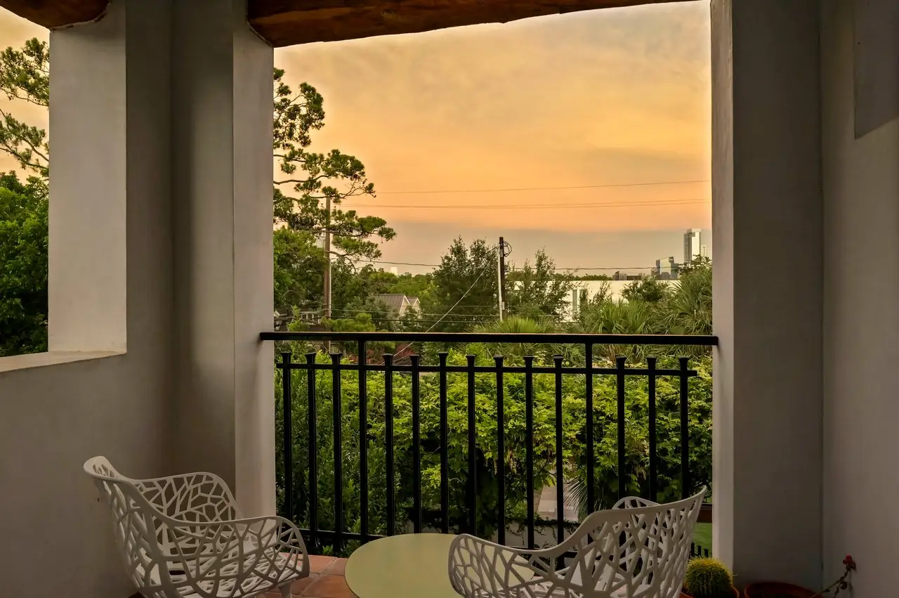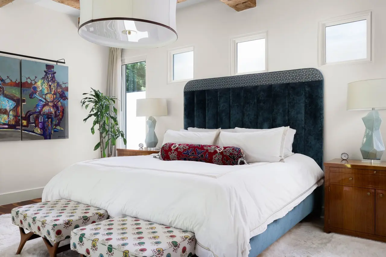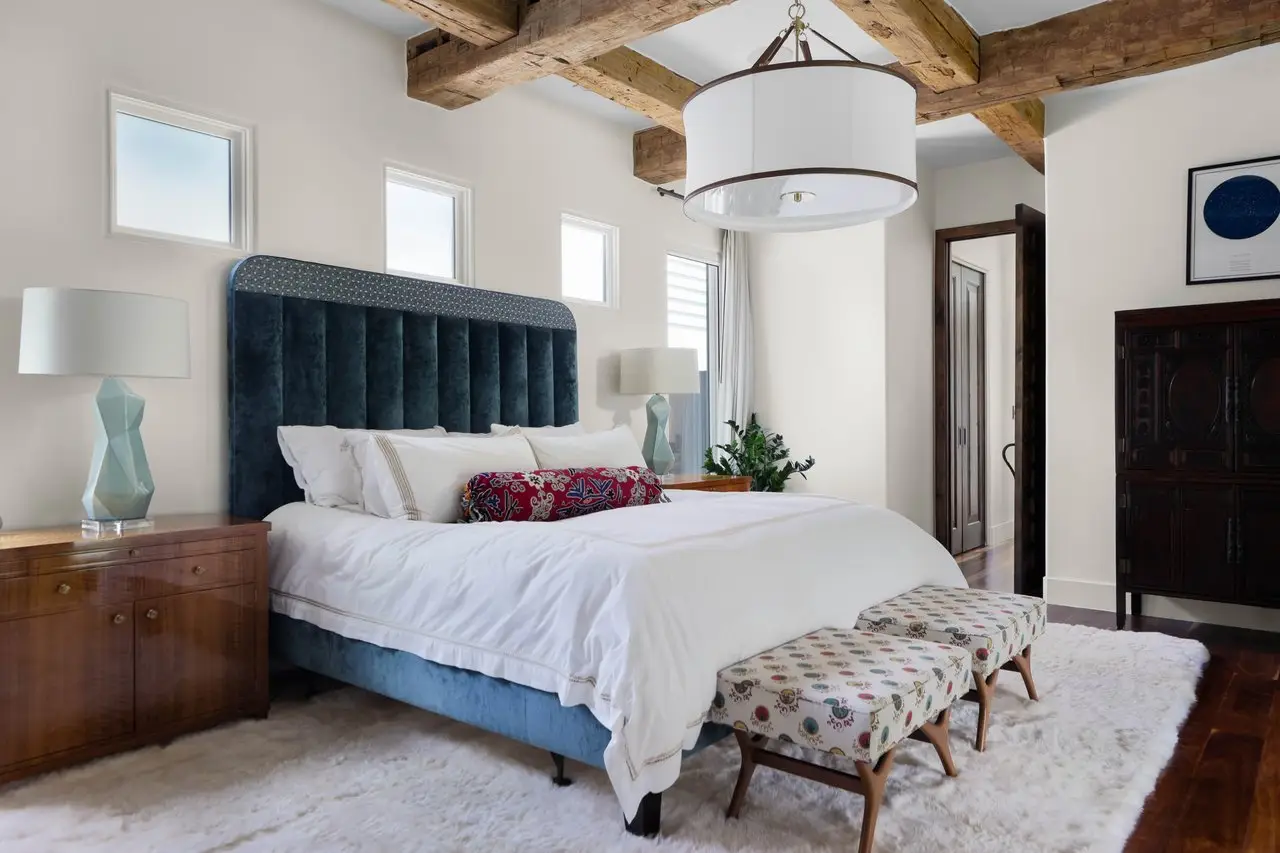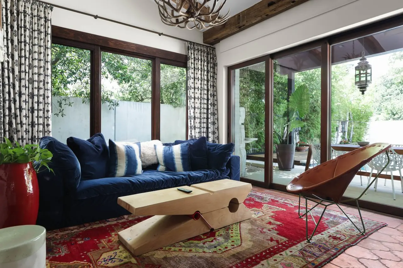 Magnificent Spanish Colonial Revival-Style Estate in West Enfield Tucked behind a private gate on a third of an acre in the historic West Enfield Neighborhood, 1308 Meriden Lane is a striking example of Spanish Colonial Revival architecture blended with contemporary elements in one of Austin’s most iconic neighborhoods. With its LaHabra stucco exterior, clay tile roof by Claymex, and multiple landscaped courtyards, this five-bedroom, five-and-a-half-bath estate offers timeless design and resort-style living just minutes from downtown. A winding entry leads to the heart of the home—an artful J-shaped two-story residence connected by a showstopping glass bridge made of Portella steel. Nearly every room is designed with views and access to the outdoors, offering a seamless transition between indoor elegance and al fresco ease. A dramatic front courtyard invites lounging and dining beneath the gas lanterns, surrounded by two hand-carved Texas Walnut limestone fountains and lush, colorful landscaping. Inside, the home reflects a thoughtful interplay of natural light, texture, and craftsmanship. Historic, reclaimed hand-hewn beams, antique and found lighting, and handcrafted details like the oversized carved stone fireplace and Wendel Brousard's custom primary bedroom door add depth and warmth to every space. The floors are layered with Old Growth Gunstock Walnut and Saltillo tile, with vibrant Mexican tile risers and caustic tile on the primary patio. Five dedicated living areas, including an upper-level lounge wrapped in hand-painted wallpaper, offer flexibility for both retreat and entertaining. In the primary suite, a spa-like bathroom opens to an indoor/outdoor shower, while the cabana pool house features a custom bar and vintage church window over 100 years old, blending history with modern luxury. Additional highlights include a rare glass-enclosed, backlit garage with room for 4–6 vehicles, an auto lift, and custom steel and wood detailing throughout—from the front door to the patio curtain rods (and a subterranean shelter). A whole-house vacuum system runs through both the home and garage, and Thermador appliances, motorized shades, Farrow & Ball paint, and custom decorative windows elevate the finish-out. With its sun-soaked Ipe wood pool deck, hidden storage areas, Rondel-stained glass windows, and sophisticated yet inviting style, 1308 Meriden Lane is a masterclass in curated living, offering the best of Old Austin charm and modern refinement.