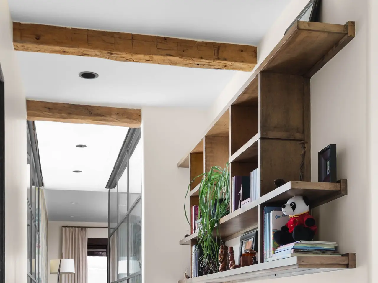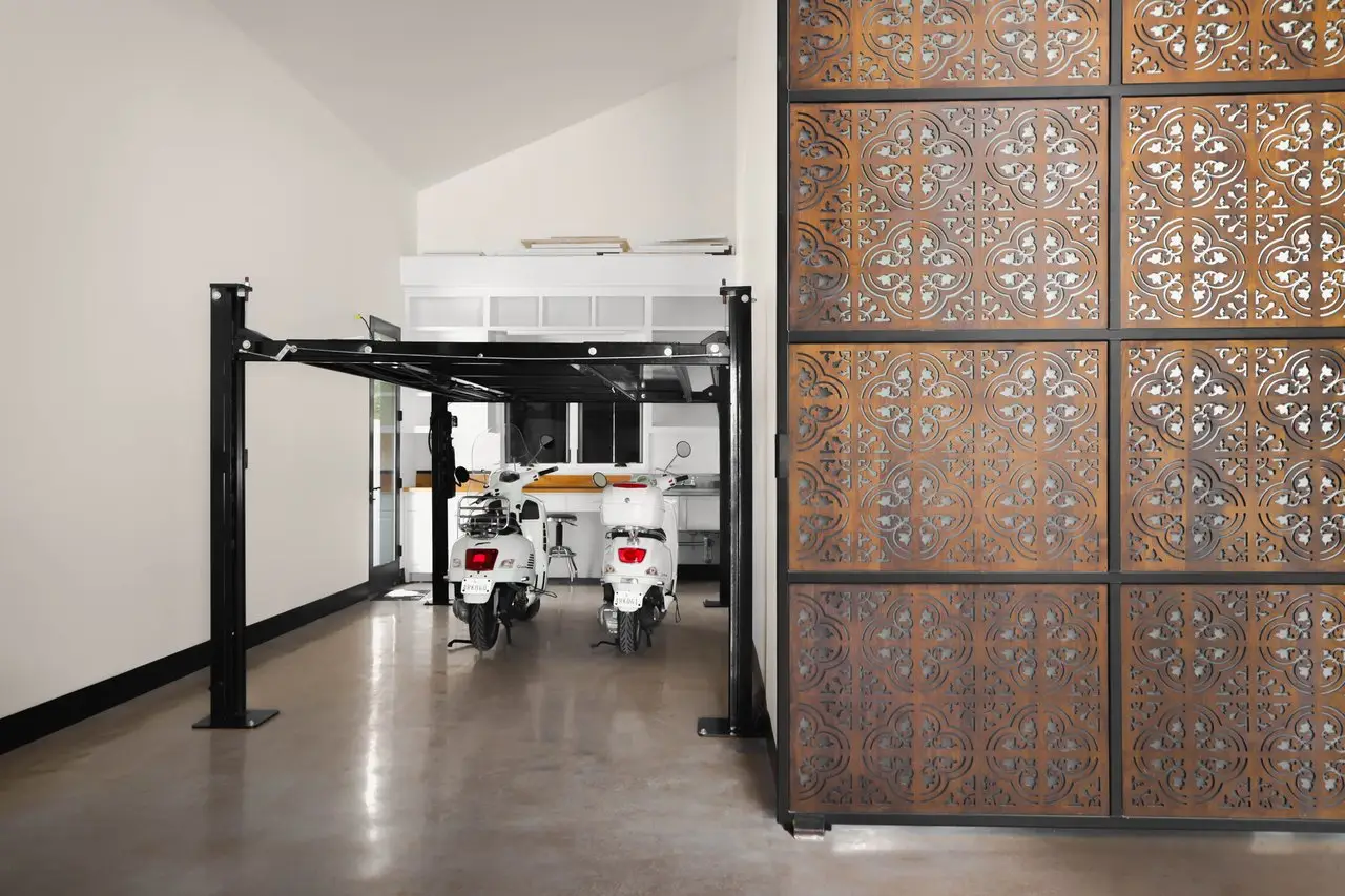 - Glass-enclosed, backlit garage