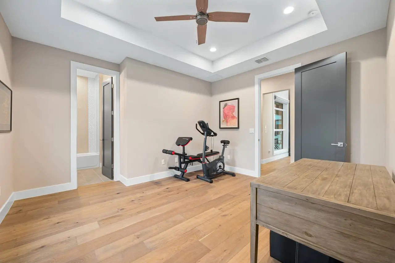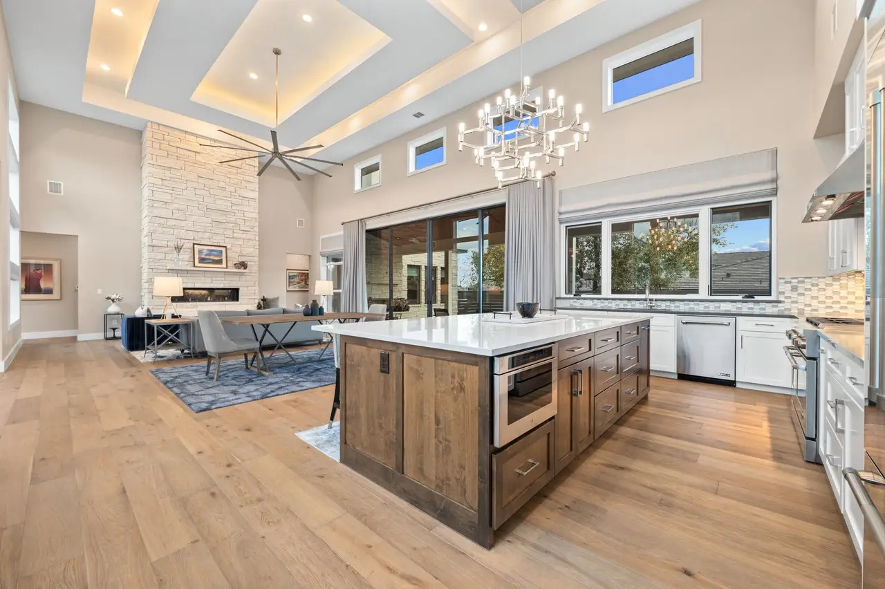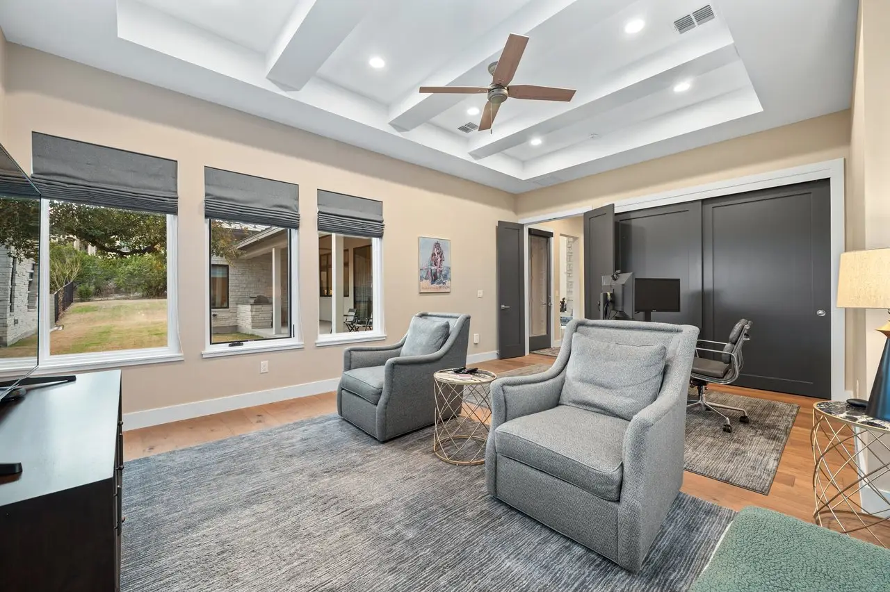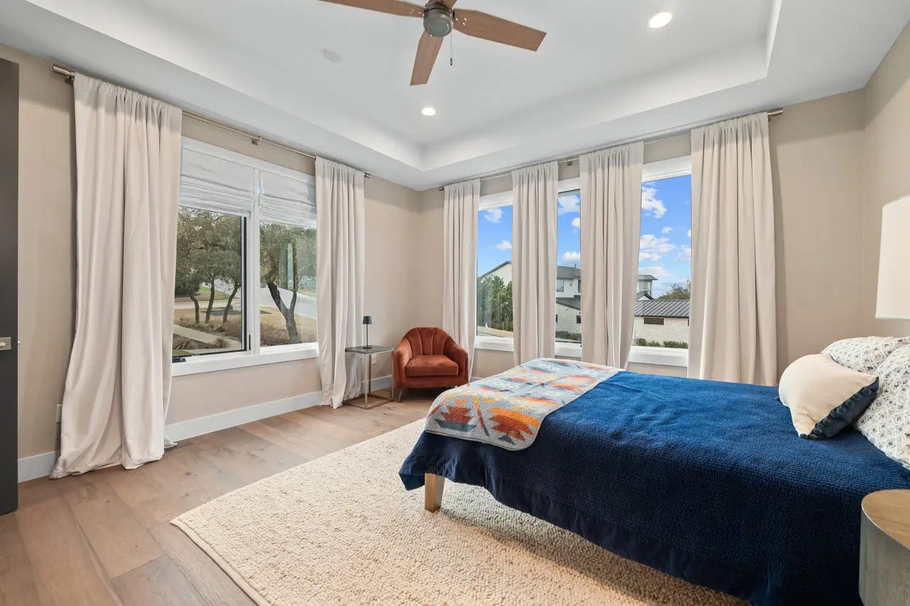 Nestled in the highly sought after Serene Hills community, this stunning custom home combines modern elegance with timeless design. Step inside to a bright and open floor plan, where the spacious great room impresses with a soaring tray ceiling accented by indirect lighting, a remote-start fireplace, and expansive sliding doors that open seamlessly to the outdoor living area. Perfect for both entertaining and everyday relaxation, the backyard retreat features a cozy fireplace, built-in outdoor kitchen with gas grill and sink, and peaceful views of the private yard. The chef’s kitchen is a true centerpiece, showcasing an oversized island with breakfast bar, stainless steel appliances, gas cooktop with pot filler, double oven, microwave, walk-in pantry, and extensive cabinetry and counter space, designed to delight both casual cooks and culinary enthusiasts. The primary suite offers a private escape with direct patio access, a spa-like bath featuring dual vanities, jetted tub, walk-in shower with dual shower-heads, and a generous walk-in closet. Each secondary bedroom includes its own ensuite bath and walk-in closet for optimal comfort and privacy. French doors open to a versatile second living area, ideal for relaxation or creative transformation. Additional highlights include rich wood and tile flooring throughout (no carpet), two tankless water heaters, and an oversized three-car garage with soaring ceilings, glass doors, and an electric car charger. The home is well-maintained. The membrane portion of the roof replaced in August 2025. Living in Serene Hills means access to neighborhood amenities including hiking and biking trails, La Campana Park built around a majestic oak. Ideally located near exemplary Lake Travis schools, premier golf courses, the Lakeway Airpark, and the sparkling waters of Lake Travis, this home offers the perfect balance of luxury living and outdoor adventure.