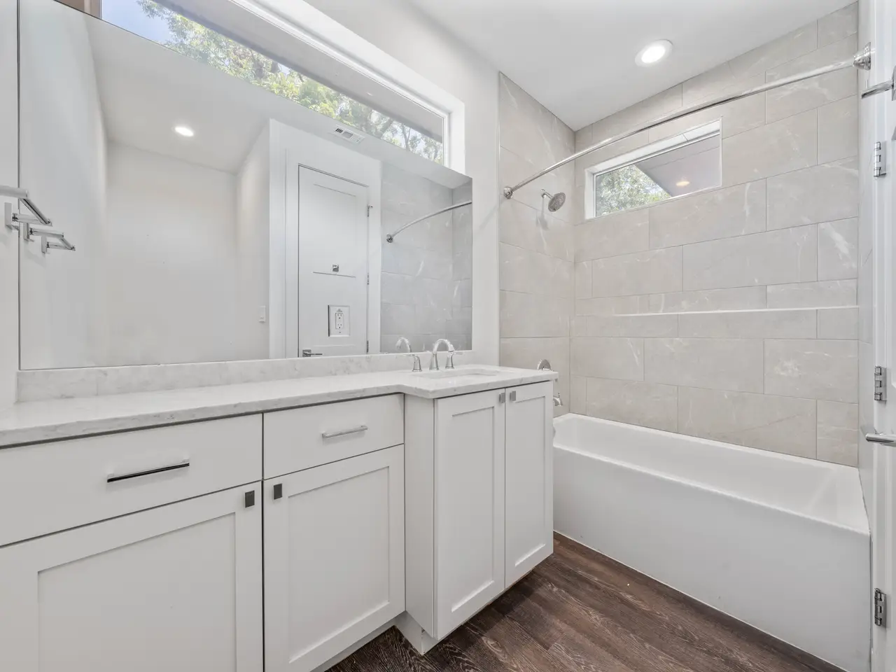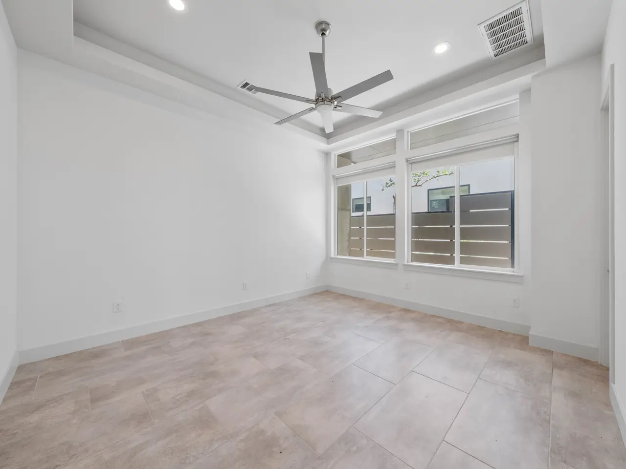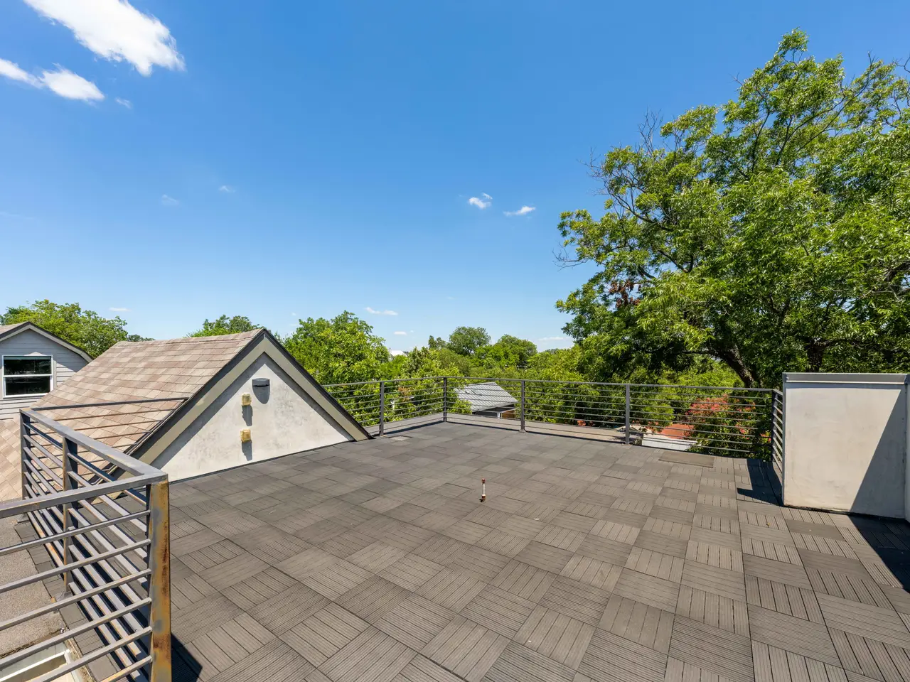 Modern luxury in the heart of East Austin! This 3 bed, 2.5 bath architectural gem offers 2,096 square feet of stylish living space, high ceilings, floor to ceiling windows, and an open-concept design. The gourmet kitchen features a waterfall island, custom cabinetry and premium appliances. A designer glass tile backsplash and sophisticated lighting solutions create an atmosphere of refined modernity, while the adjoining dining area, crowned with a crystal pendant chandelier, offers the perfect setting for elegant entertaining. The primary suite stuns with a spa-style wet room, marble double vanity, and oversized walk-in closet. Upstairs there are 2 bedrooms with views of downtown, a full bathroom, plus additional flex area that can be used as office space or additional living area. This home has multiple outdoor living spaces where you can unwind privately in the lush courtyard, under the covered patios, or take the spiral staircase up to the third story terrace for the beautiful panoramic views of the Austin skyline. The detached climate-controlled garage includes a full guest suite above (an additional 711 sqft) that is perfect for rental income, multigenerational living, or a private home office. This vibrant East Austin address sits in an educational hub, just moments away from the historical Houston-Tilloston University and minutes from the University of Texas at Austin campus. Walkable to highly rated shops, restaurants, coffee, and parks. A rare blend of elegance, flexibility, and location - don't miss this one! Property sold “As-is.” Buyer and/or buyer’s agent responsible for verifying all pertinent information deemed relevant by the prospective buyer, including but not limited to square footage, acreage, utilities, taxes, zoning, permitting, condition, school zones, HOAs, etc.
