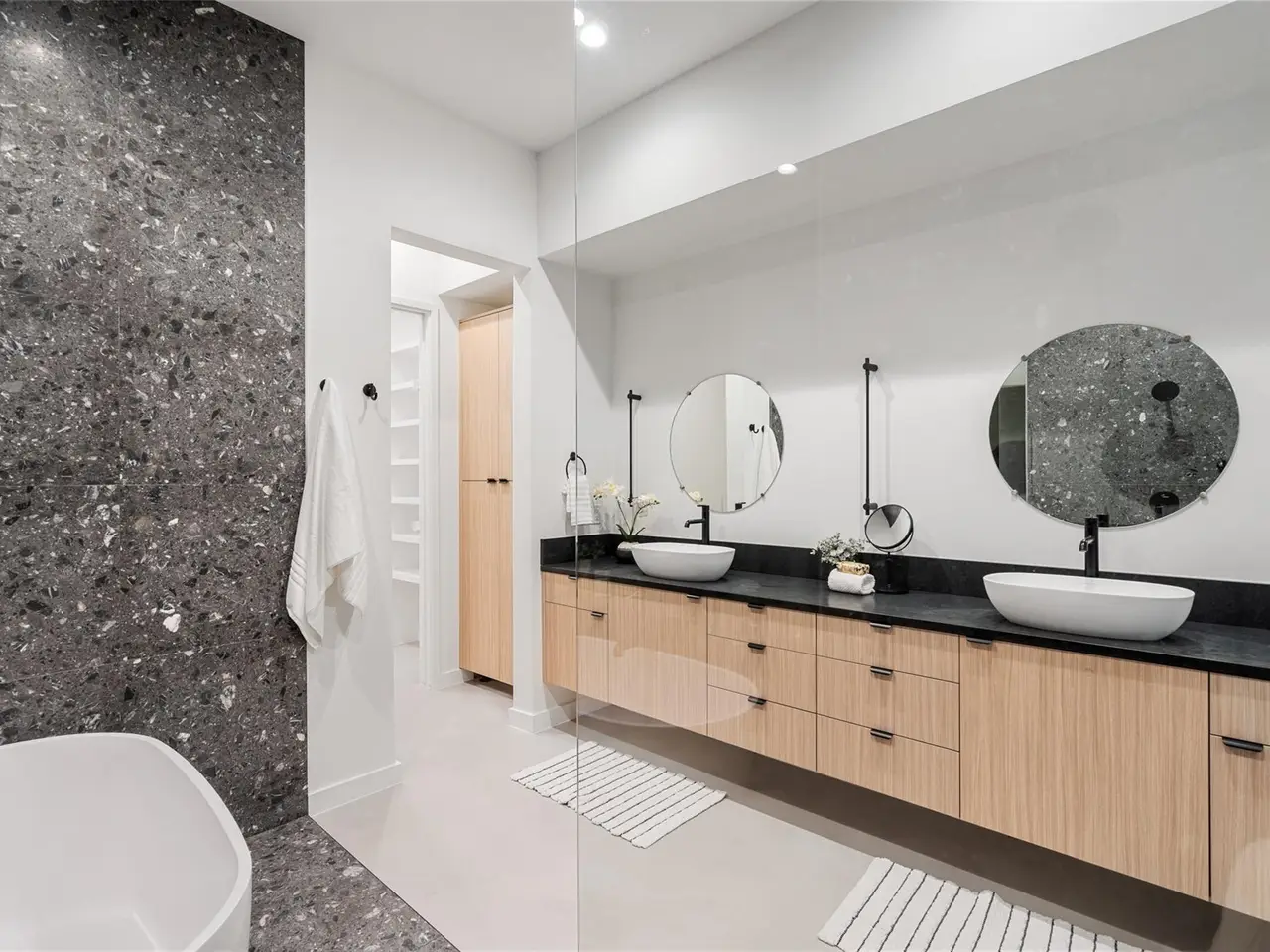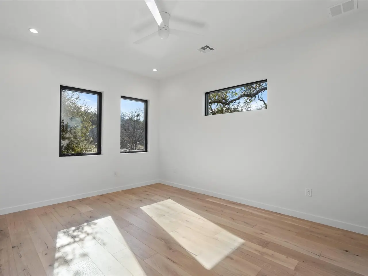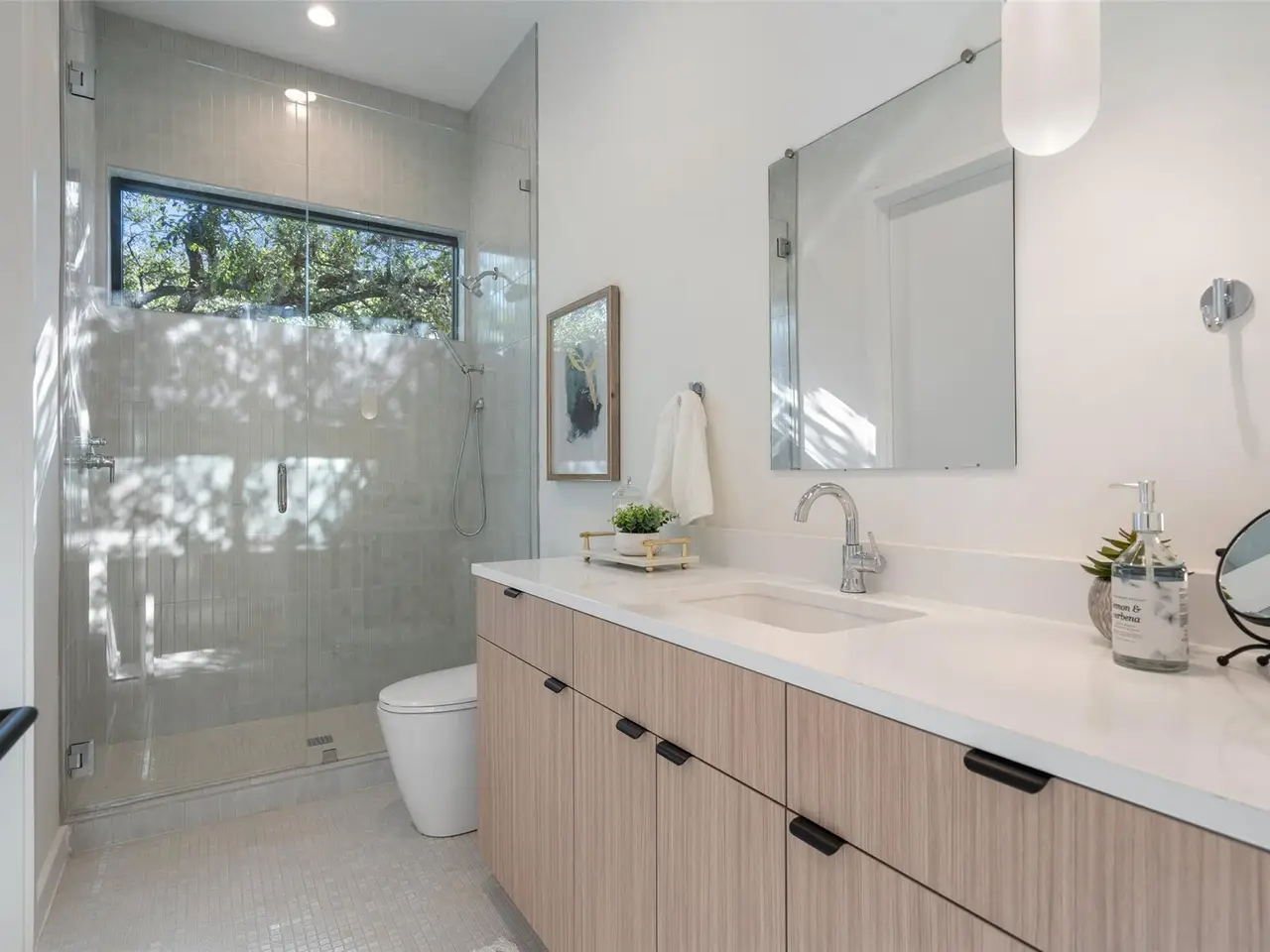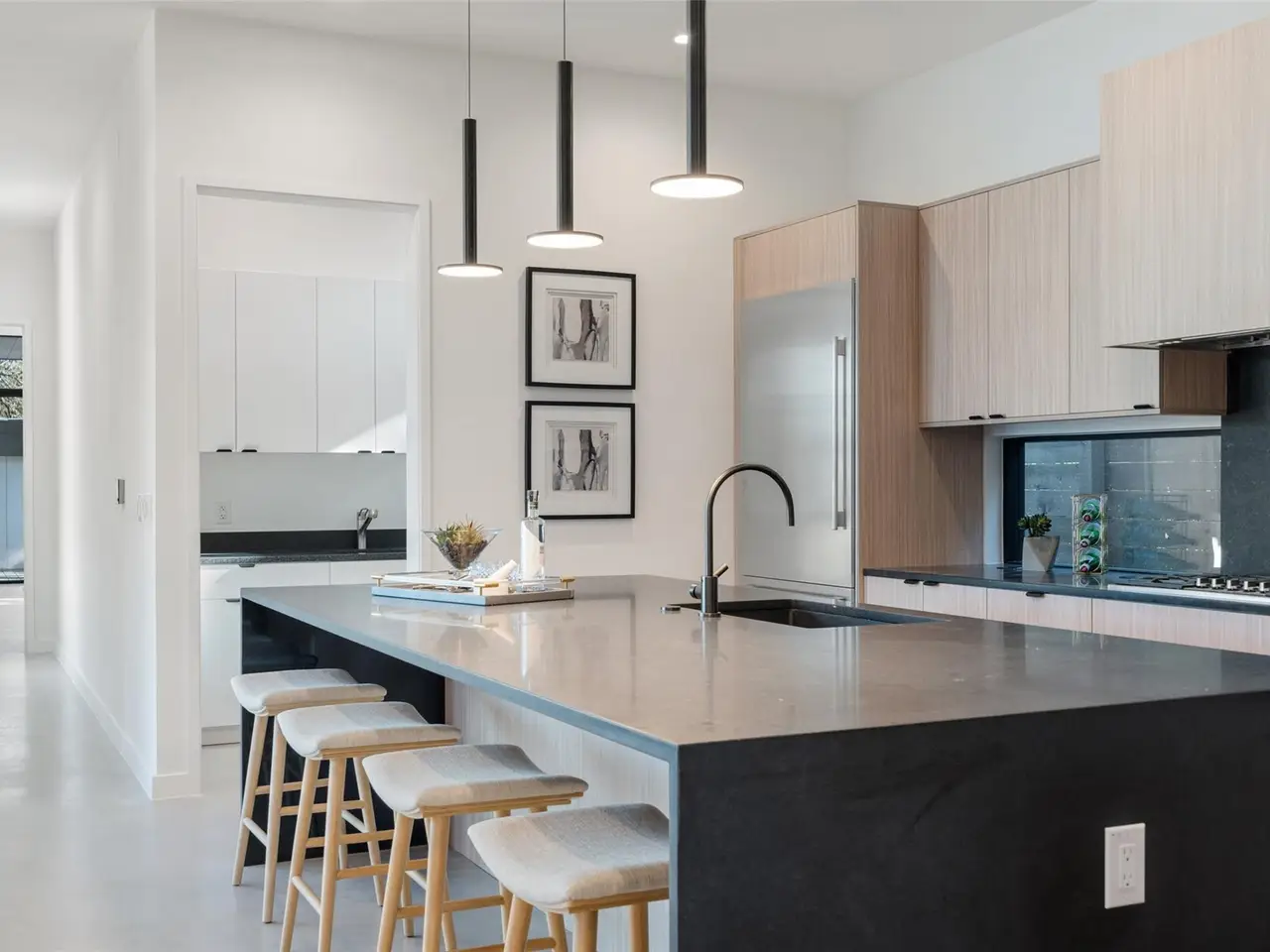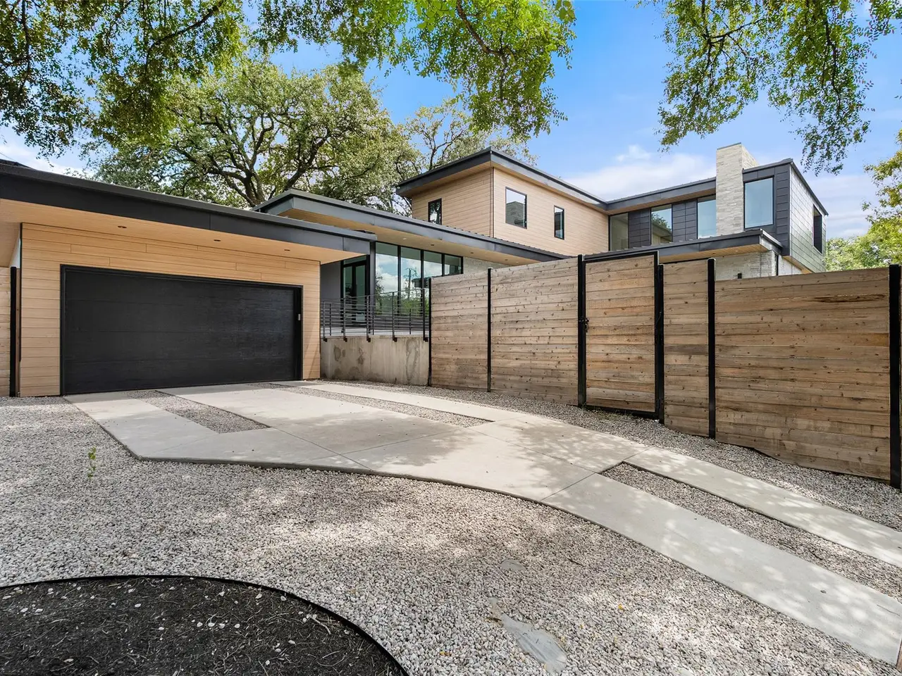 Discover a stunning modern masterpiece in the heart of Barton Hills. Located on a corner lot, this meticulously designed home boasts four spacious bedrooms, a dedicated office, and expansive living spaces tailored for relaxation and entertaining. Built in 2022 by Delve Residential (formerly Heartwood Real Estate Group), this stunning home seamlessly blends luxury and functionality. The exterior showcases a mix of high-end materials, including metal, stucco, and limestone, offering a modern yet timeless aesthetic. Inside, you'll find an impeccable combination of concrete and European Oak wood flooring that extends throughout the home, complemented by sleek granite and Caesarstone countertops. The gourmet kitchen is a chef's dream, equipped with top-of-the-line Sub-Zero, Wolf, Cove, and Thermador appliances, ensuring both style and performance. Flooded with natural light from floor-to-ceiling windows, the open floor plan is an entertainer's dream, seamlessly blending indoor and outdoor living with views of pool and private backyard. Upstairs, a massive den offers a versatile retreat, perfect for a media room, playroom, or secondary living space. Every detail, from the detached two-car garage to the carefully curated finishes, has been crafted with modern living in mind. Located minutes from Downtown, Barton Springs, Zilker Park, and Austin's annual ACL Festival, this home epitomizes luxury living in one of the city's most vibrant neighborhoods.