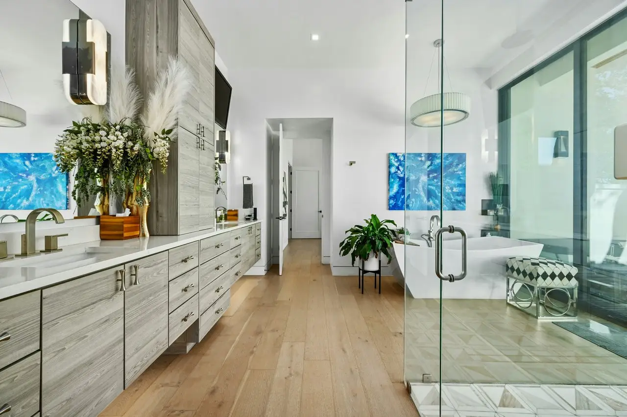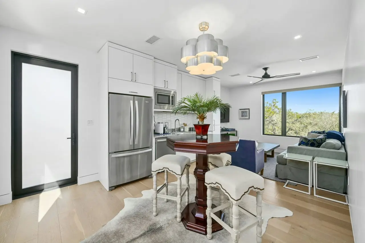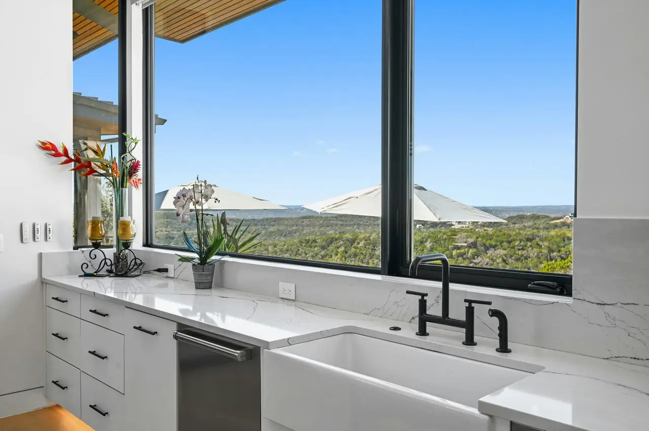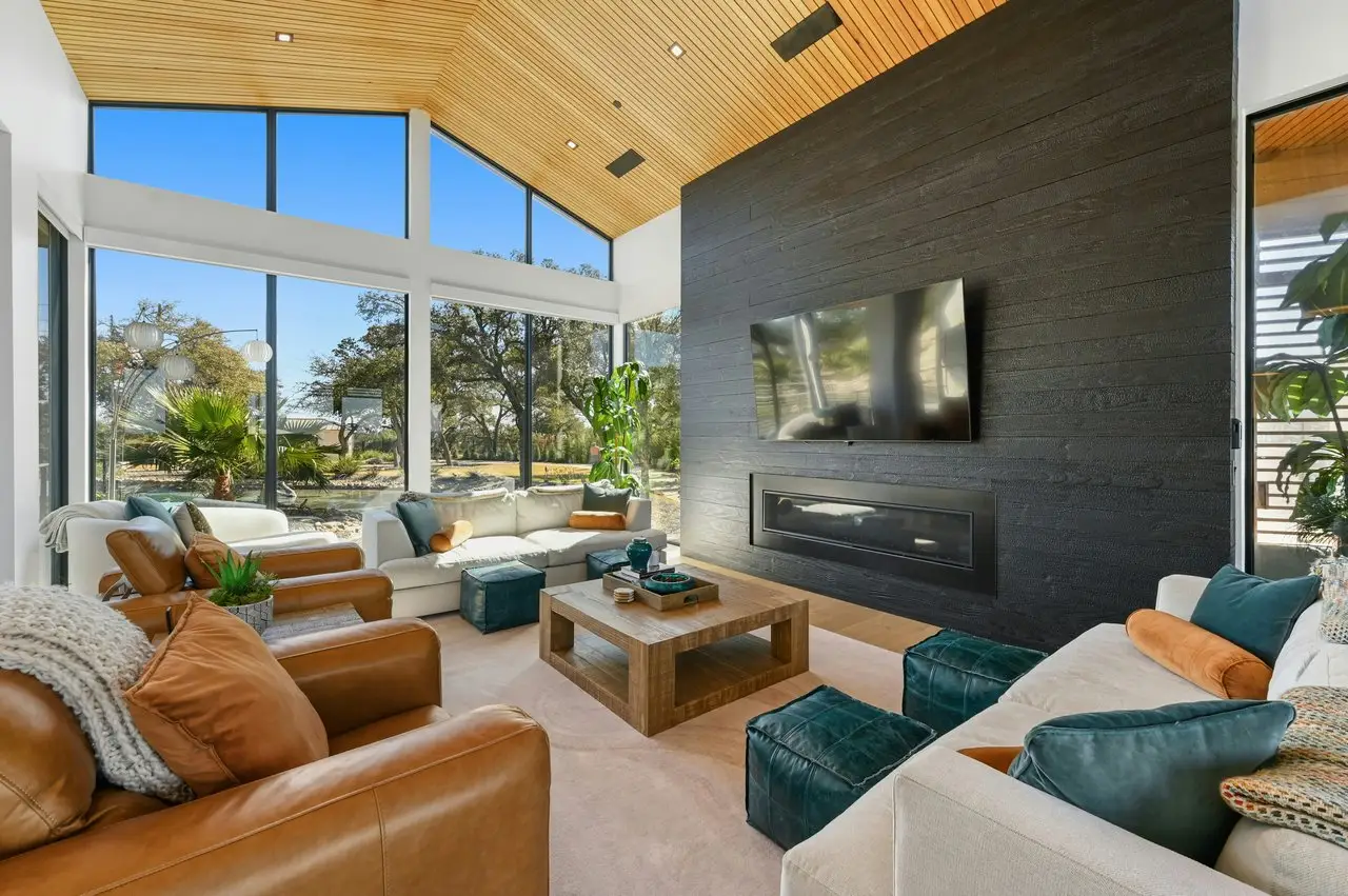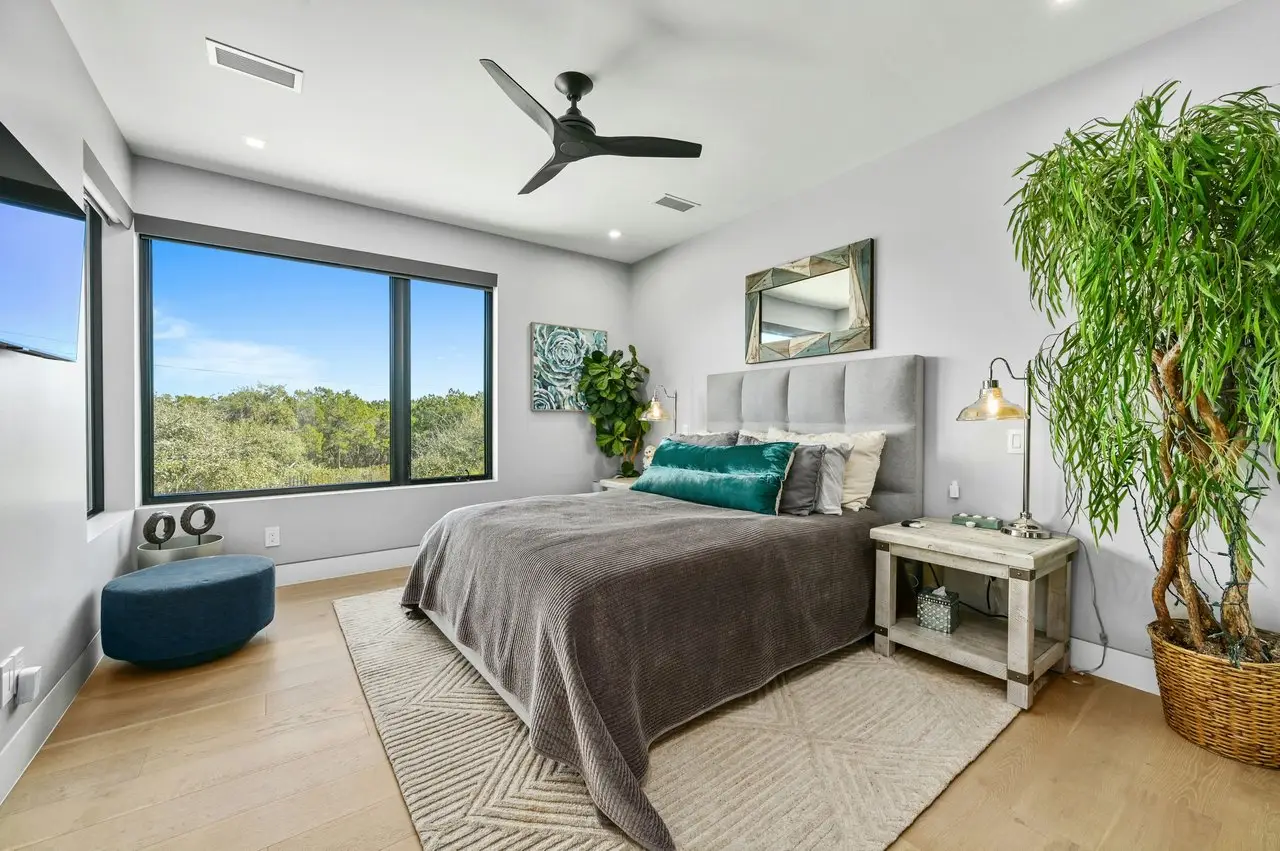 Perched atop the rolling hills just off City Park Road, 8209 Two Coves Drive is a newly constructed contemporary masterpiece that seamlessly blends striking architectural elements with the natural beauty of the Texas Hill Country. Plus, with a 2024 tax rate of just 1.53% (buyer to verify), this estate represents a rare opportunity to own a state-of-the-art home in a coveted location with some of the lowest property taxes in Austin. A privately gated driveway winds through the lush landscape, leading to a dramatic front entry defined by an expansive mote and waterfall. A modern bridge guides visitors over the tranquil waters toward the residence, setting the stage for the home's contemporary yet serene ambiance. Every detail of the front yard has been meticulously designed with low-maintenance plantings, allowing the home to harmonize effortlessly with its surroundings. Once inside, walls of glass frame breathtaking views, creating an immersive indoor-outdoor living experience. This 4-bedroom, 4-bathroom residence, with two additional powder rooms, offers luxurious living spaces, including a dedicated office overlooking the treetop views maximizing natural light and flow. The resort-style amenities continue outside, where ample covered patios, an outdoor kitchen, a waterfall-edge pool, and a hot tub provide the ultimate setting for entertaining against the backdrop of epic Texas sunsets. Designed with both luxury and functionality in mind, this home is equipped with cutting-edge technology and sustainability features that set it apart. A Generac whole house generator ensures uninterrupted power, while a solar panel system adds an eco-conscious touch to energy consumption. The property benefits from its own well for both potable water and irrigation, paired with a 26,000-gallon rainwater collection system that supports sustainable living. A whole-house reverse osmosis system with water softening and UV light sterilization ensures the highest water quality throughout the home. The exterior construction is as refined as the interiors, boasting a mix of stucco, stone, and metal cladding, complemented by Nichiha architectural siding accents that replicate the warmth of weathered wood while offering superior durability. A standing-seam metal roof enhances the home's sleek aesthetic while providing long-lasting protection against the elements. Beyond the main residence, the property extends its offerings with a casita that currently serves as an office, plus an impressive, detached flex space, complete with a golf simulator and gym, making it an oasis for both relaxation and recreation. Car enthusiasts will appreciate the 3-car garage, providing ample space for vehicles and storage. Integrated Control4 home automation manages the lighting and AV systems in key living areas, while six strategically placed security cameras offer peace of mind. Whether enjoying the panoramic Hill Country views from the outdoor living spaces, indulging in the luxury amenities, or embracing the home's eco-friendly innovations, 8209 Two Coves Drive is a one-of-a-kind modern retreat designed for the most discerning homeowner.