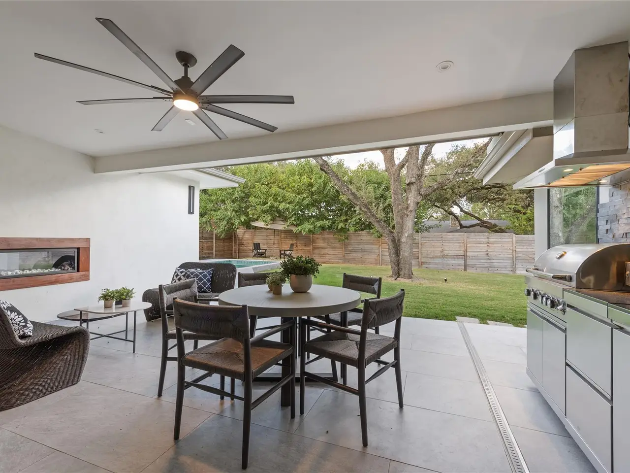Open Sat 12-2, Sun 2-4! 4000 Greystone sparkles and shines brightly after a thoughtful, thorough renovation. From the heated swimming pool with sitting shelf to the covered outdoor patio with kitchenette and fireplace, this 5 bedroom residence displays quality inside and out. Open concept kitchen and living with oversized kitchen island, Gaggenau appliances, double dishwashers and 6' beverage fridge create an entertainer's dream. Three bedrooms downstairs + an office make for almost 1-level living. Spa primary bath has s steam shower, heated floors & towel rack, & direct access to the pool out back.