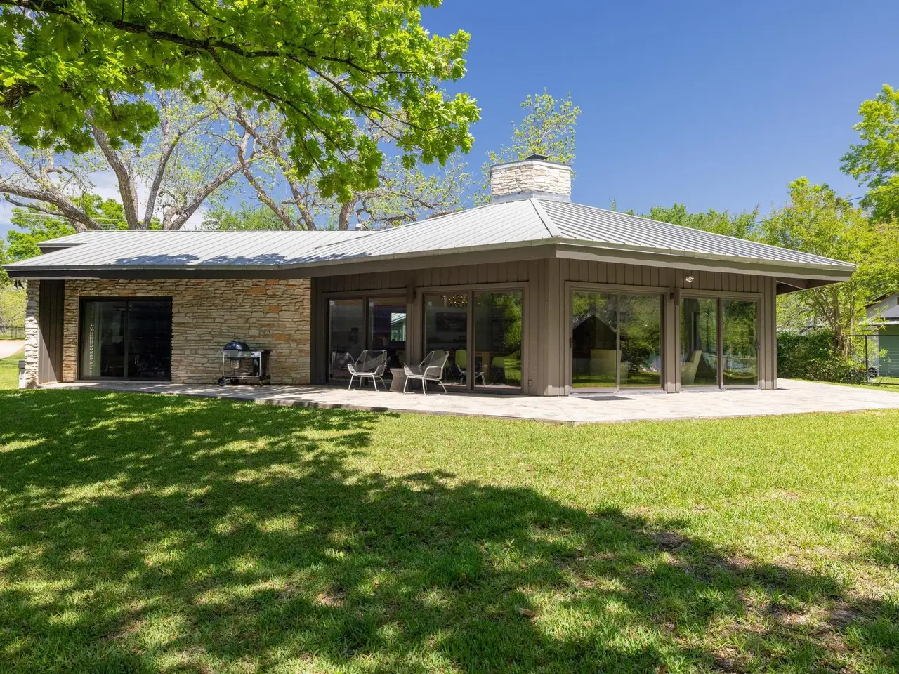 Set on one of the most iconic stretches of Lake Austin, 2401 Manana St. is a rare midcentury retreat that effortlessly balances architectural pedigree with laid-back Lake Austin living. Inspired by Frank Lloyd Wright's organic aesthetic, the rotunda-style home features dramatic yet welcoming vaulted ceilings, warm teak cabinetry in the updated kitchen, and sliding glass doors throughout the entire living and dining space that opens to the expansive, flat lawn. Shaded by a canopy of mature oak trees and two producing heritage pecan trees, the lawn leads you gently toward +/- 100' of private waterfront, where iconic oak trees frame the view. The calm waters here are ideal for water skiing, wakeboarding, and wake surfing--one of the best stretches on the lake for smooth conditions. The main house includes three bedrooms and two full bathrooms, while a detached two-car garage and guest suite offers its own living space, bedroom, and bathroom. On the water, a rare, grandfathered boathouse includes a full bathroom and lounge outfitted with a kitchenette, and the recently updated two-story boat dock features ipe decking, a hydraulic boat lift, touchless boat cover, shaded lounging and sunbathing areas, and even a jump gate into the lake. The property also boasts a full-yard sprinkler system and an updated water purification system. Located on a coveted neighborhood street, this home is within walking distance of Ski Shores Café (but just far enough to avoid the crowds), close to the natural beauty of Emma Long Park and all its recreational offerings, and benefits from a private neighborhood fireworks show on the Fourth of July. Tax and assessed values are estimates for illustration purposes only. All figures should be independently verified.