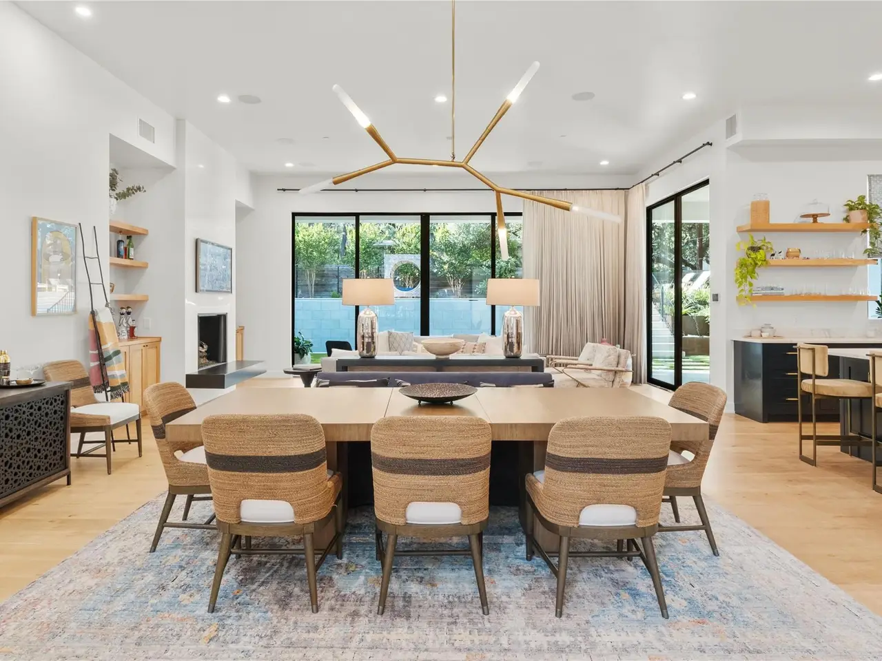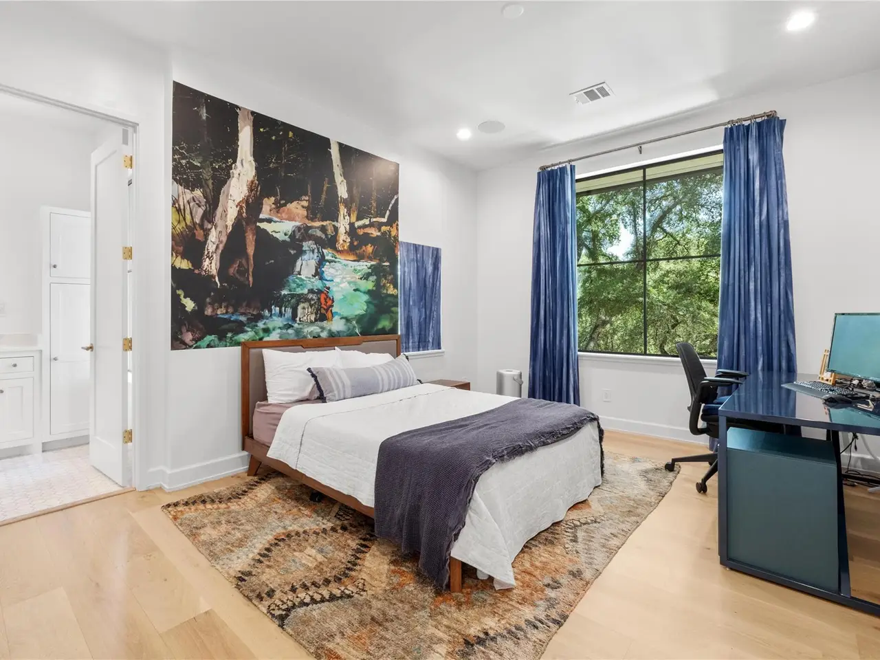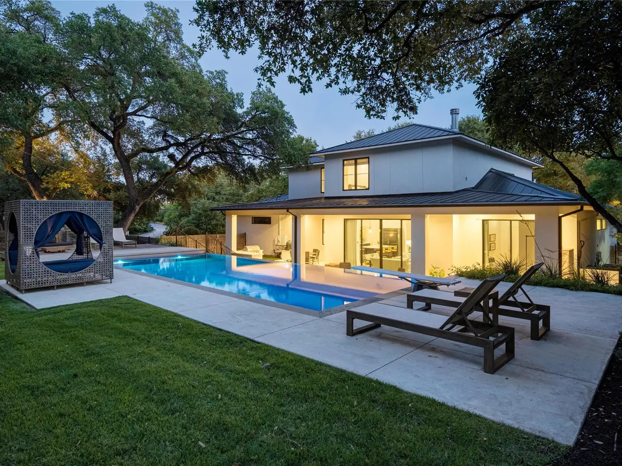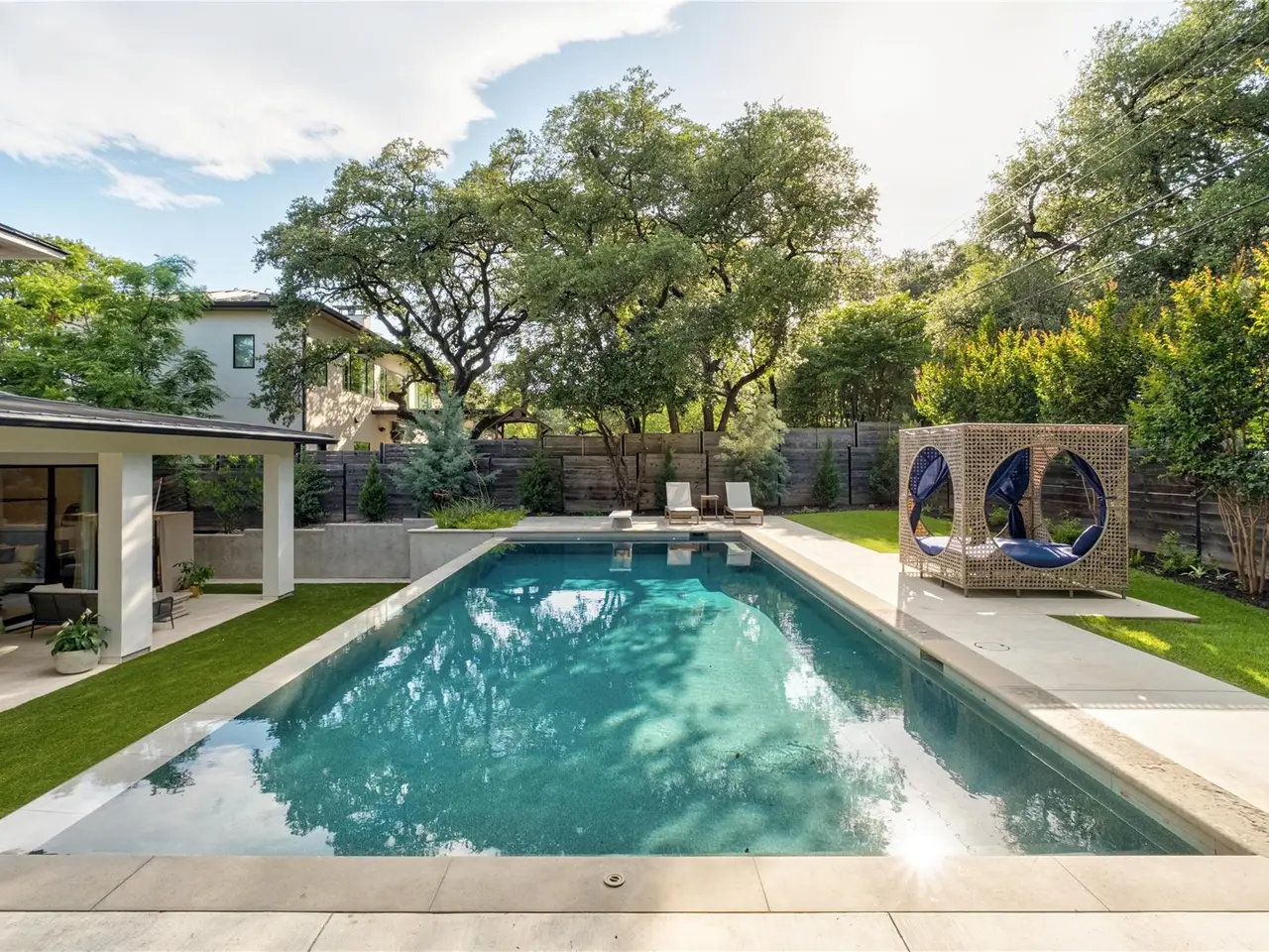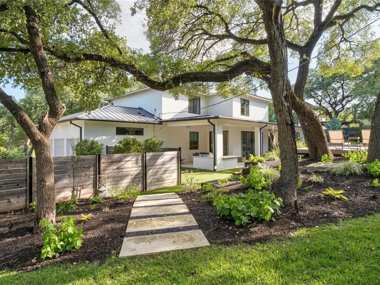 Step into refined comfort in this stunning 4-bed, 4.5-bath home with 4,486 sq ft of beautifully designed living space on a .47-acre corner lot. A blend of contemporary elegance and inviting warmth, this exceptional residence was featured on the cover of LUXE Interiors + Design and received a 12-page editorial in 2021. The open-concept great room is the heart of the home, seamlessly connecting living, kitchen, and dining areas. Custom caned-door cabinets flank the fireplace, while a cozy window seat nestles beneath the stairs. A main-level study with built-ins offers an ideal space for work or quiet focus. The main-level primary suite provides convenience and privacy, while the upper level features three additional bedrooms--each with its own full bath--and a secondary living area ideal for media or playroom. One bedroom includes a custom Murphy bed, easily converting the space from a gym to a guest suite. Designed with a sophisticated yet welcoming palette, the home showcases rich textures, statement wallpaper in key rooms, and striking lighting, including a dramatic pendant by Australian designer Christopher Boots. Custom draperies and window treatments complete the look. The backyard is built for entertaining with an outdoor kitchen, a heated 9-ft-deep pool with diving board by Modern Pools, and a putting green. A Control4 system with integrated sound and cameras, plus a fire sprinkler system, add modern convenience and safety. The 3-car garage and meticulous design throughout make this home truly one-of-a-kind. Located in the acclaimed Eanes ISD, this home is walkable to Rollingwood Park and Trader Joe's, and just minutes from Zilker Park and downtown Austin, offering the perfect balance of tranquility and city life.