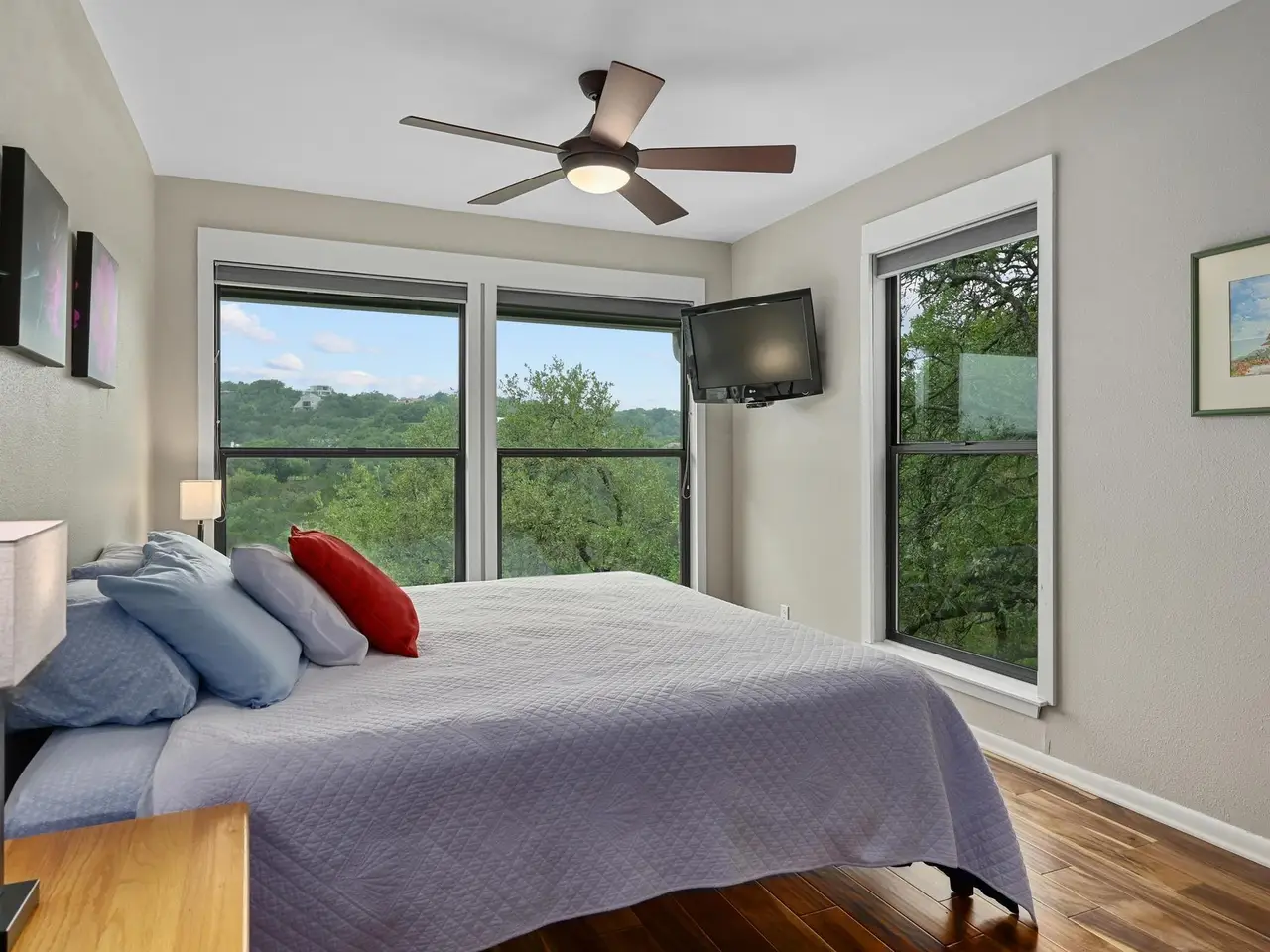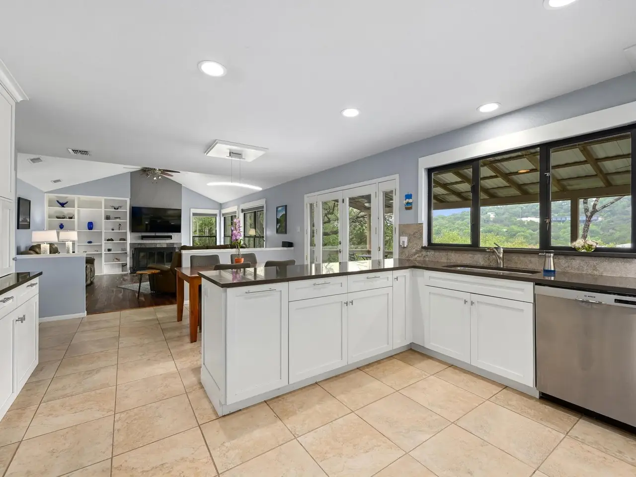 *4-car garage + Views* Timeless Westlake Hills Retreat with Stunning Canyon Views. Nestled on a serene and private .54-acre lot in the coveted Westlake Hills, this beautifully maintained residence blends classic charm with thoughtful updates throughout. Located on a quiet cul-de-sac and backing to lush Hill Country, the home offers over 900 square feet of partially covered outdoor living spaces, with sweeping canyon views - a true retreat just minutes from downtown Austin. A rare 4-car garage space provides exceptional storage and convenience. One of the garages is air conditioned to become a studio or workshop. Inside, you'll find four spacious bedrooms all upstairs, along with 2.5 well-appointed bathrooms. The flexible layout features two generous living areas and two dining spaces - ideal for both gatherings and everyday comfort. The expansive kitchen opens seamlessly to the family room, creating a warm and inviting hub of the home. Outdoors, enjoy the large 8' deep sparkling pool, relaxing hot tub, and ample space to unwind in total privacy. This is Westlake living at its finest--privacy, space, and natural beauty in a premier location.