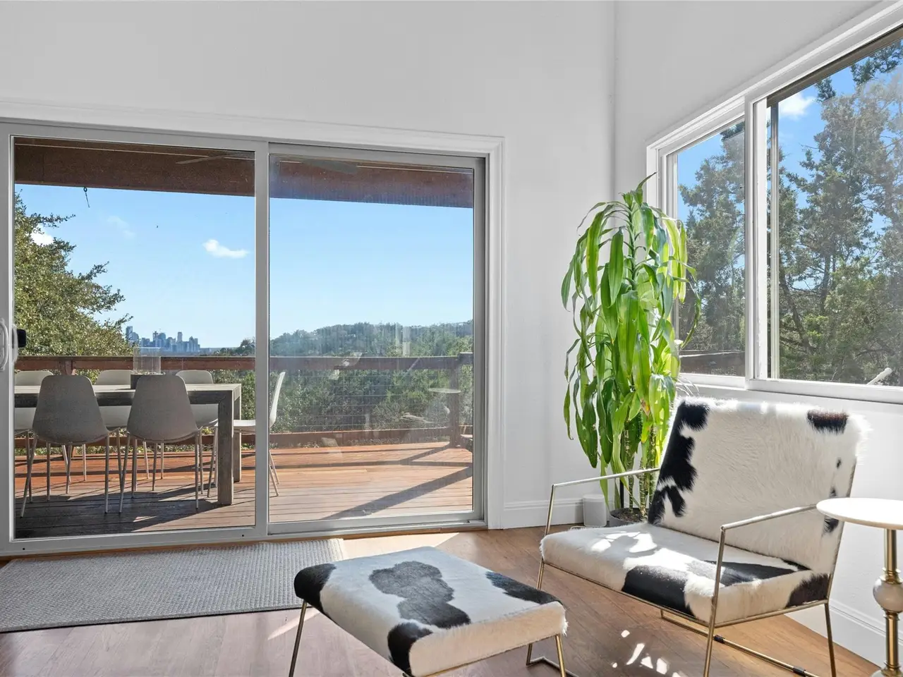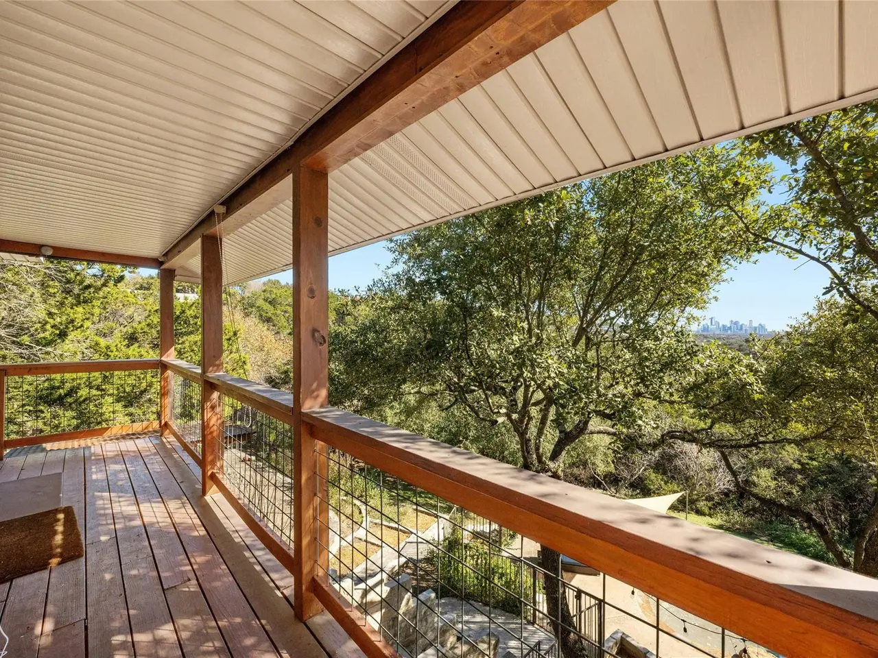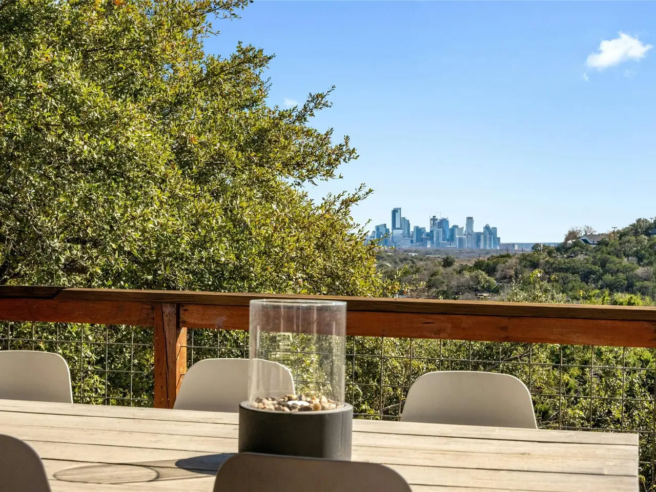Beautiful city views in private location on quiet cul de sac. Updated 1981 house with a very open floorplan and updated kitchen. Bedroom floorplan is split with 3 bedrooms on lower level. Current tenants use an upstairs space as the primary bedroom. Great outdoor entertaining with pool and sport court and expansive decks and patios.
