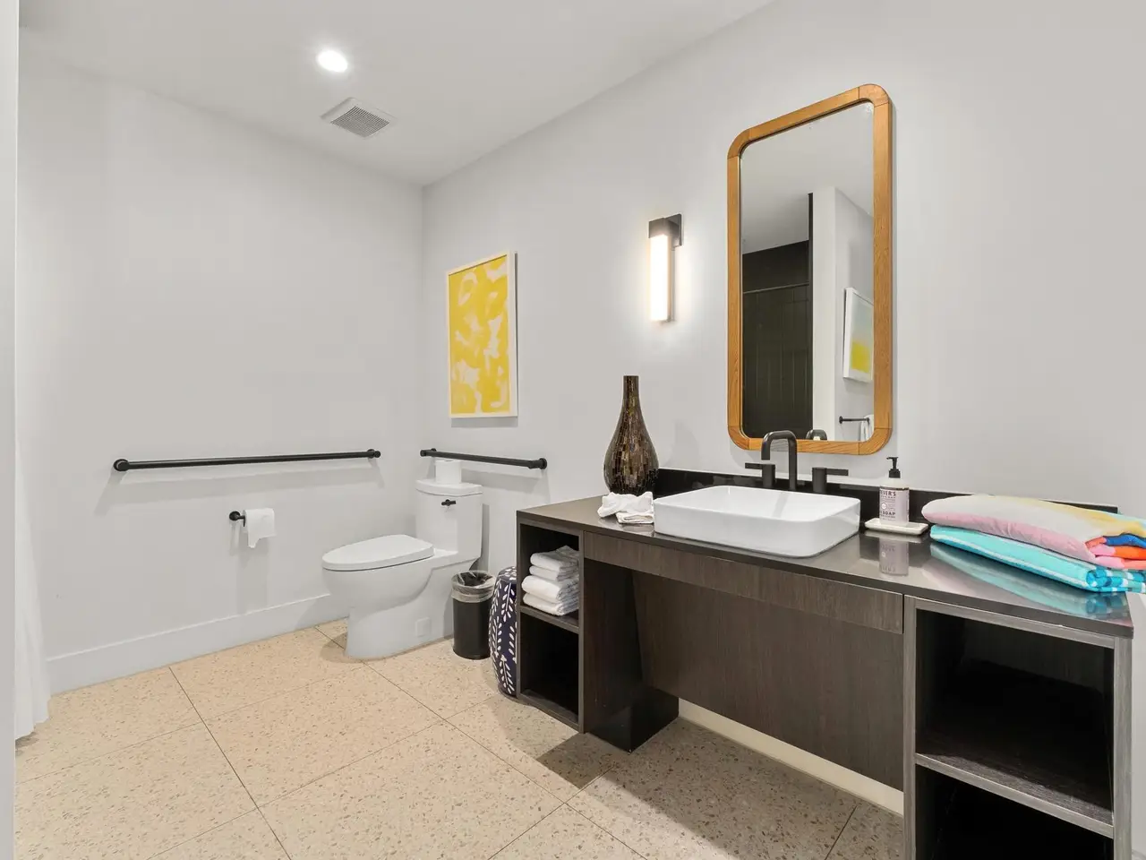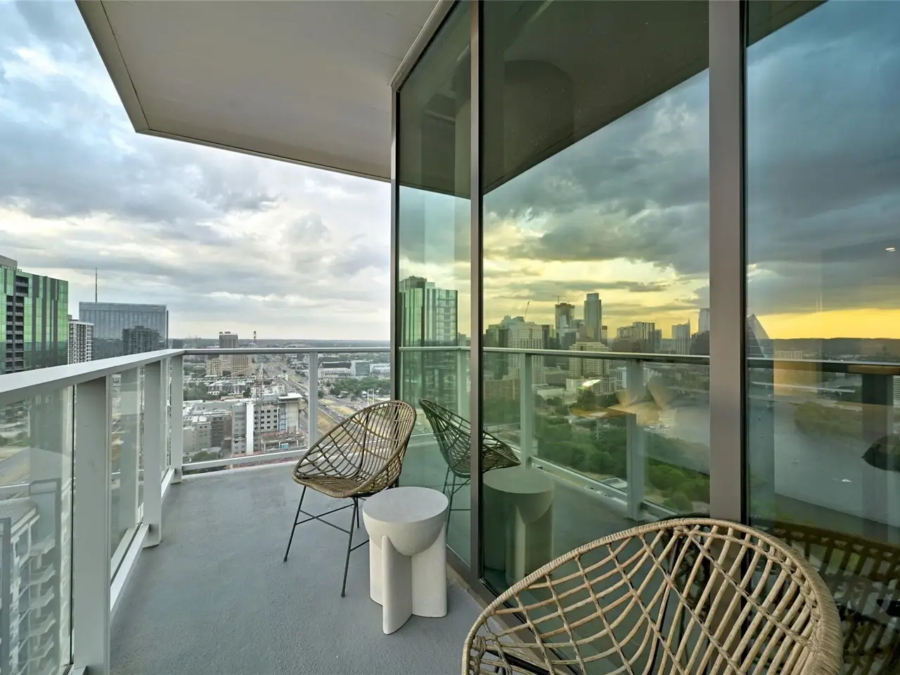 Located on the southeast corner of Natiivo Austin, Unit 1310 is a stunning ADA-compliant, two-bedroom, two-bathroom residence offering a modern and luxurious living experience. The fully furnished unit features an open-concept design with smooth-finished 10-foot ceilings and floor-to-ceiling glass doors and windows, creating a bright and airy ambiance. A private terrace provides a seamless indoor-outdoor connection with expansive views. The European-style kitchen boasts sleek cabinetry with contemporary hardware and premium European-style plumbing fixtures, perfect for both everyday living and entertaining. Stylish and turnkey, this unit exemplifies elevated urban living in the heart of Austin. Natiivo is a new concept in hospitality that offers a flexible ownership. As a high-end hotel, it allows owners the unique opportunity to reside part-time and lease their condos as a short-term rental with the service and luxury that comes with a hotel. Housekeeping and 24-hour concierge service are also available on-site. Take advantage of the full suite of luxury amenities, including a rooftop pool, a 33rd-floor clubhouse, an outdoor terrace and garden, keyless entry, a fitness center, bike storage, a dog run, and a pet washing station. *Utilities (water/electric) are metered and billed to the owner on a monthly basis. TV and internet are $47 / Month.