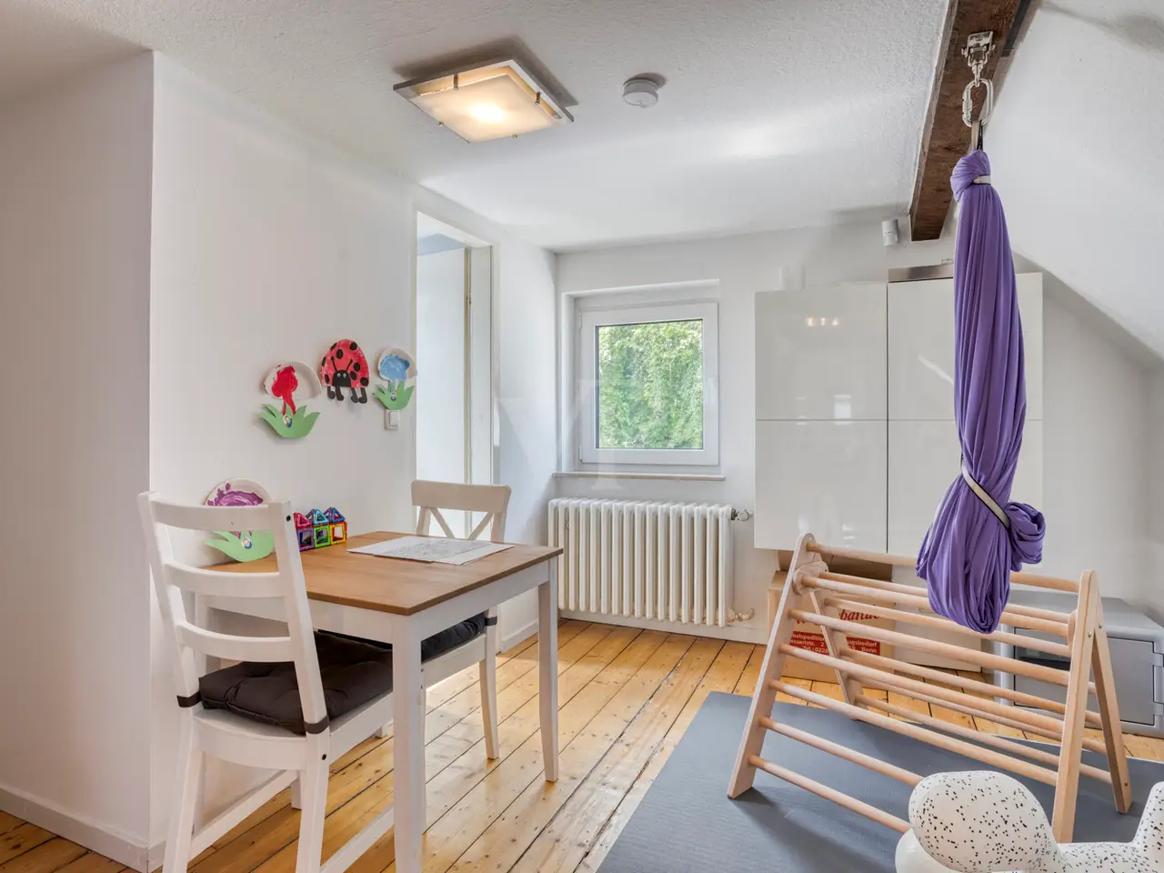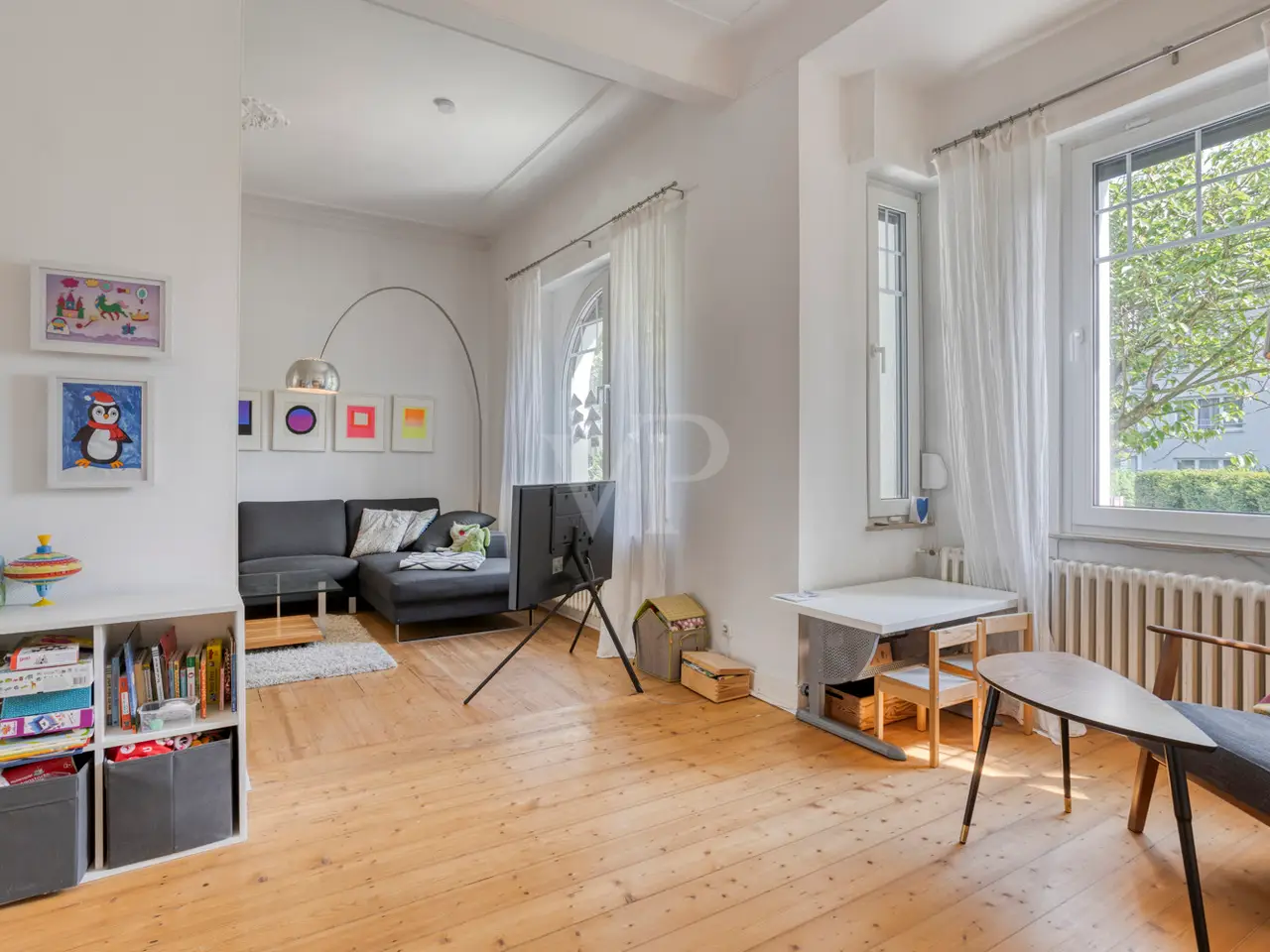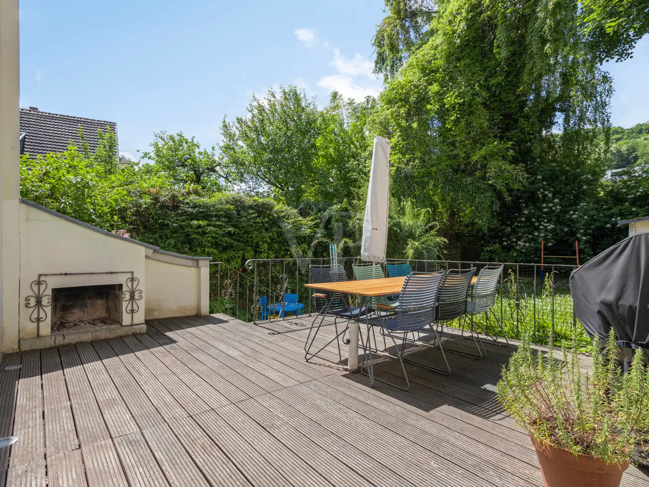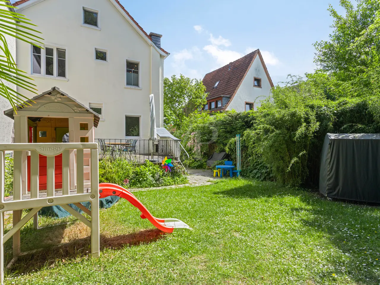 This charming detached house from the Wilhelminian era, built on one side, offers generous living space for the whole family with approx. 166 m² of living space and a total of six rooms on three levels. The 340 m² plot includes a quiet south-west-facing garden with a high level of privacy - a place you will love to return to. The sunny terrace on the garden side with a brick-built outdoor fireplace invites you to spend convivial hours with family and friends. The entrance area impresses with stylish, contemporary tiles, which were laid as part of an earlier modernization and blend harmoniously into the overall appearance of the house. The central hallway provides access to all living spaces on the first floor as well as - via the well-preserved wooden staircase - to the upper floors and the basement. The open-plan living and dining area impresses with its spaciousness and is cozily complemented by a stylish fireplace. If required, the room can be flexibly divided into two areas. The adjoining kitchen is equipped with a functional fitted kitchen, which is already included in the purchase price. A daylight guest WC is a useful addition to this level. Three well-designed rooms await you on the upper floor, including one with access to the street-facing balcony, from which you can enjoy a view of the Siebengebirge. The tastefully furnished daylight bathroom has a bathtub, a walk-in shower and a double washbasin - well thought-out and of high quality. The converted attic offers a further bedroom and a separate walk-through room, which is ideal as a work, guest or play area. An additional daylight bathroom with shower tray makes this floor a self-sufficient area for guests or teenagers. Elements typical of old buildings such as original wooden floorboards, stucco decorations and high ceilings give the house its special character. The wooden floors have been refurbished and freshly sanded in some areas of the house. Numerous windows flood all rooms with natural light and create a bright, friendly atmosphere to feel at home in. In the basement you will find a practical laundry room, two storage rooms and the boiler room. Particularly practical: the external basement staircase provides direct access from the laundry room to the garden - ideal for everyday use. The house is also in excellent technical condition: new, triple-glazed plastic windows with matching blinds, a modern front door and efficient gas central heating ensure contemporary comfort and good energy efficiency. Be inspired by the special charm of this property - your dream home can become reality here. Please contact us for further information or to arrange a viewing. Good to know: - The purchase of this property is commission-free for the buyer - there is no estate agent's commission. - An energy certificate is being processed and is available for viewing. - The property is ready for occupation from July.