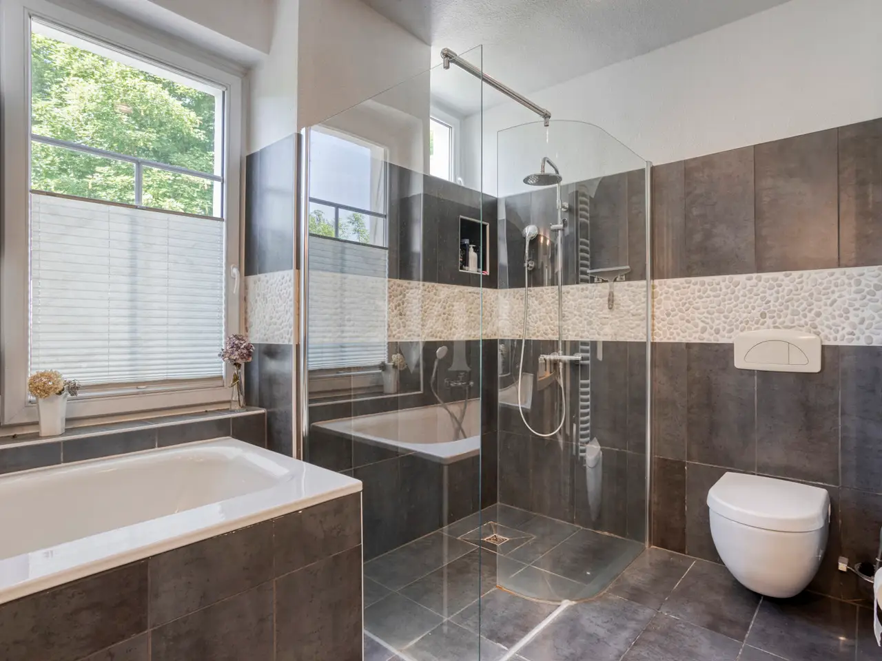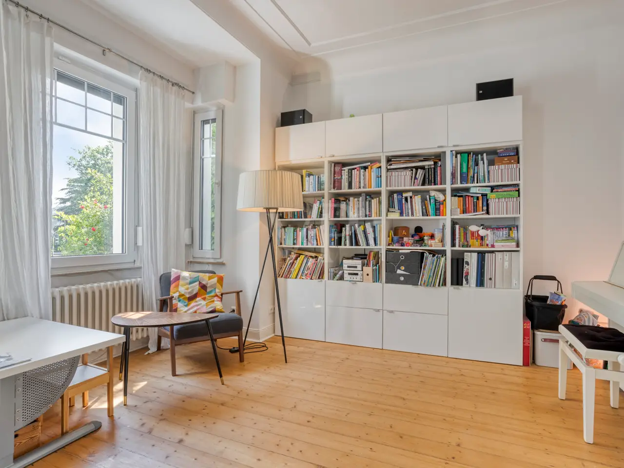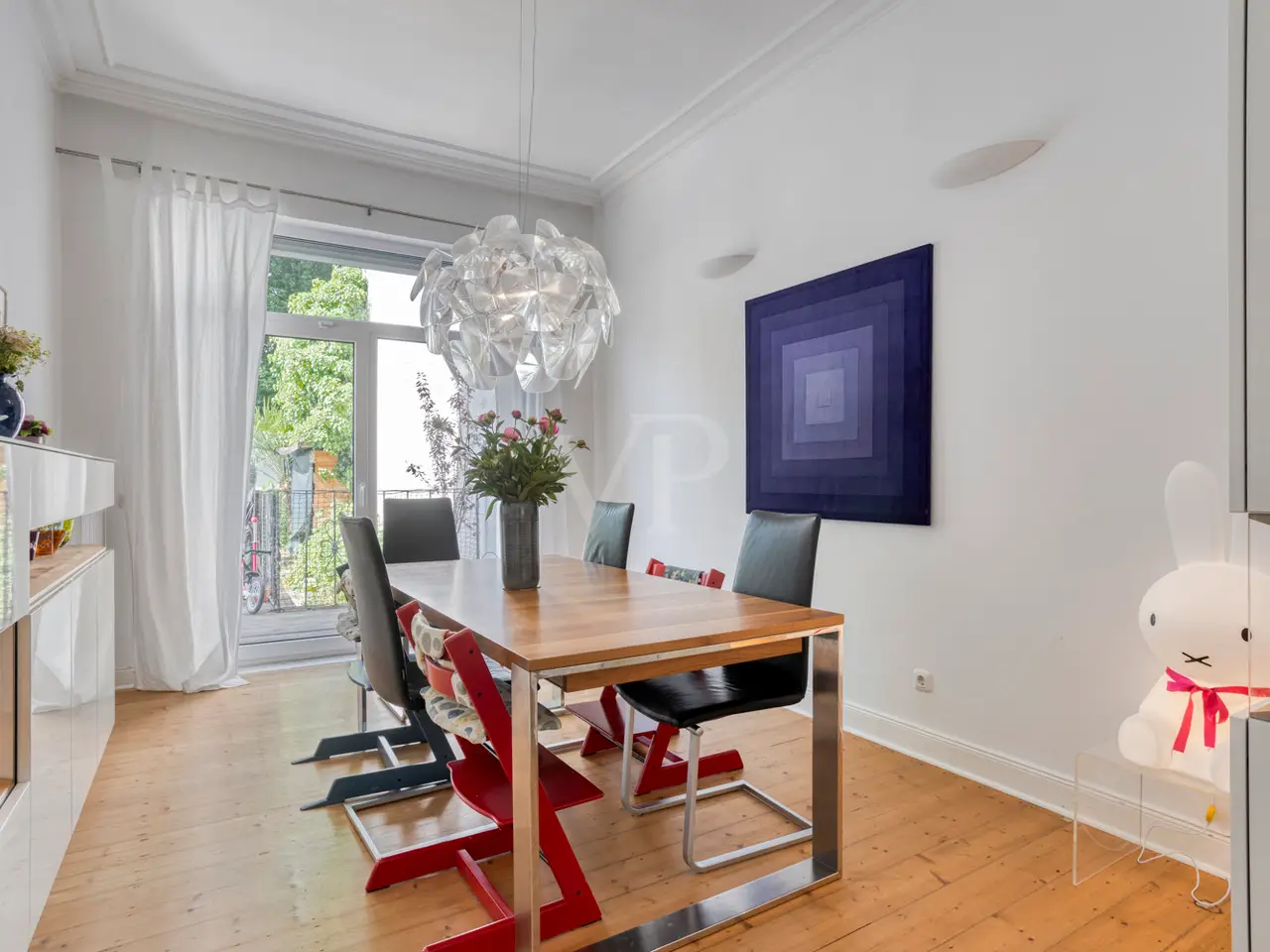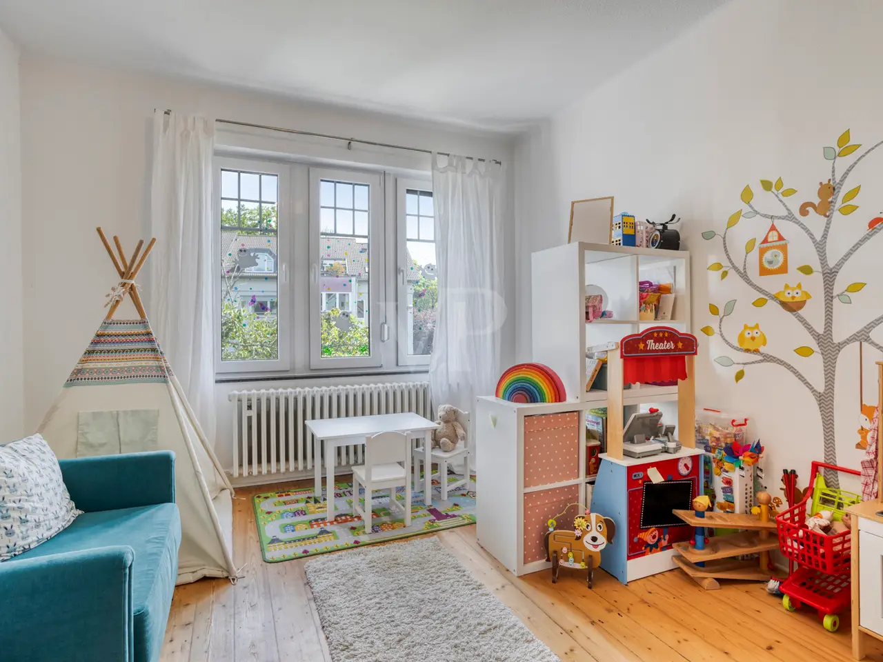 This charming detached house from the Wilhelminian era, built on one side, offers generous living space for the whole family with approx. 166 m² of living space and a total of six rooms on three levels. The 340 m² plot includes a quiet south-west-facing garden with a high level of privacy - a place you will love to return to. The sunny terrace on the garden side with a brick-built outdoor fireplace invites you to spend convivial hours with family and friends. The entrance area impresses with stylish, contemporary tiles, which were laid as part of an earlier modernization and blend harmoniously into the overall appearance of the house. The central hallway provides access to all living spaces on the first floor as well as - via the well-preserved wooden staircase - to the upper floors and the basement. The open-plan living and dining area impresses with its spaciousness and is cozily complemented by a stylish fireplace. If required, the room can be flexibly divided into two areas. The adjoining kitchen is equipped with a functional fitted kitchen, which is already included in the purchase price. A daylight guest WC is a useful addition to this level. Three well-designed rooms await you on the upper floor, including one with access to the street-facing balcony, from which you can enjoy a view of the Siebengebirge. The tastefully furnished daylight bathroom has a bathtub, a walk-in shower and a double washbasin - well thought-out and of high quality. The converted attic offers a further bedroom and a separate walk-through room, which is ideal as a work, guest or play area. An additional daylight bathroom with shower tray makes this floor a self-sufficient area for guests or teenagers. Elements typical of old buildings such as original wooden floorboards, stucco decorations and high ceilings give the house its special character. The wooden floors have been refurbished and freshly sanded in some areas of the house. Numerous windows flood all rooms with natural light and create a bright, friendly atmosphere to feel at home in. In the basement you will find a practical laundry room, two storage rooms and the boiler room. Particularly practical: the external basement staircase provides direct access from the laundry room to the garden - ideal for everyday use. The house is also in excellent technical condition: new, triple-glazed plastic windows with matching blinds, a modern front door and efficient gas central heating ensure contemporary comfort and good energy efficiency. Be inspired by the special charm of this property - your dream home can become reality here. Please contact us for further information or to arrange a viewing. Good to know: - The purchase of this property is commission-free for the buyer - there is no estate agent's commission. - An energy certificate is being processed and is available for viewing. - The property is ready for occupation from July.