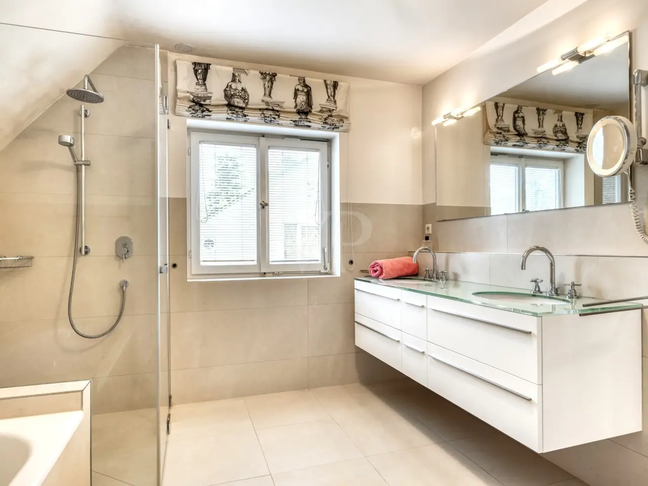 A refuge with character, substance and perspective - in the heart of one of Bad Godesberg's most charming districts. This stylish property impresses with a generous living space of approx. 226 m² and is located on a well-kept plot of approx. 1050 m² in one of the most sought-after locations in Bad Godesberg - the renowned Rüngsdorf Rhine quarter. Built in 1970/72 as a solid construction, its sophisticated architecture provides the ideal basis for living at an exclusive residential level. The property has a total of nine generously proportioned rooms - including 6 bright bedrooms, two modern bathrooms and an open-plan living area with a cozy corner fireplace. Generous windows bring light and airiness into the rooms and emphasize the friendly atmosphere. The large fitted kitchen in a charming country house style blends seamlessly into the room concept and is both visually and functionally impressive. Numerous custom-made built-in units offer well thought-out storage solutions without dominating the living space. A special bonus is the separate granny apartment with a further 2 rooms and its own entrance. It is ideal as a retreat for guests or for individual use. The well-kept outdoor area offers a green oasis of tranquillity: a mature tree population and a garden fountain characterize the natural and peaceful ambience in the immediate vicinity of the Rhine. Several sunny terraces and balconies create additional outdoor retreats. A spacious double garage and an outdoor parking space round off the practical benefits of the house. The basement offers further potential uses, for example as a hobby room, fitness area or private wellness area. An integrated alarm system ensures maximum security. All in all, this property presents itself as a rare opportunity. Don't miss out on this opportunity and arrange a viewing today to see the many possibilities of this special home for yourself! An energy certificate is currently being prepared and will be presented at the viewing.
