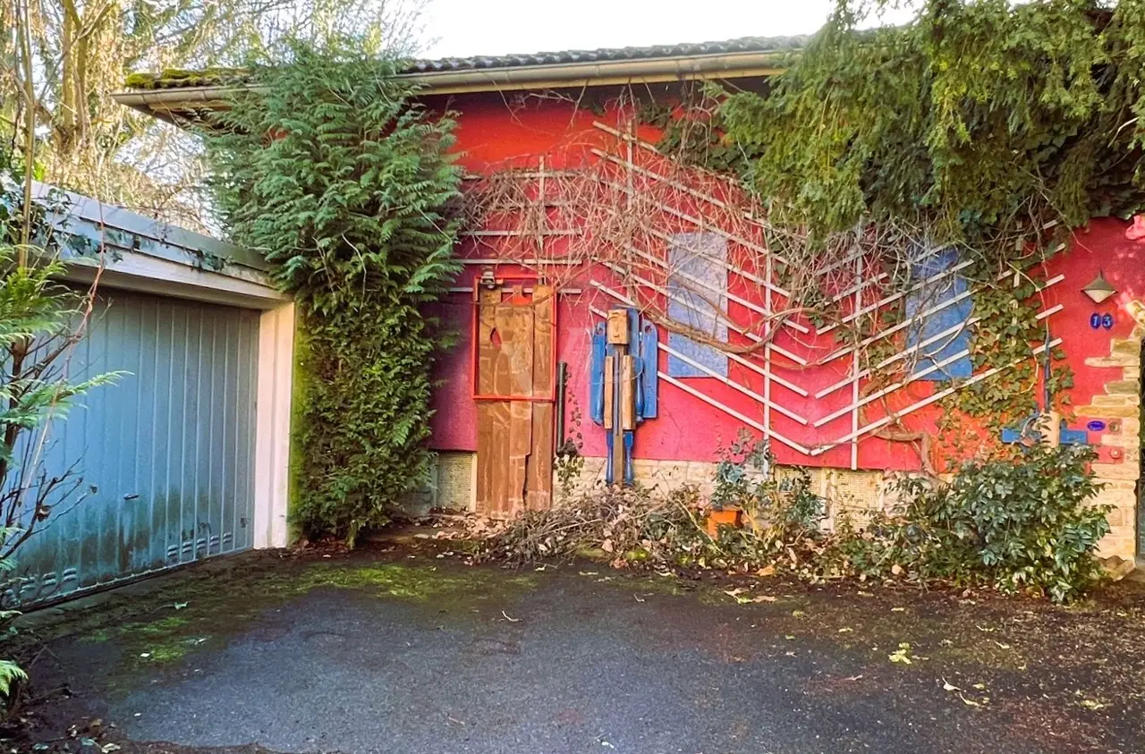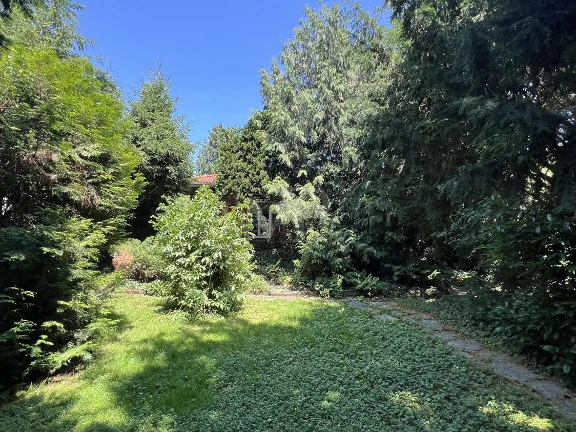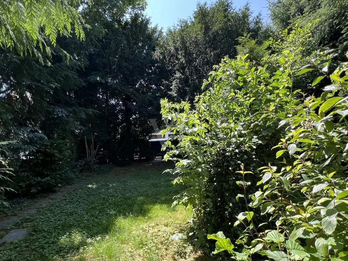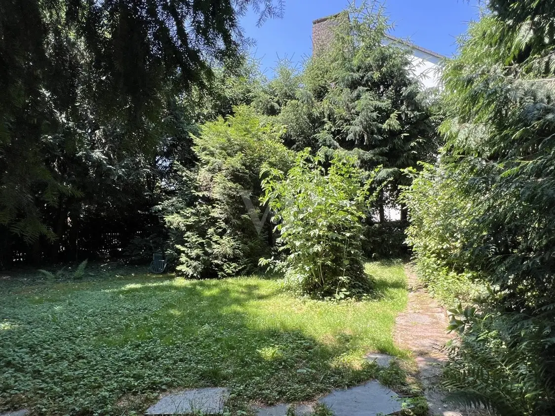 Close to the town center, schools and the beautiful castle park as well as the small pine forest, this artistically designed property lies dormant, waiting for creative couples or families to turn it into their home! The layout of the house is well thought out and still contemporary today. The entrance area is followed by a spacious open-plan dining area. The kitchen is directly opposite. The living room is approx. 35 m² in size and offers a great view of the covered outdoor terrace and the dreamy garden with its wildly romantic spots. At the side of the house there is the possibility to keep chickens or small animals. A hallway leads to the private rooms. There are two bedrooms here, a larger one for the parents with an integrated dressing room and a beautiful children's bedroom or alternatively a study. A separate WC and a bathroom with natural light are located next to the bedrooms. The house has a full basement, and a large room for a variety of uses has been planned in the basement in addition to the utility rooms for washing and drying and heating. This can be used as an office, workroom or for hobbies. A garage in front of the house and a parking space next to it complete this exciting offer. This charming property will become a unique gem with character thanks to a comprehensive renovation, during which you can realize your ideas. However, a new development of the beautiful property is also worth considering in this sought-after inner city location. The structural utilization is attractive. Development plan 65 B specifies the following parameters: Pure residential area, two full storeys, GRZ 0.3, GFZ 0.6, open construction method. If we have aroused your curiosity, we would like to invite you to get to know this detached house with a wildly romantic, enchanted garden in a central but very quiet, family-friendly inner-city location.