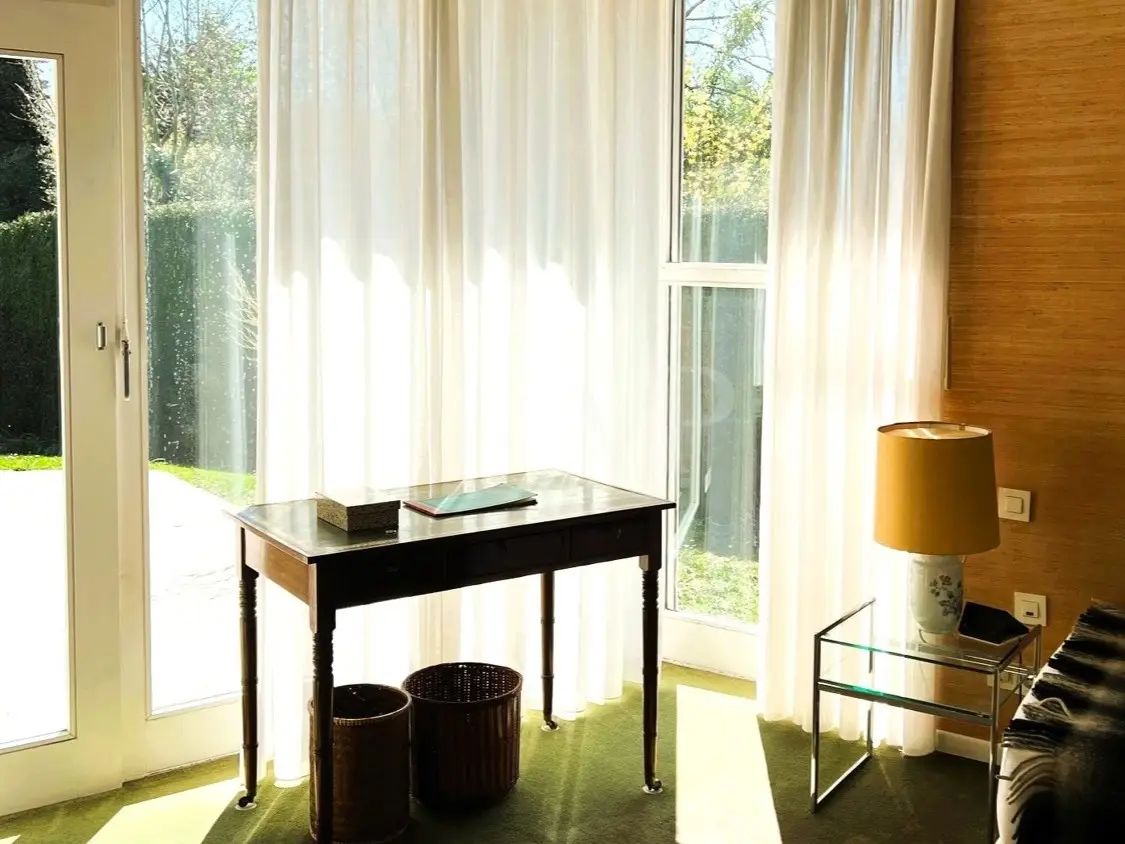 Welcome to your new home! In one of the most sought-after locations in Bad Homburg, the picturesque Ellerhöhe, a unique architect's villa awaits you, which impresses with its sophisticated functionality and stylish design (similar to Bauhaus). The generously proportioned plot is located within walking distance of one of the city's most beautiful recreational areas, surrounded by extensive meadows and idyllic horse pastures. The city center, train station and spa gardens are just a few minutes' walk away, while schools and grammar schools are just a short bike ride away. Here you can enjoy the perfect combination of urban life and natural recreation! As you enter the house, you are greeted by a bright, inviting entrance area designed with elegant, light-colored natural stone. Practical, ceiling-high built-in units for your wardrobe ensure order and style. The hallway leads you into a functional kitchen, while the fantastic living and dining area forms the heart of the house. With ceilings opening up to the ridge, floor-to-ceiling windows offering views of the terrace and garden on all sides and a cozy fireplace area, a unique ambience is created. The living and dining areas flow seamlessly into one another and offer a wonderful view of the park-like garden - a little paradise for families. The spacious terrace invites you to enjoy the sun. The balcony in front of the bedrooms is like a box seat above the garden and forms a relaxing retreat. An outdoor seating area under a fruit tree in the lawn offers both sun and light shade! In the basement you will find a spacious, homely guest room and a bathroom, ideal for overnight guests. The house has a full basement and offers plenty of space for domestic uses, technology and heating (electric heating, underfloor heating), as a workshop, wine cellar or storage space - a particularly large room with natural light is ideal as a playroom, hobby room or fitness room. The property is in a very well-kept condition. Contemporary design options (built in 1971) would be ideal for restoring the villa to its former glory. You can bring in your own personal taste and realize your own ideas. Alternatively, a new development could also be considered. The legally valid development plan 102 1V indicates the following utilization: purely residential area, open construction with a maximum of two residential units, one full storey and roof, the floor area ratio is 0.2. This special real estate offer is aimed at families and couples who have a penchant for unusual design and appreciate functionality. Take advantage of this rare opportunity to be inspired by this magnificent villa on Ellerhöhe and discover your new home!