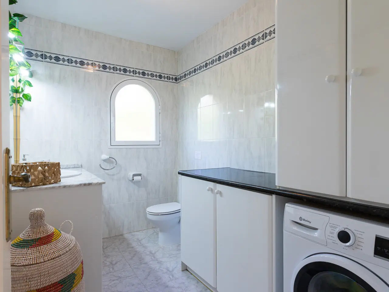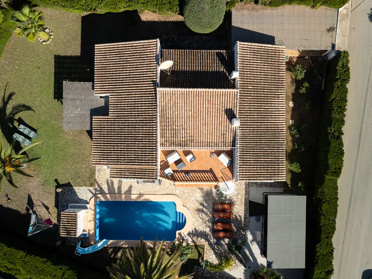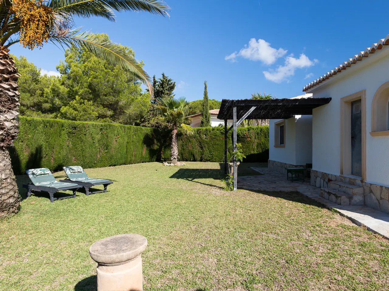 This charming villa, located in the prestigious Balcón al Mar area of Jávea, Alicante, presents itself as a unique opportunity. With a constructed area of 177.53 m² on a 1,206 m² plot, the property stands out for its location, flat and private plot, offering tranquility and partial sea views from the sun terrace. The house is distributed over one floor and has four double bedrooms, one with an en suite bathroom, and a total of two full bathrooms plus a guest toilet. The main living room features a fireplace, creating a cozy atmosphere, with access to the naya, which serves as a second living-dining room. The house is equipped with central heating and individual air conditioning in several rooms, ensuring year-round comfort. The fully equipped kitchen was renovated in 2018, and the house also has a laundry area. Outside, the villa offers a well-kept private garden with an automatic irrigation system and an 8 x 4 m heated pool, ideal for enjoying any season. The sun terrace allows you to take full advantage of the Mediterranean climate and the views. Parking is provided by a carport and a closed garage, providing protection for vehicles. The property is in good condition and features additional features such as a gazebo in the garden, a lawn ideal for enjoying outdoor living, a septic tank system, and easy access to nearby amenities such as restaurants and small supermarkets for basic shopping. This villa represents an excellent option both as a permanent residence or for enjoying holiday stays in one of the most exclusive areas of the Costa Blanca.